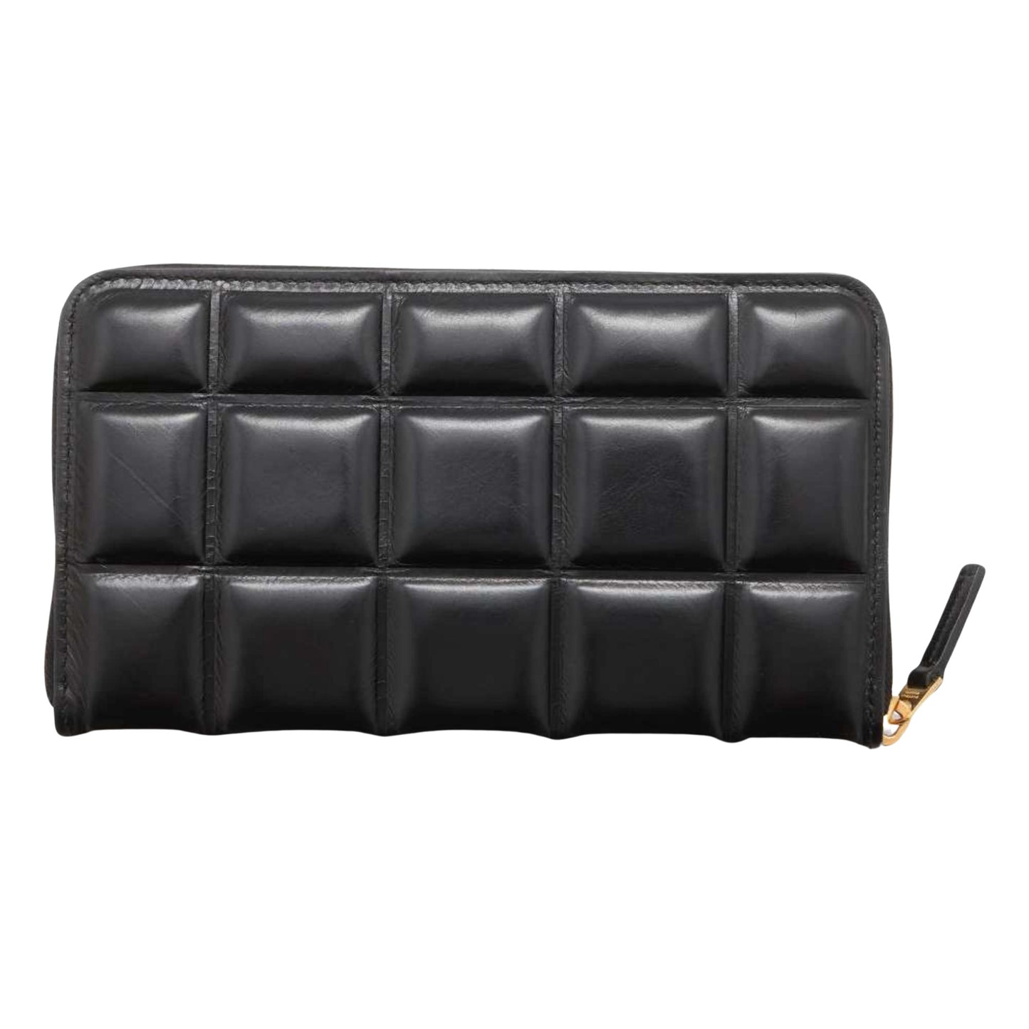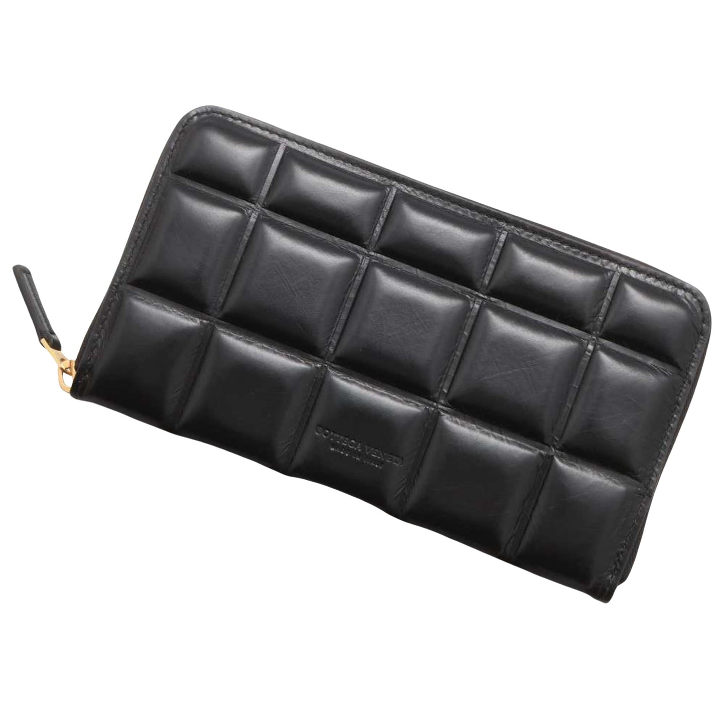 This Bottega Veneta long wallet is a refined accessory for women, crafted from black leather. Designed as a bi-fold wallet, it offers a blend of practicality and sophistication.