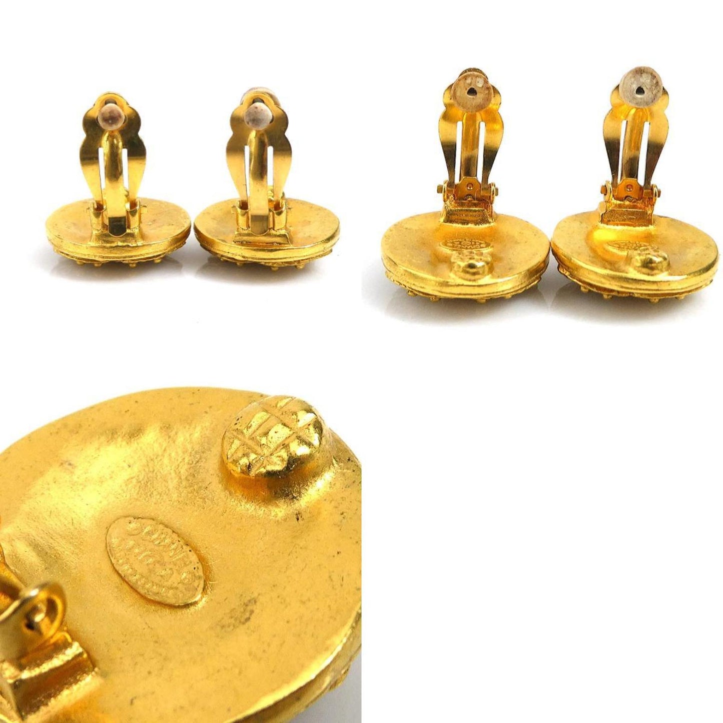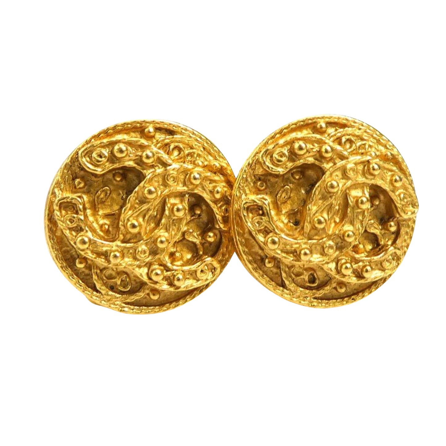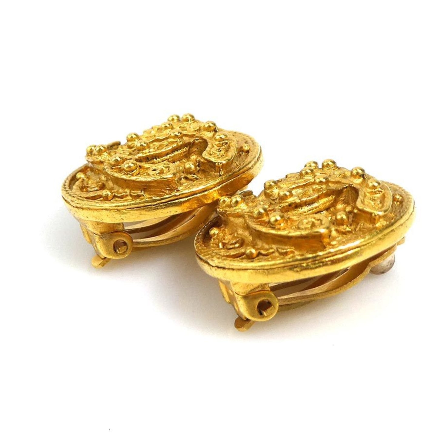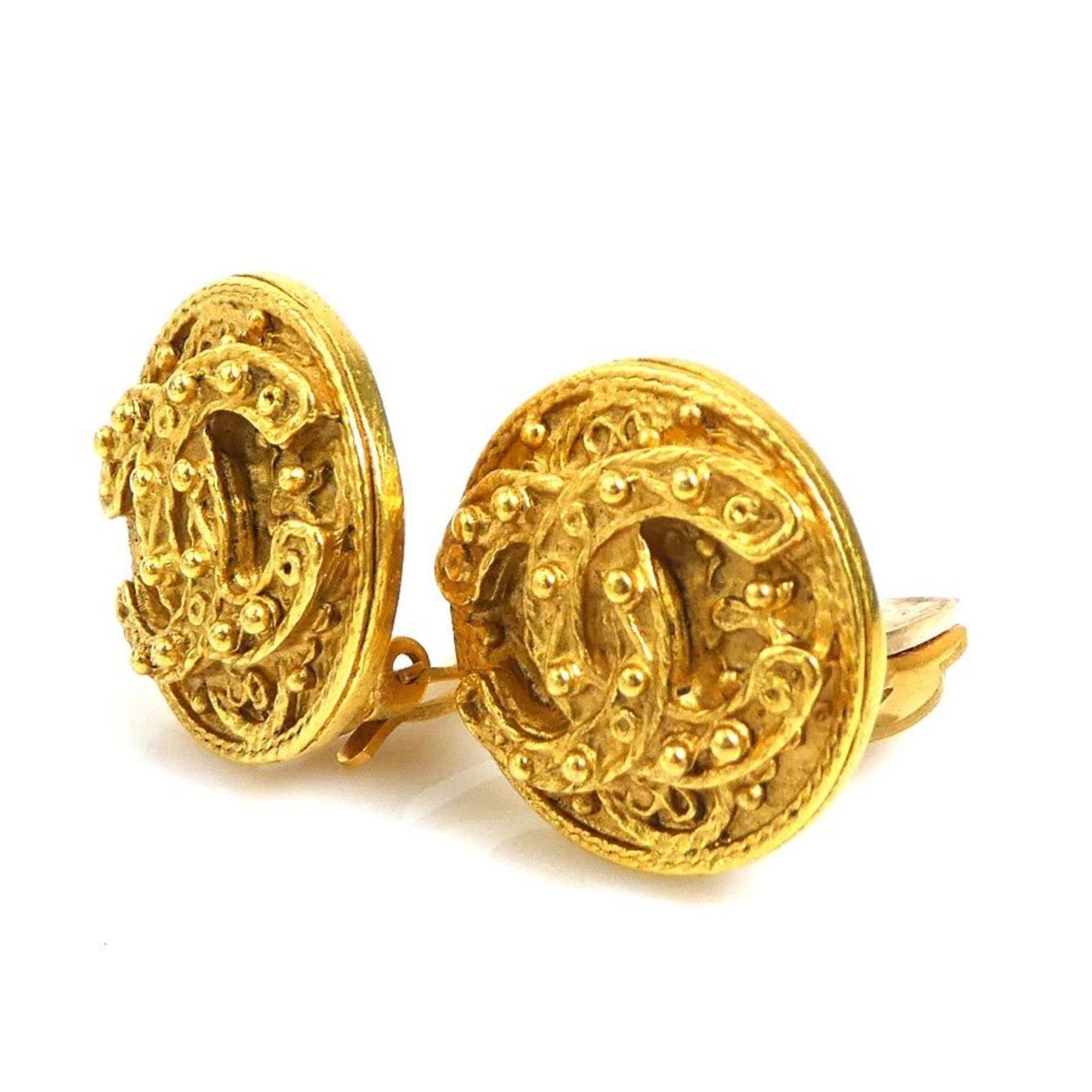 Chanel's gold CC clip-on earrings represent an iconic piece from the French luxury brand. These earrings feature Chanel's famous double C logo, symbolizing the refinement and iconic style of the fashion house.