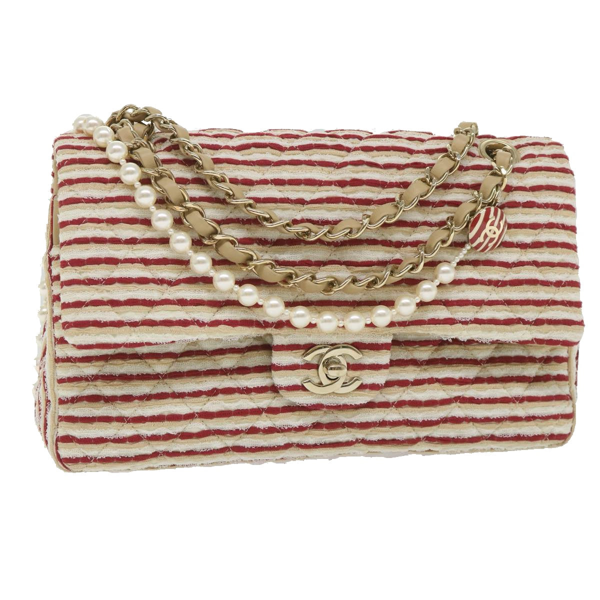 Introducing the CHANEL Classic Red/Beige Canvas Shoulder Bag, a timeless and iconic accessory that effortlessly marries sophistication with practicality. Crafted from high-quality canvas in a striking Red/Beige color combination, this shoulder bag showcases the renowned CHANEL Classic design.