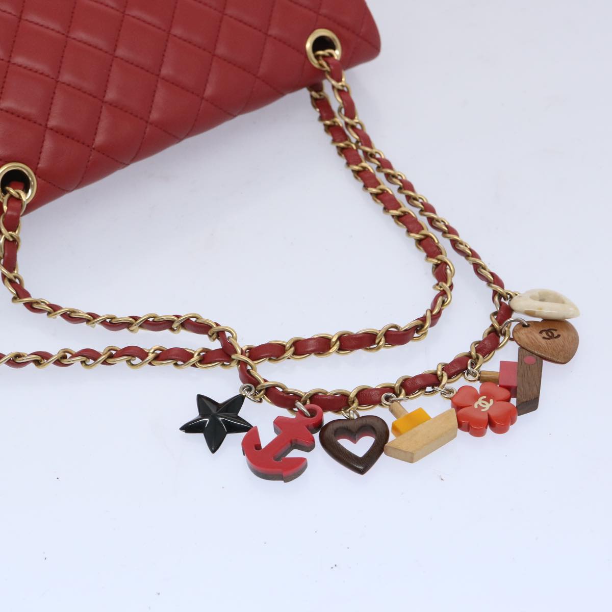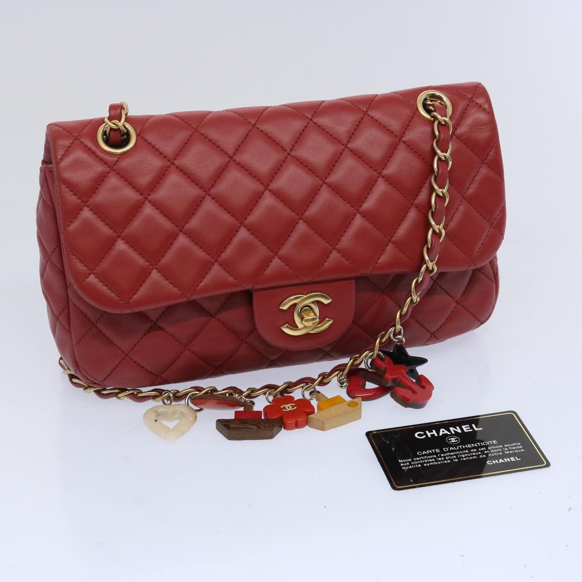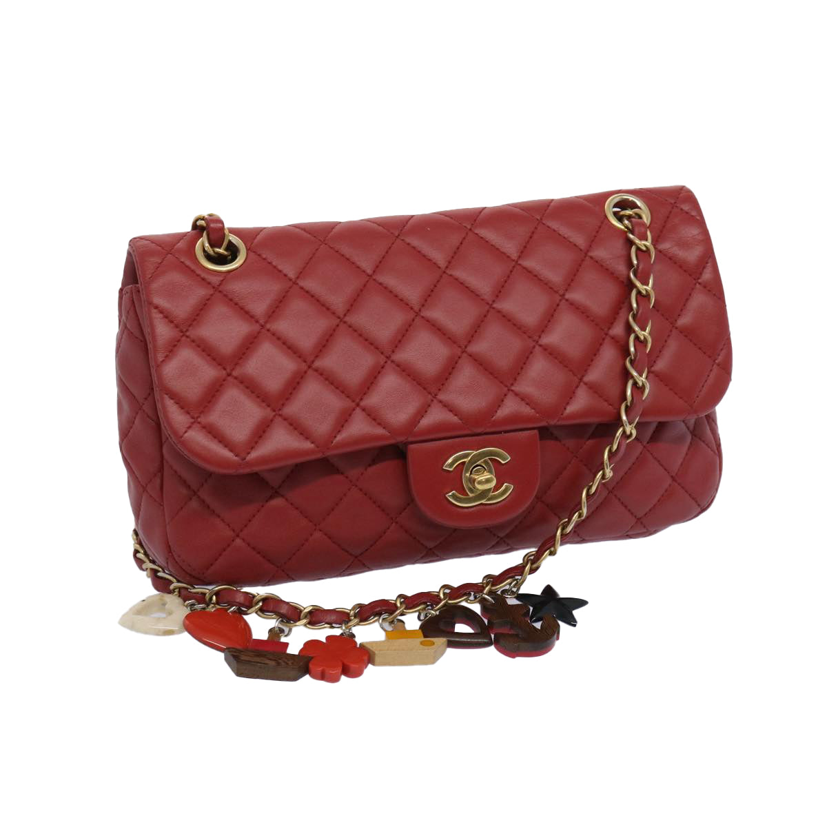 Introducing the Chanel "Matelassé" shoulder bag, featuring a bold red hue and meticulously crafted from luxurious leather, epitomizing the brand's timeless elegance.