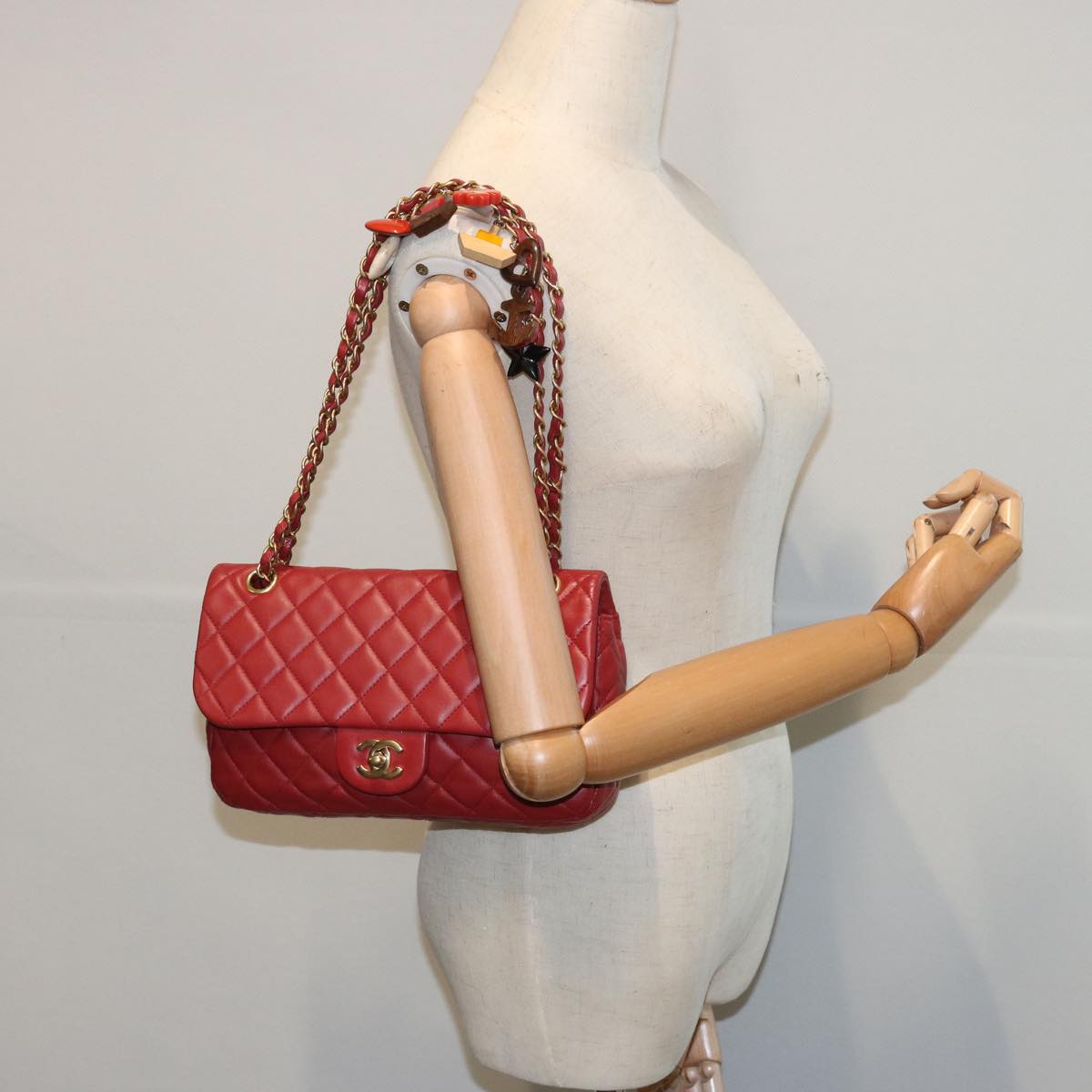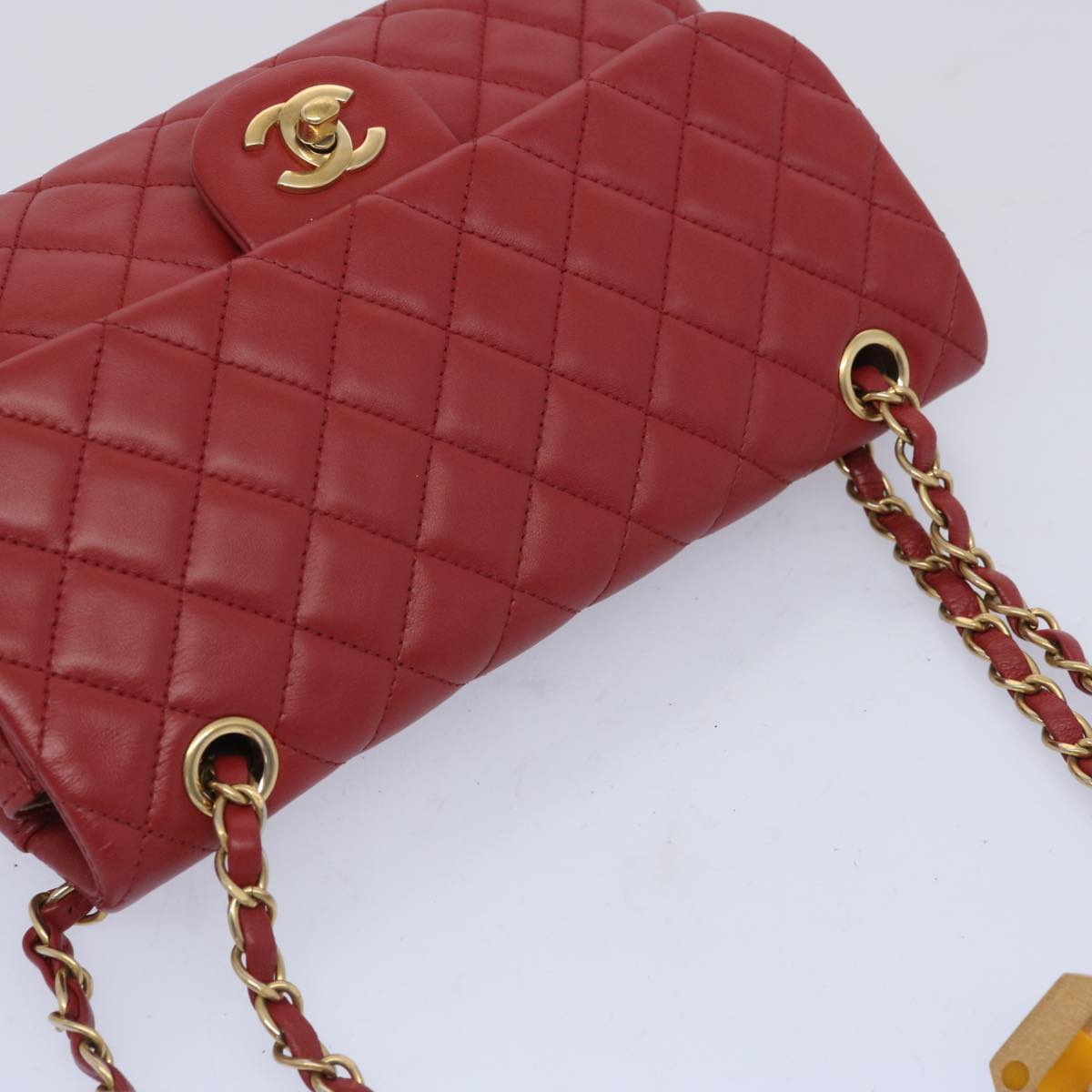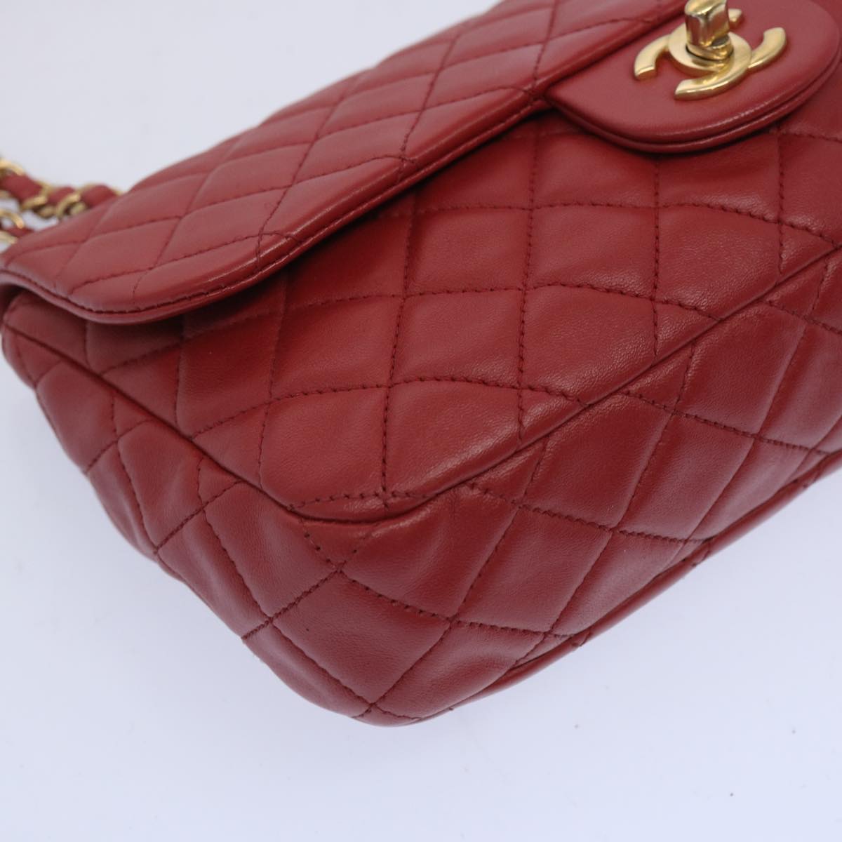Introducing the Chanel "Matelassé" shoulder bag, featuring a bold red hue and meticulously crafted from luxurious leather, epitomizing the brand's timeless elegance.