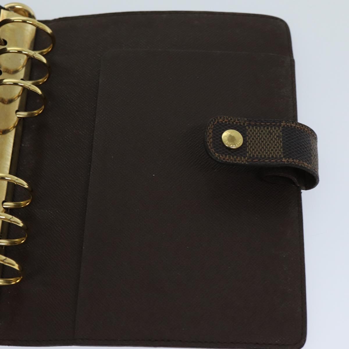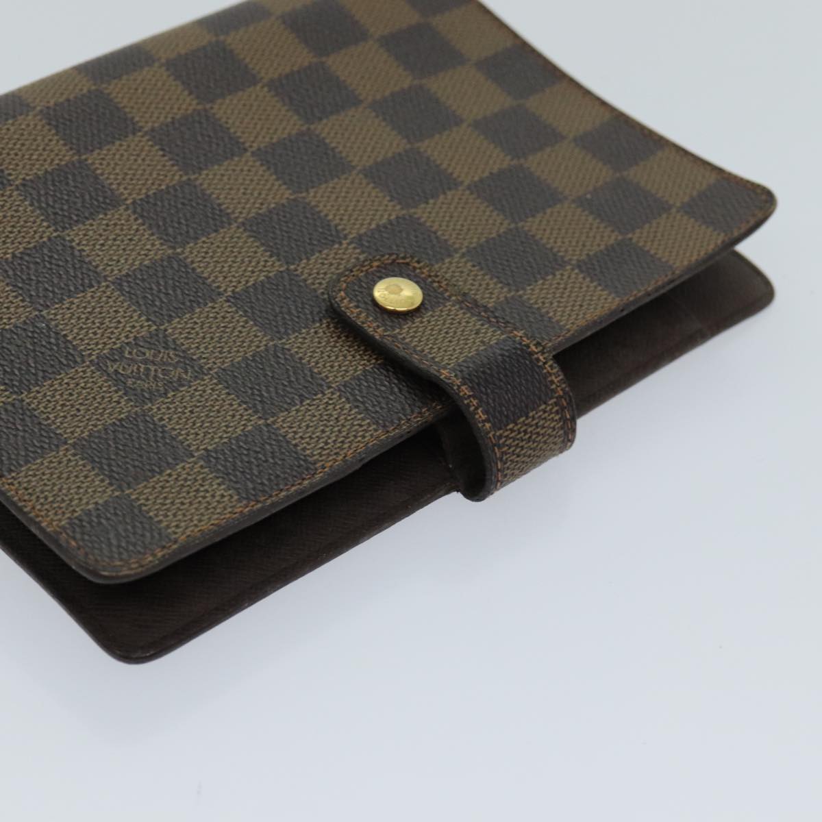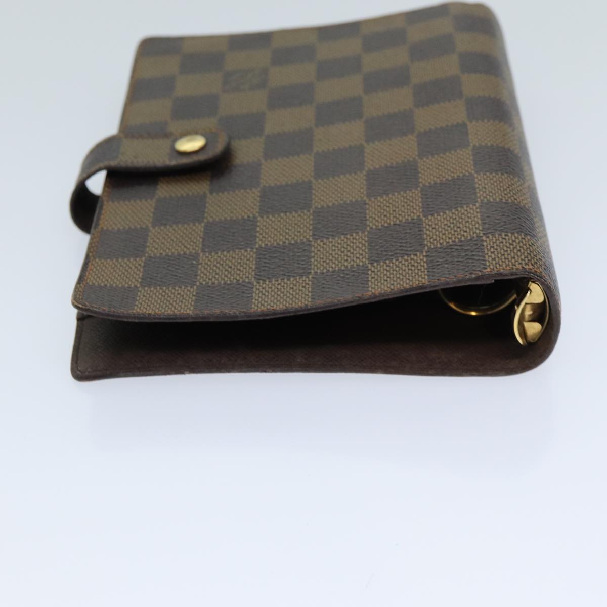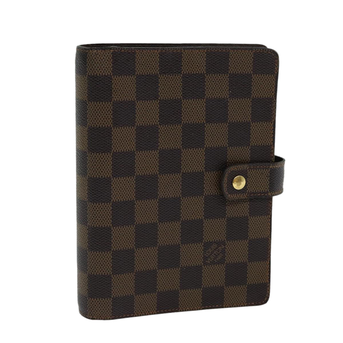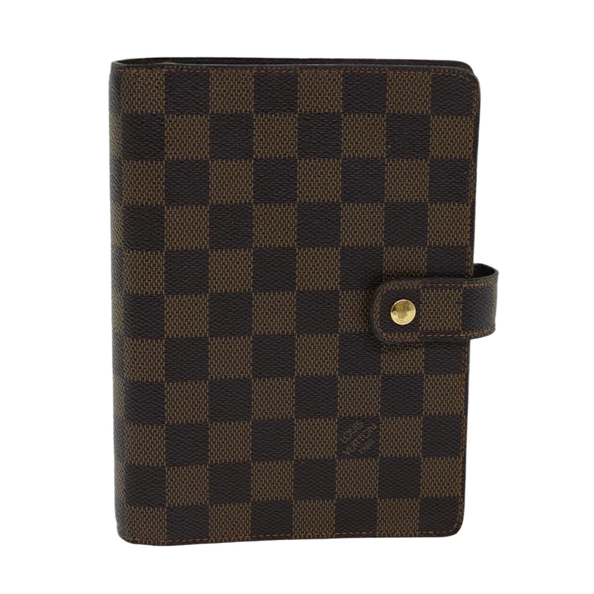 Introducing the Louis Vuitton "Agenda Cover MM," a quintessential day planner cover crafted with precision in France. This elegant piece, fashioned in the signature Damier Ebene Canvas, exudes timeless sophistication and practical luxury.