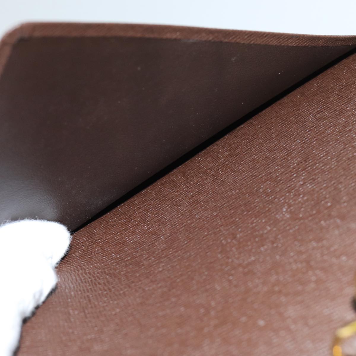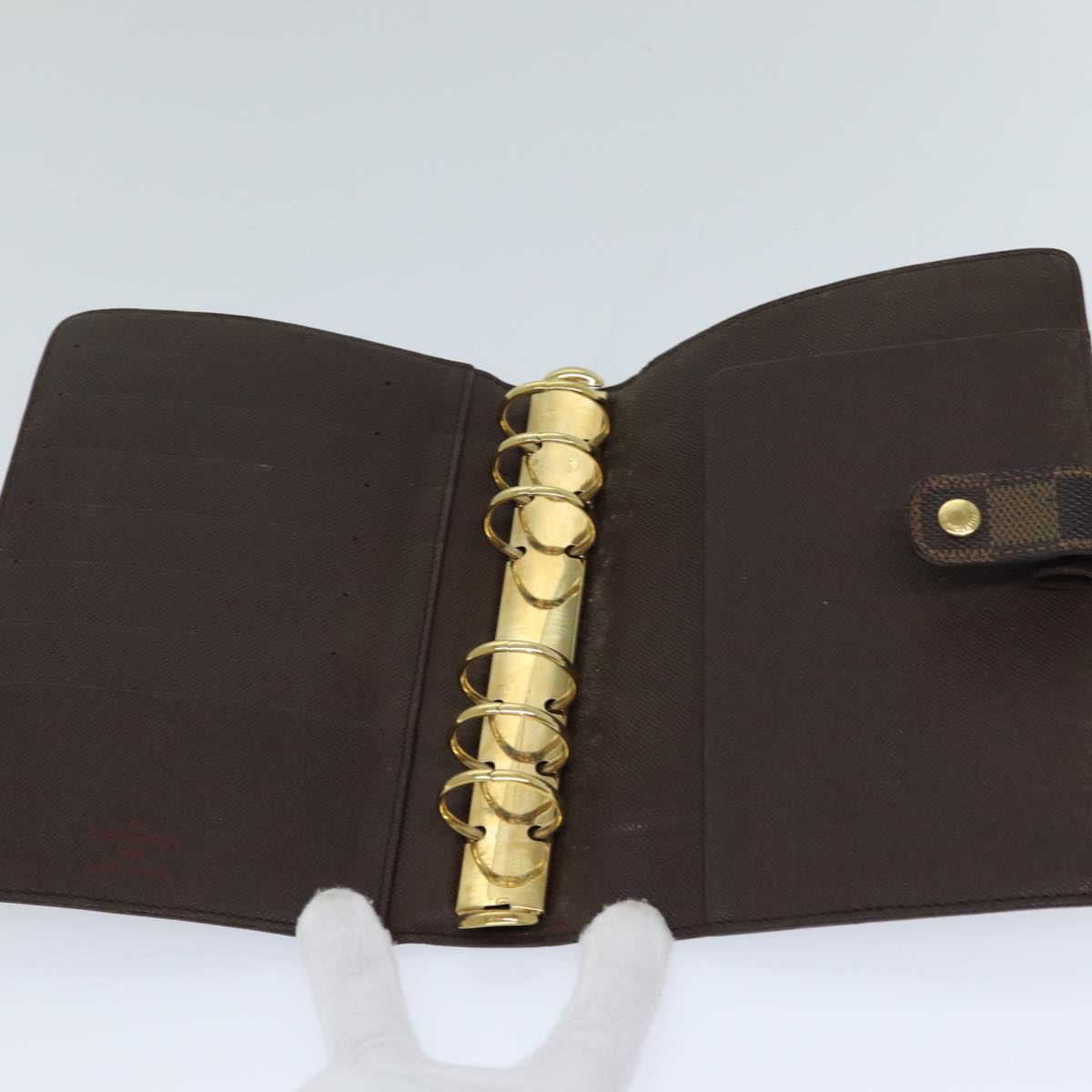 The exterior of the "Agenda Cover MM" showcases gentle signs of wear, including surface rubbing and a slight loss of shape, which contribute to its unique character. The metal fittings feature minor scratches, adding a touch of vintage charm. Inside, the cover reveals signs of rubbing and traces from the metal fittings, indicative of its practical use. The pocket also displays some rubbing, while the corners show gentle wear. Additionally, there is a faint storage odor, reflecting its genuine history. Notably, the button clasp is slightly loose, which adds to its authentic, well-loved character.