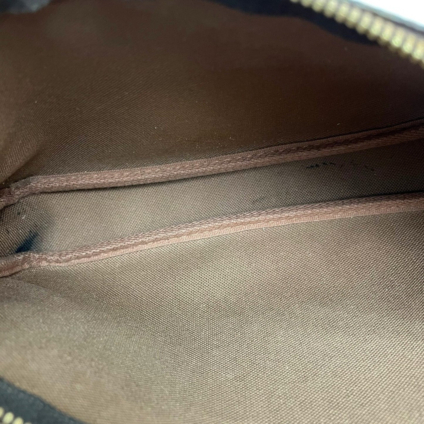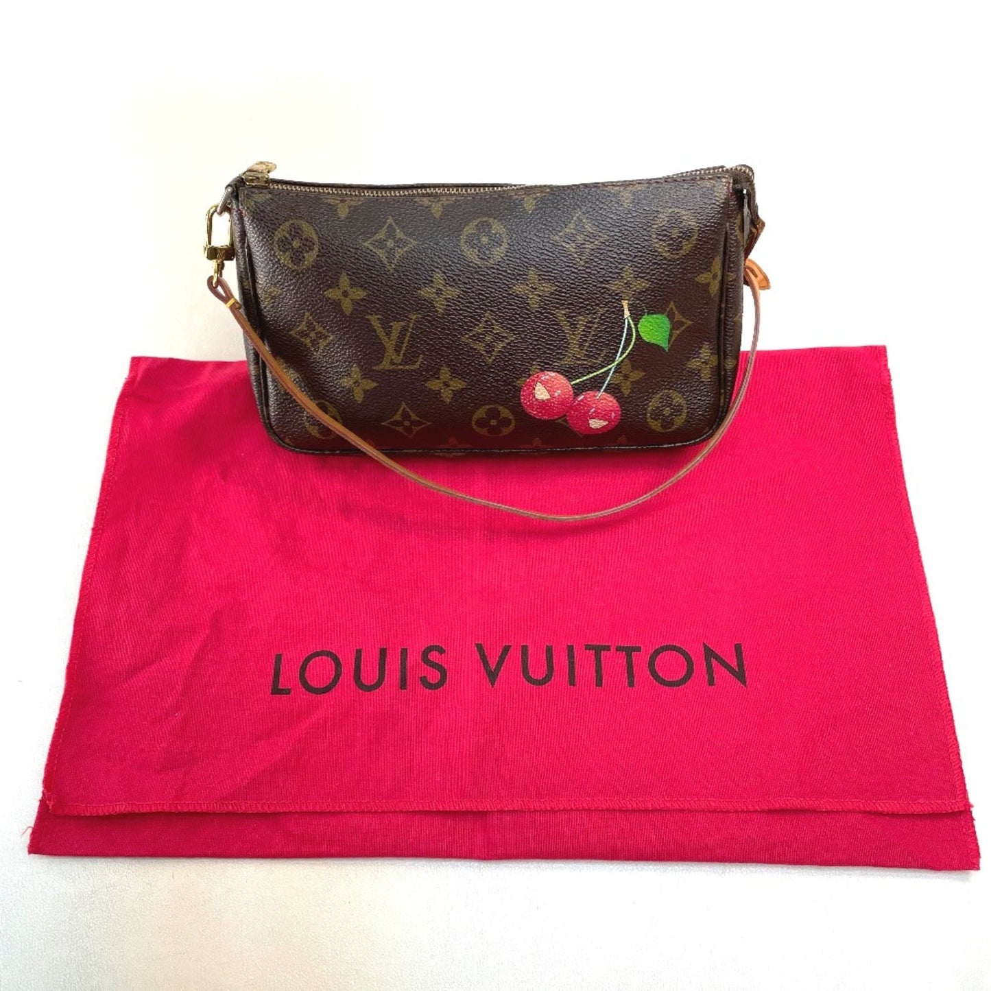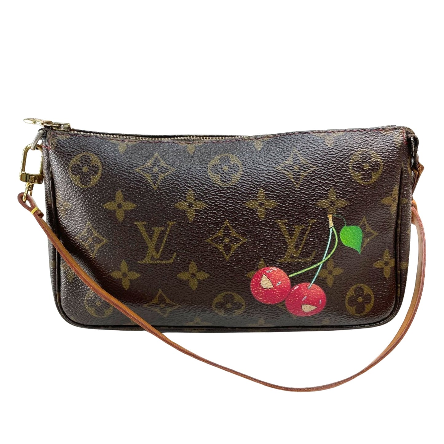 The Louis Vuitton Cherry Pochette Accessoires pouch, made from brown canvas, is in fair condition with traces of usage.