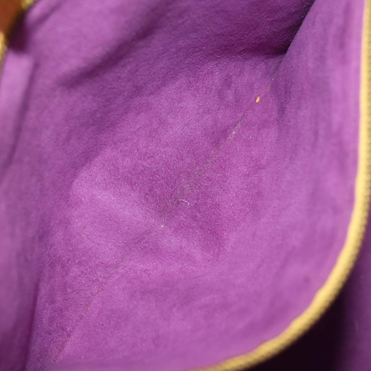 The exterior shows surface friction and is slightly out of shape, with corners that also show friction. The shoulder strap has a slight friction and partial crack, while the metal fittings have minor scratches. Inside, there is a slight friction and stain, as well as similar problems in the pocket and a noticeable storage smell.