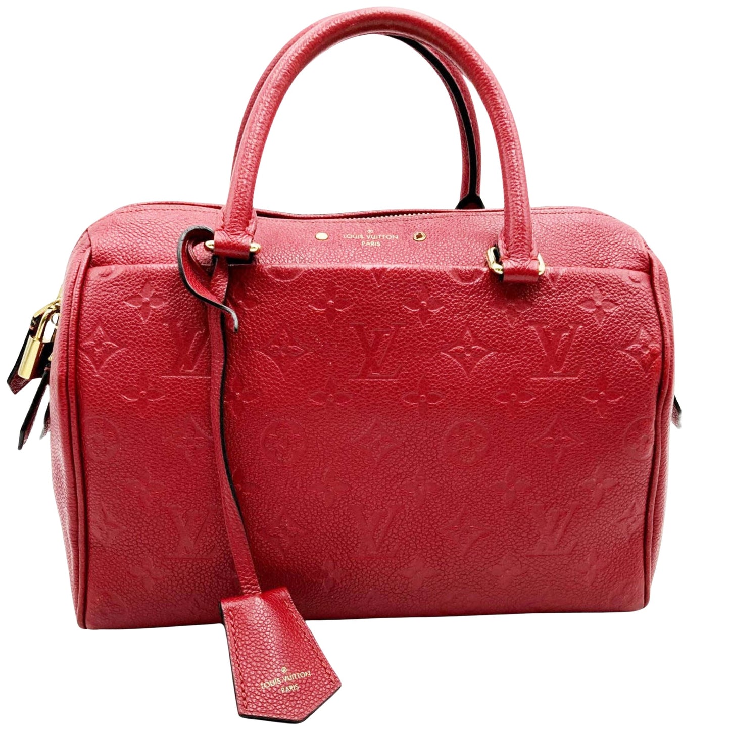 Compact, this Speedy Bandoulière 25 bag features Monogram Empreinte grained leather and embossed with a Monogram Giant pattern. Its singular silhouette, its rolled leather handles and its golden padlock are all characteristic elements that make this model a timeless of the House.