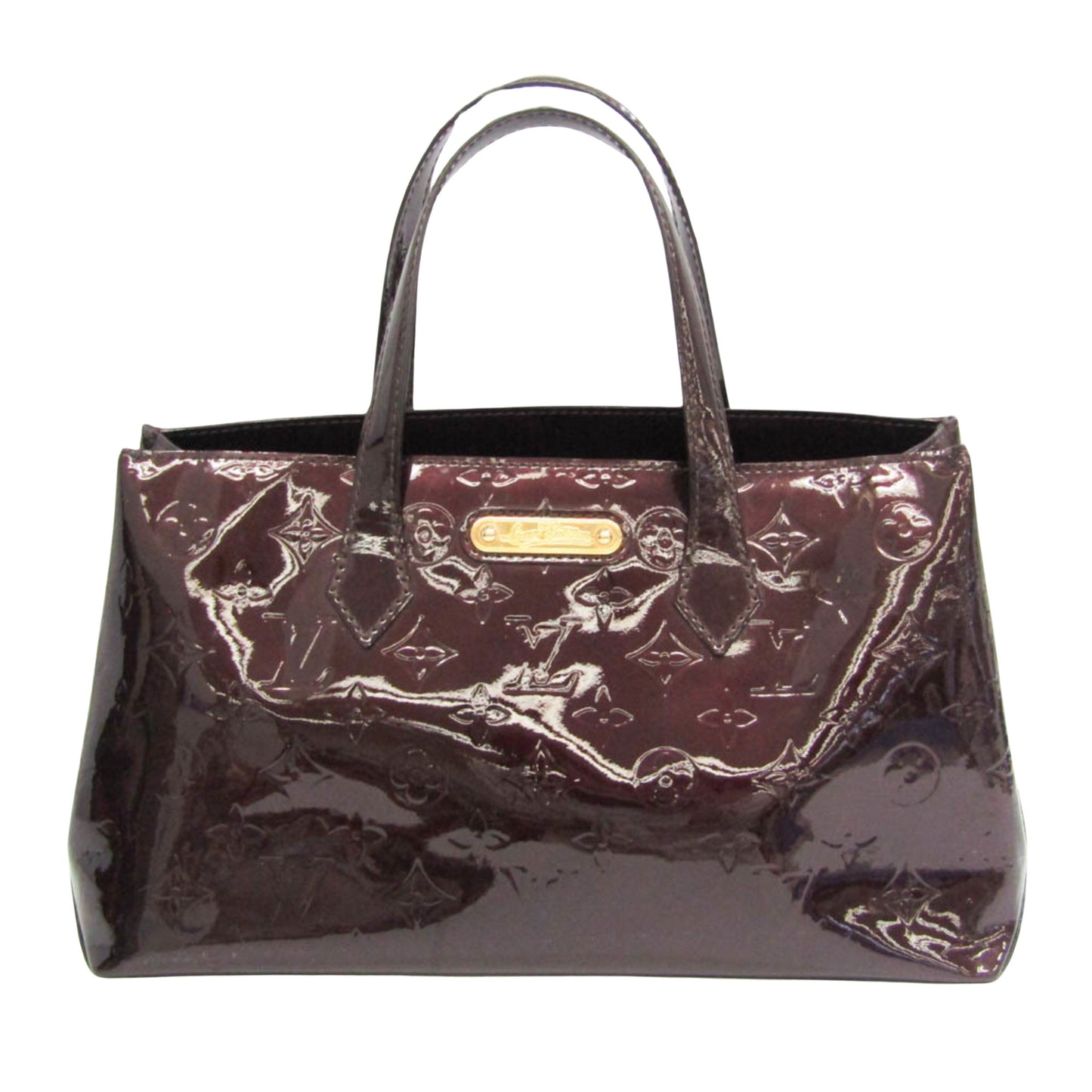 The Louis Vuitton Wilshire PM handbag, part of the Monogram Vernis line in the exquisite Amarante color, is designed for women, exuding sophistication and style.