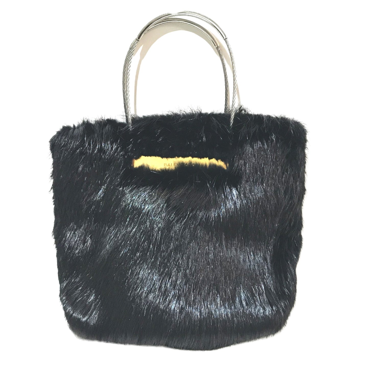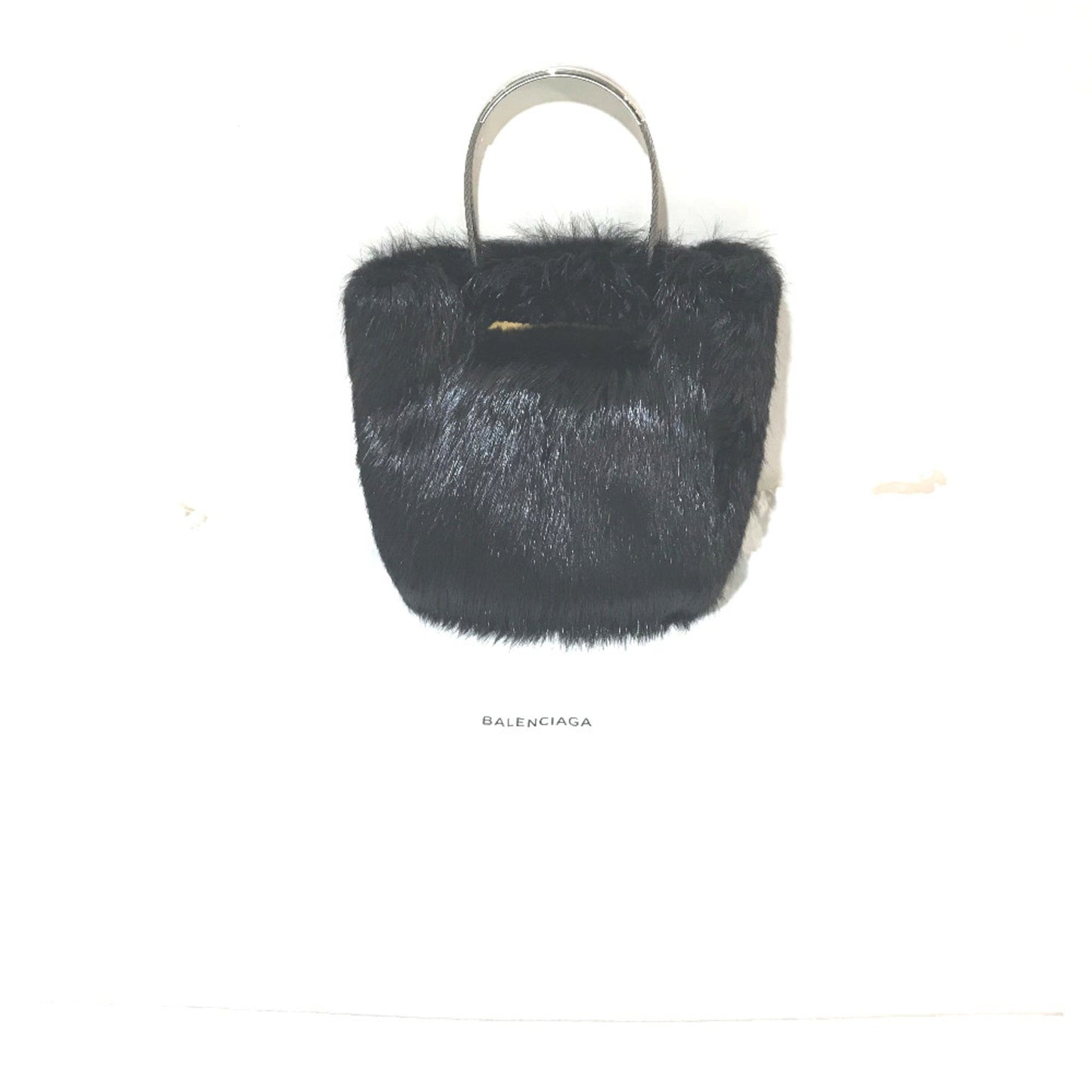 The Balenciaga handbag is a luxurious choice crafted from soft black fur.