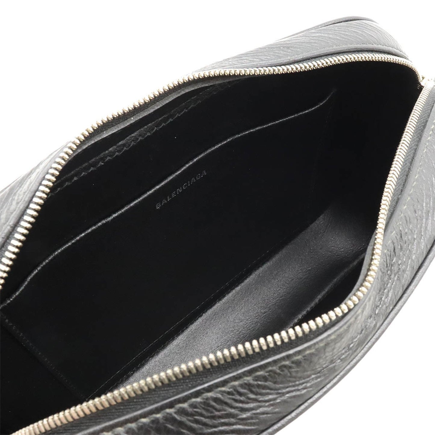 This Balenciaga camera bag, crafted from luxurious black leather, is a stylish and practical accessory for women. Its versatile design allows it to be used as both a clutch and a shoulder bag, adding a touch of sophistication to any look.