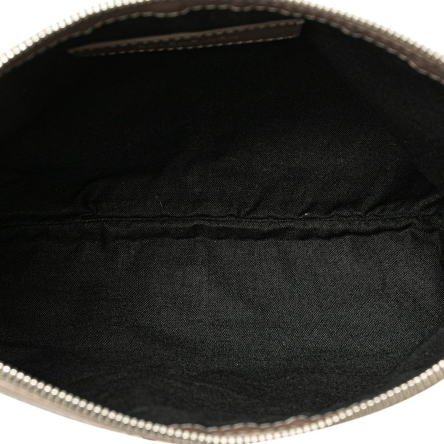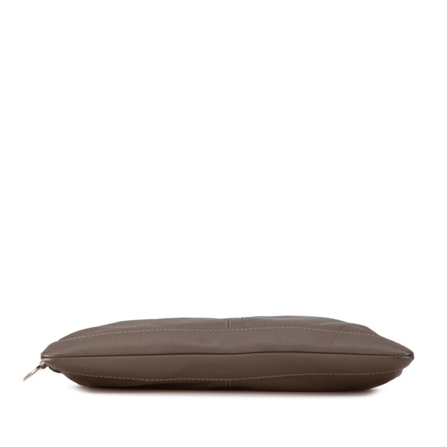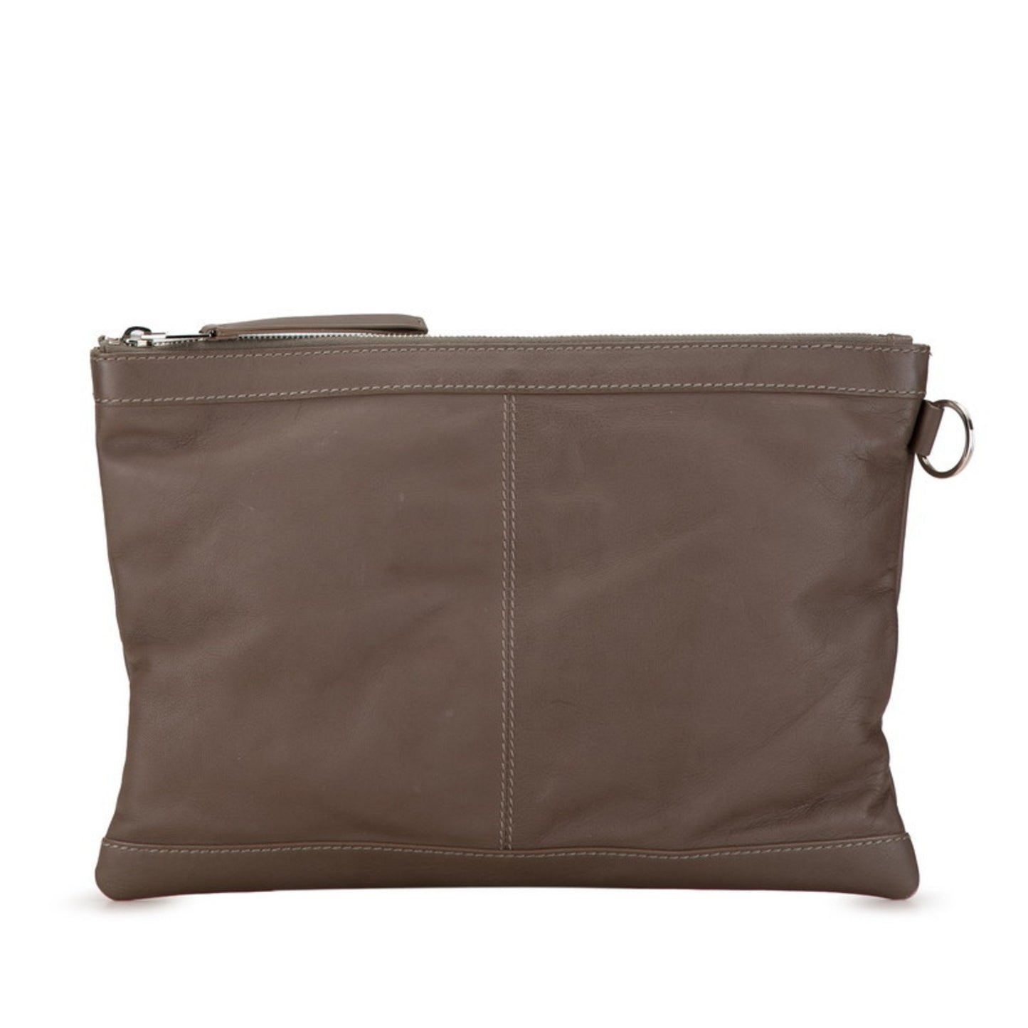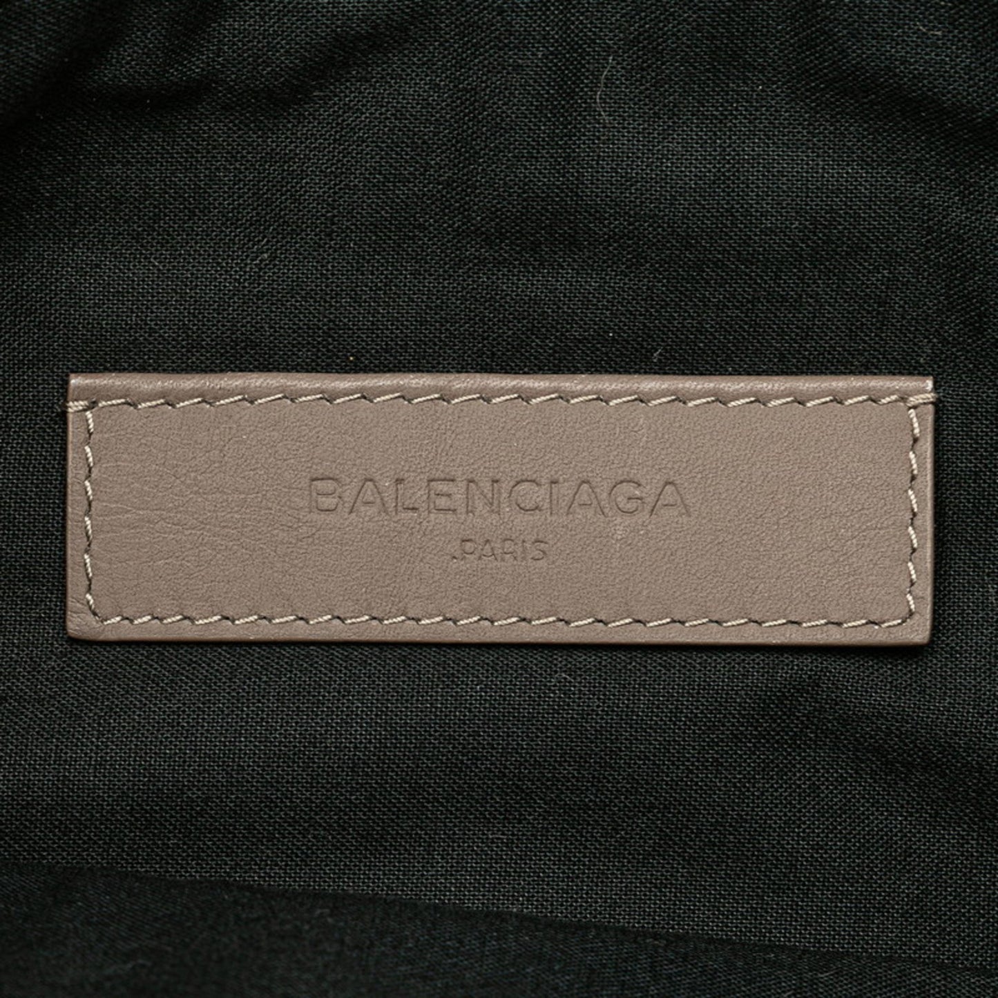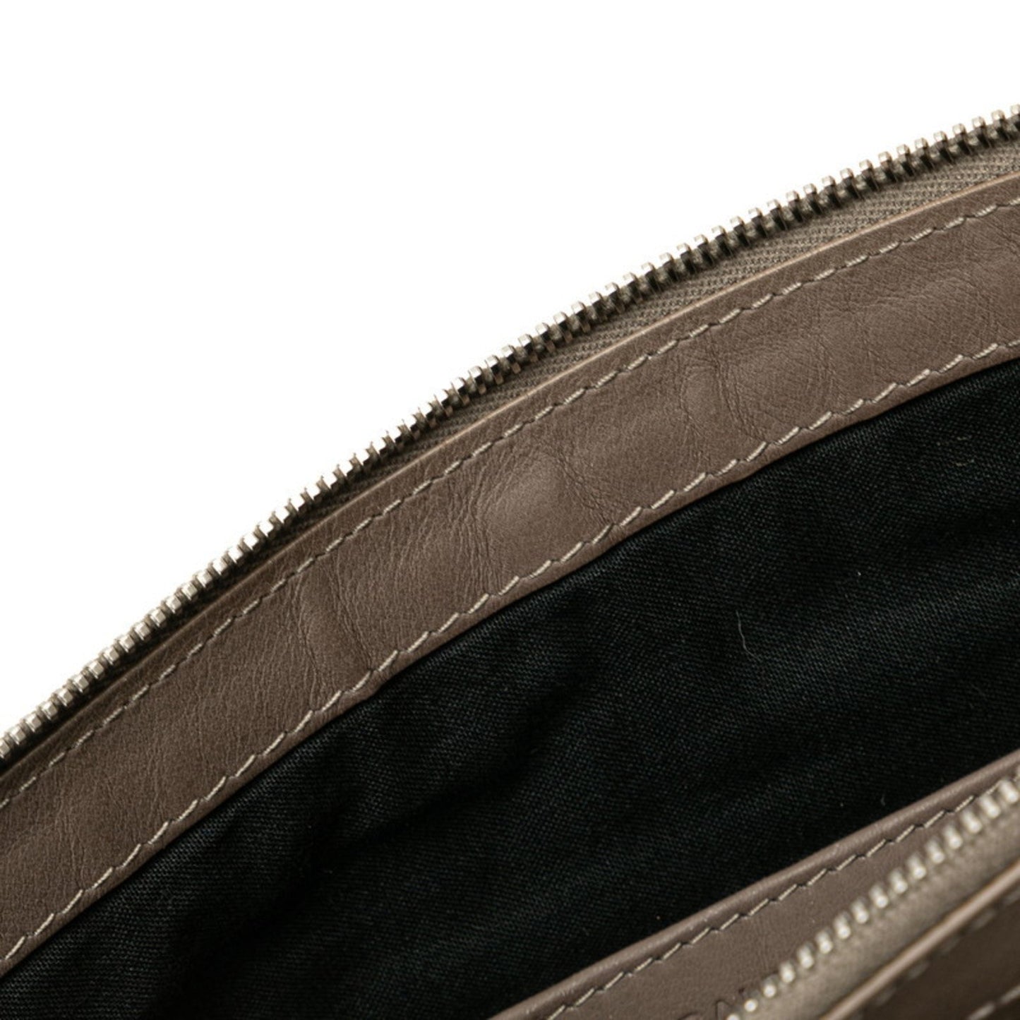 This Balenciaga Classic Pouch clutch bag, designed for women, is crafted from gray leather. It offers a sleek and sophisticated look, ideal for various occasions.