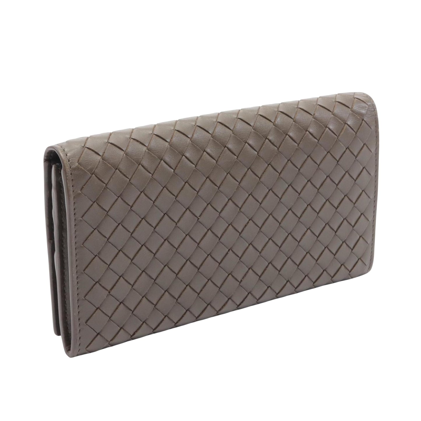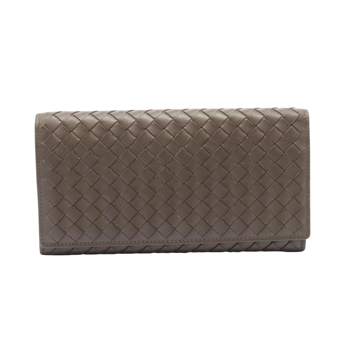 The Bottega Veneta Intrecciato long wallet is an elegant accessory for women, crafted from rich brown leather with the brand’s signature woven design. This bi-fold wallet combines luxury with practicality.