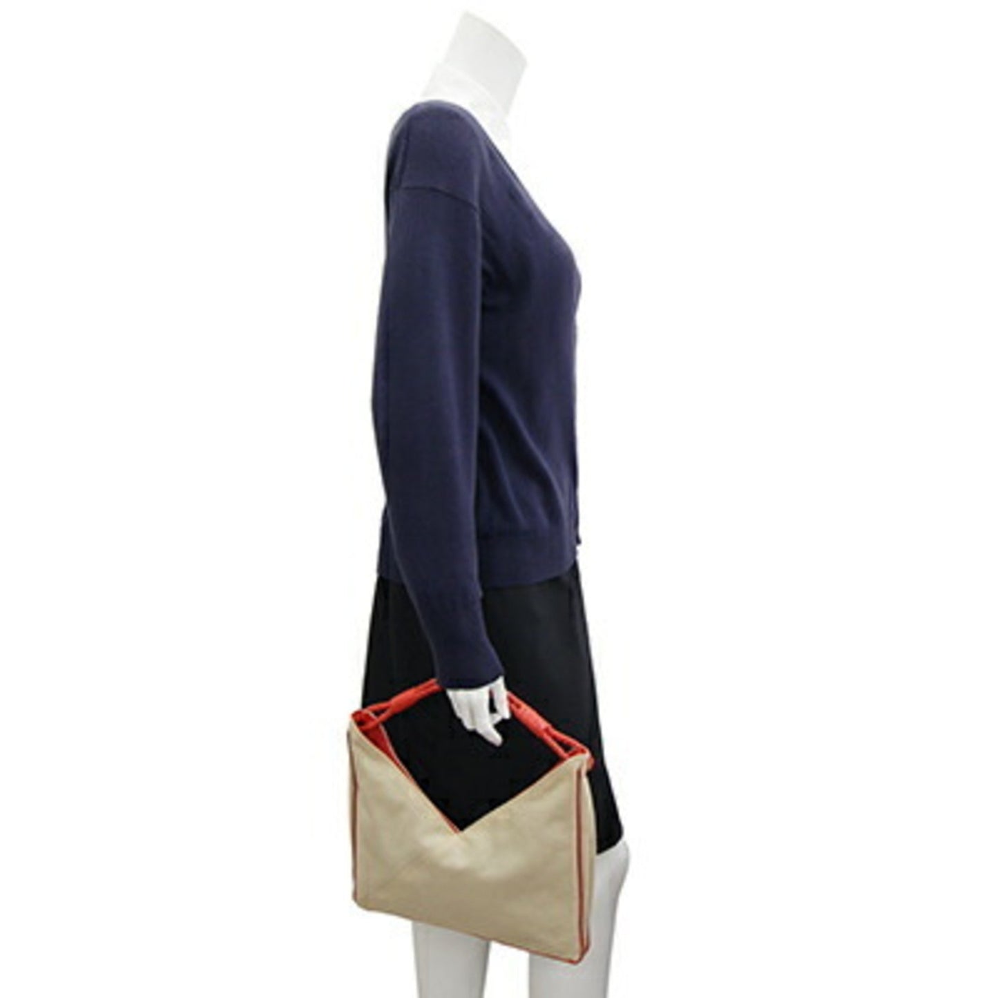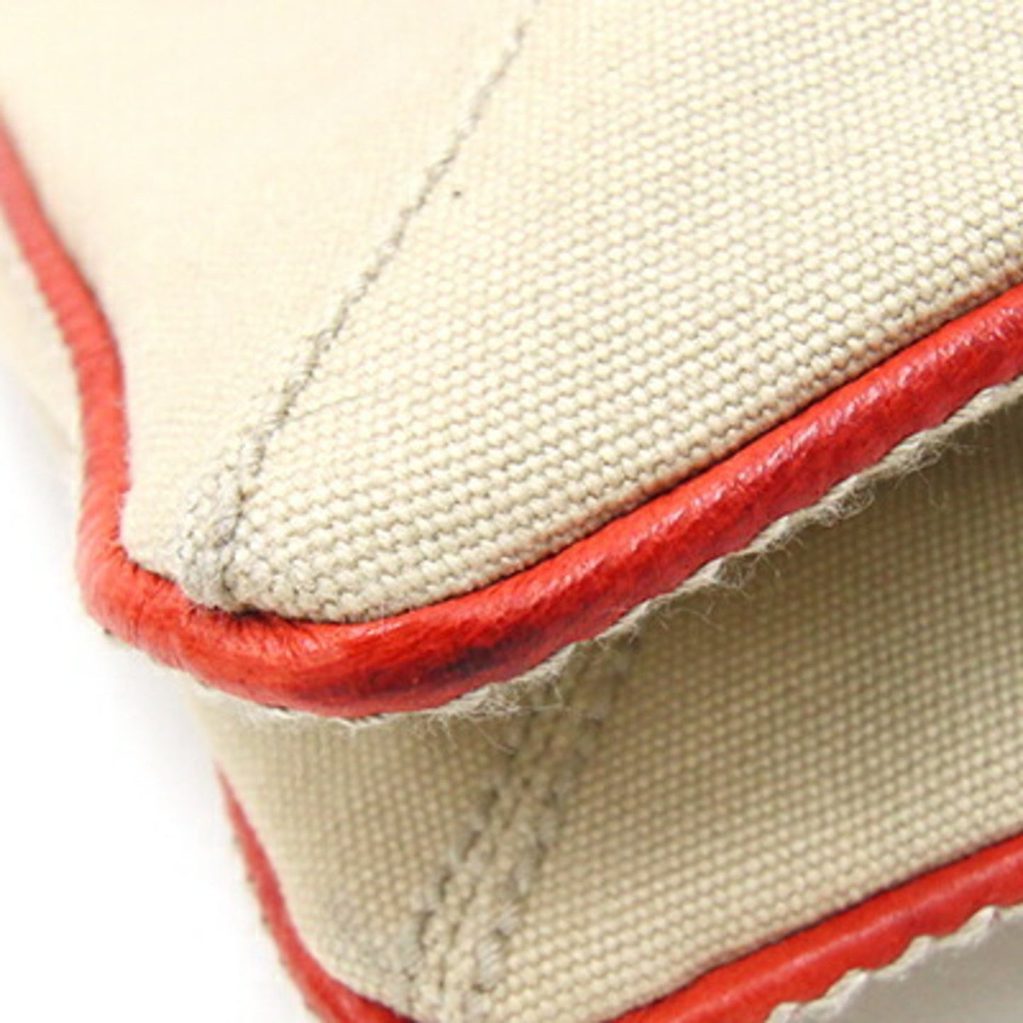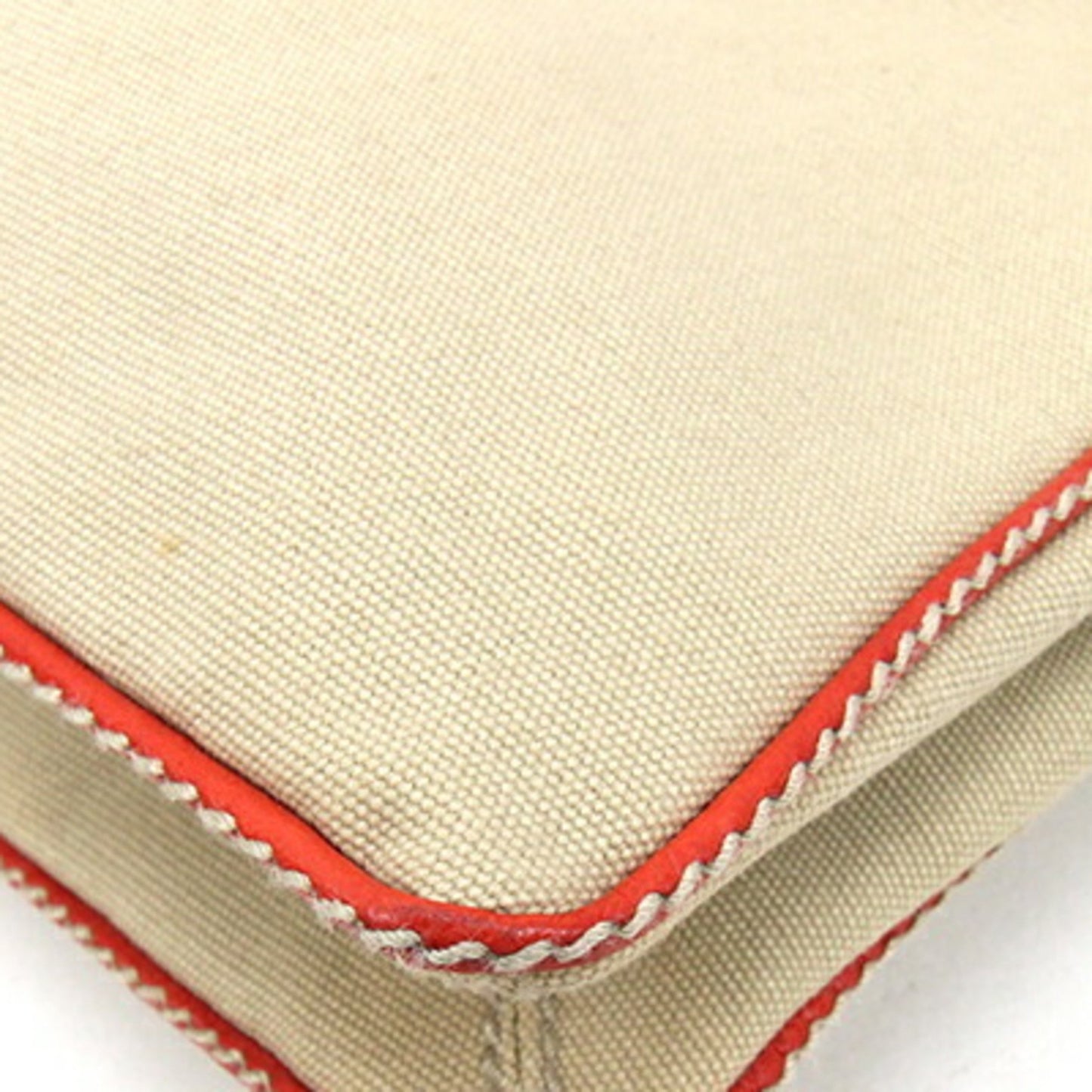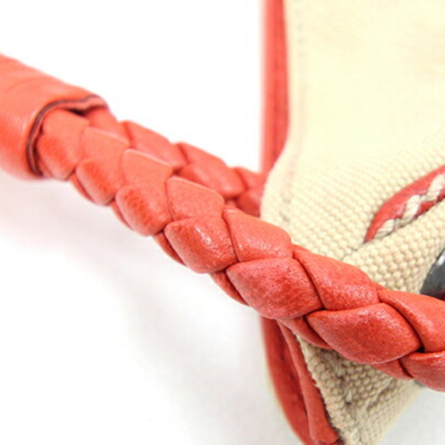 The Bottega Veneta handbag is a stylish accessory crafted from beige and orange canvas leather. Its design combines practicality with elegance, making it a versatile choice for various occasions.