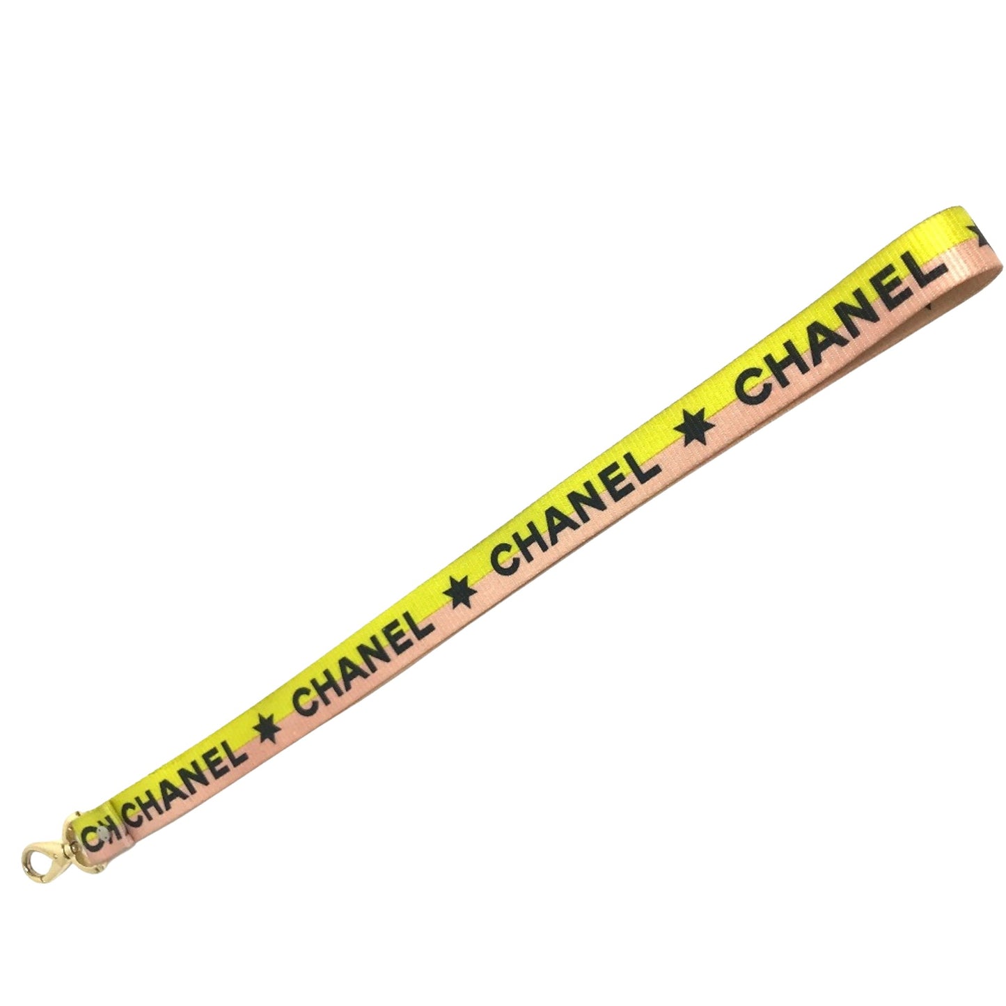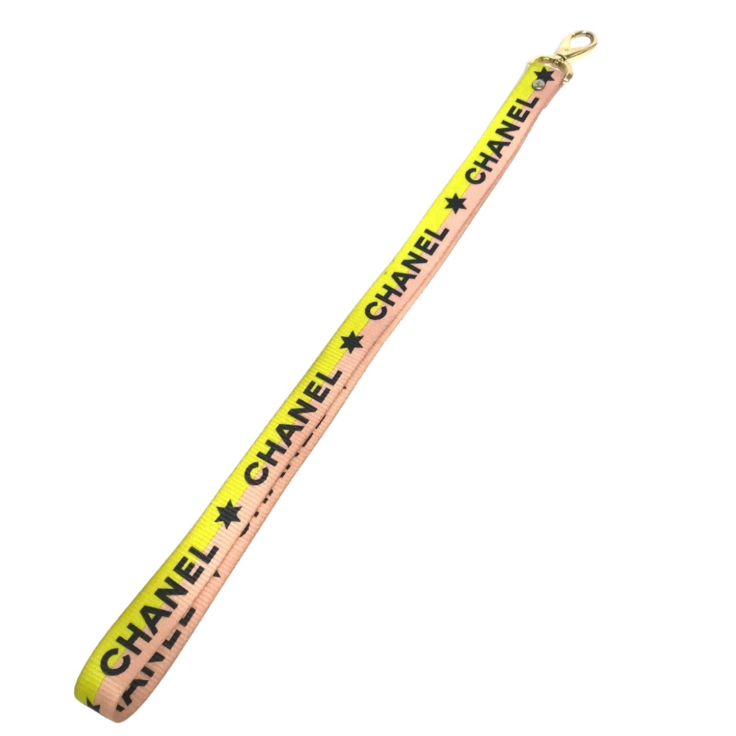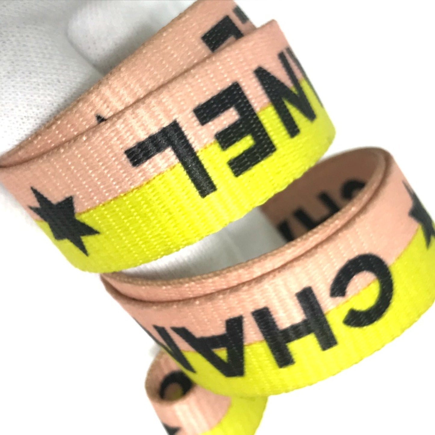 The Chanel necklace is a chic accessory made from pink cloth. Its design features a distinctive look that complements various outfits.