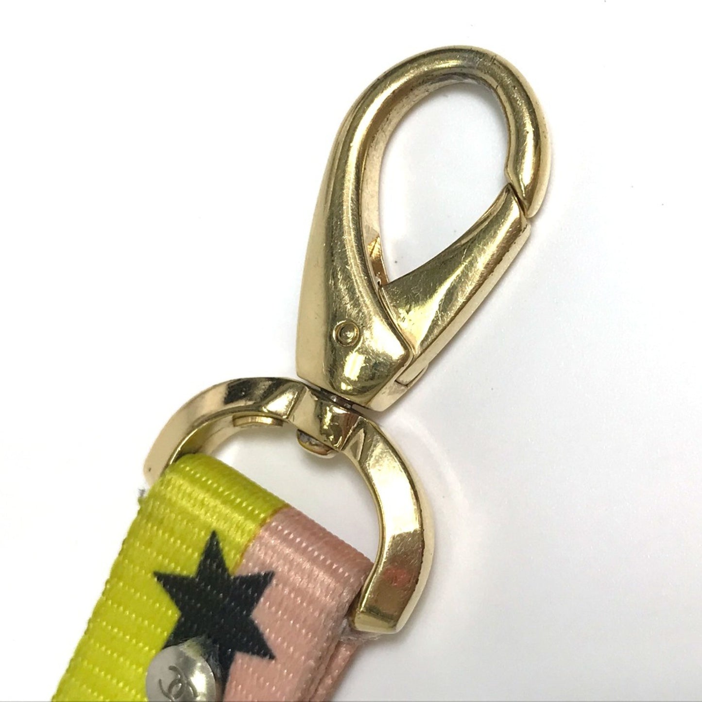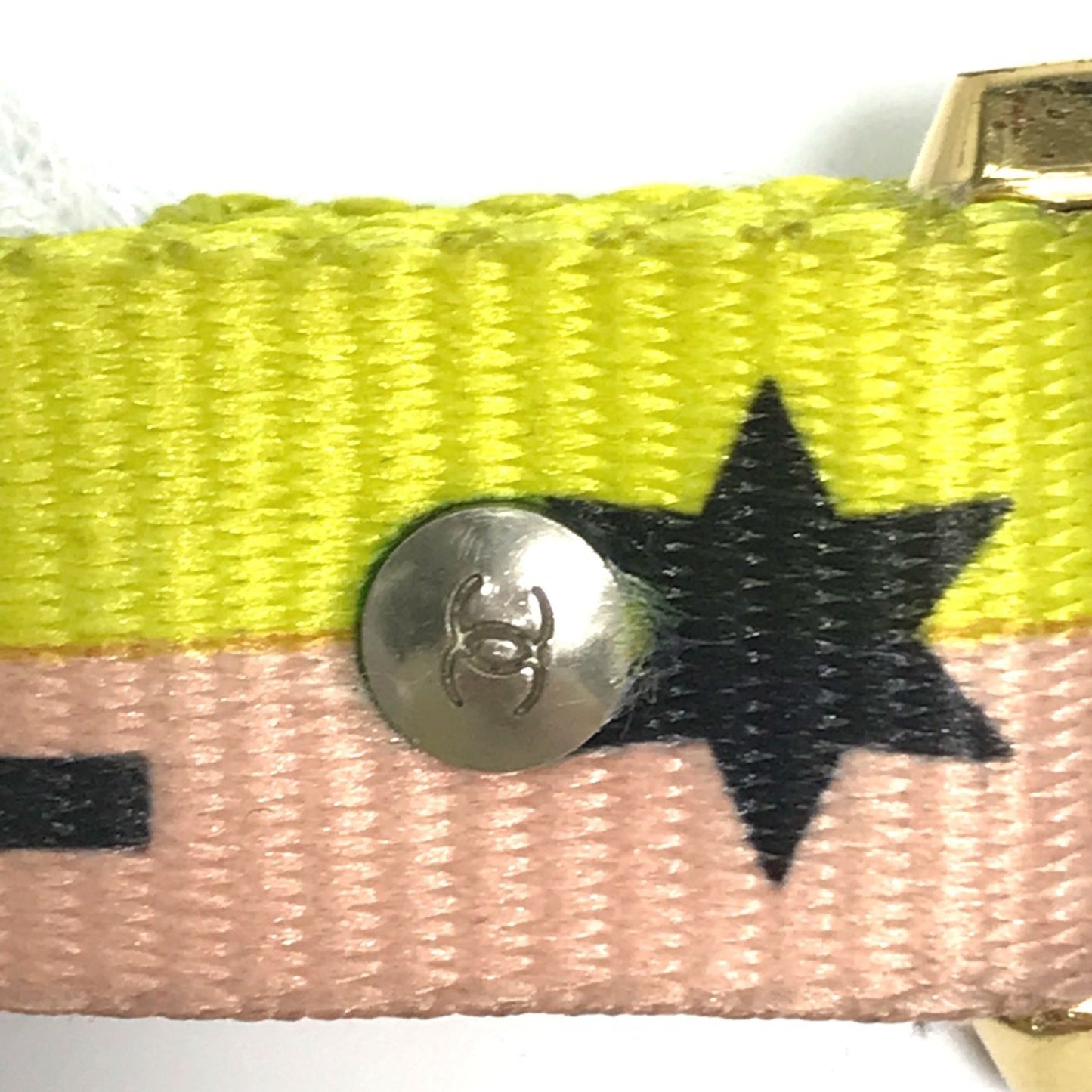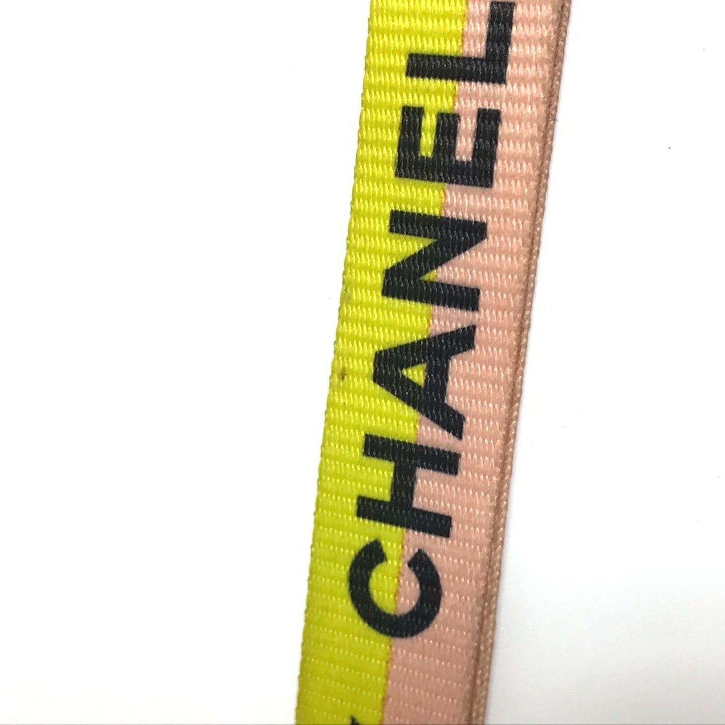 The Chanel necklace is a chic accessory made from pink cloth. Its design features a distinctive look that complements various outfits.
