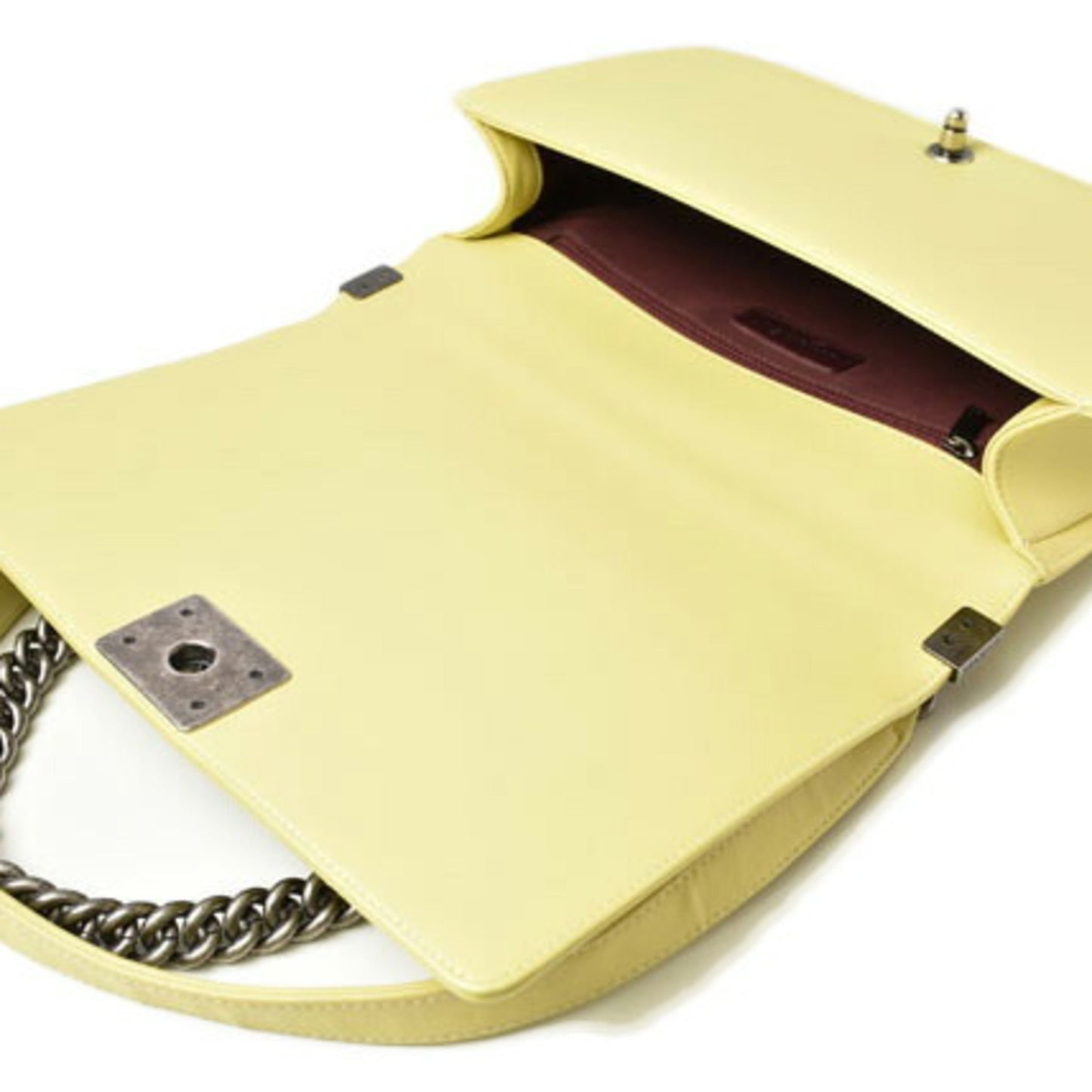 The highlighted item is the Chanel Sac CHANEL Boy, a versatile accessory that functions as both a clutch bag and a shoulder bag. Crafted from high-quality leather in a vibrant yellow hue, this design is specifically tailored for women. The combination of the iconic Chanel brand, the stylish Boy design, and the striking yellow color makes this piece a bold and fashionable choice for various occasions.