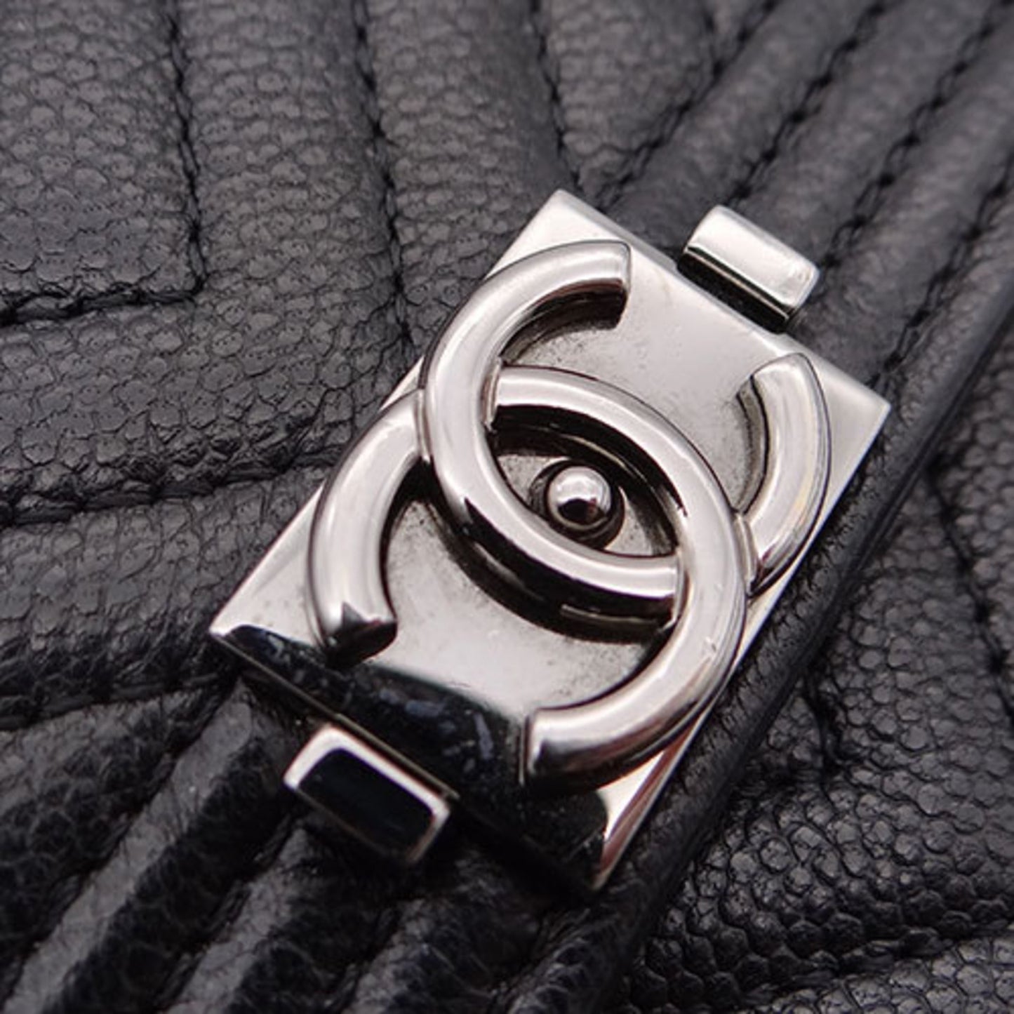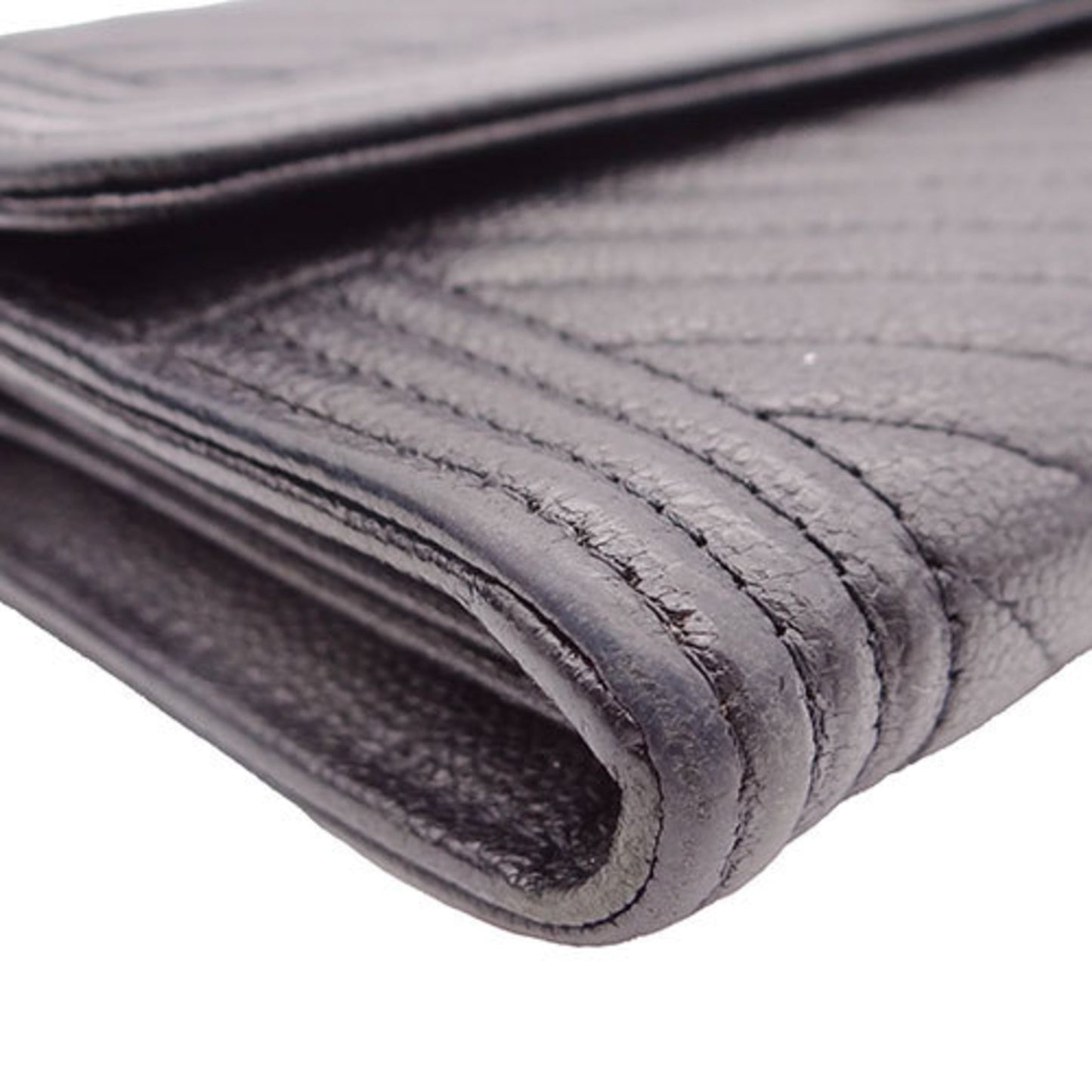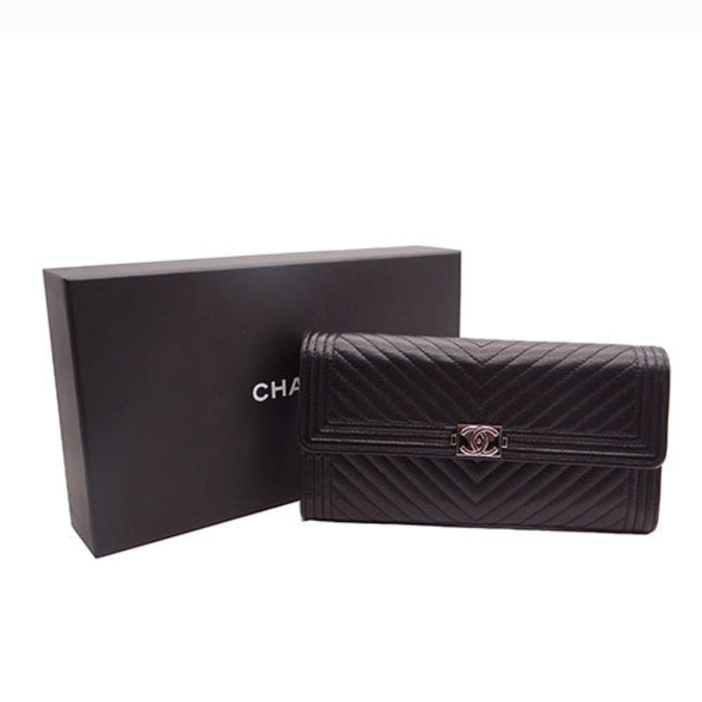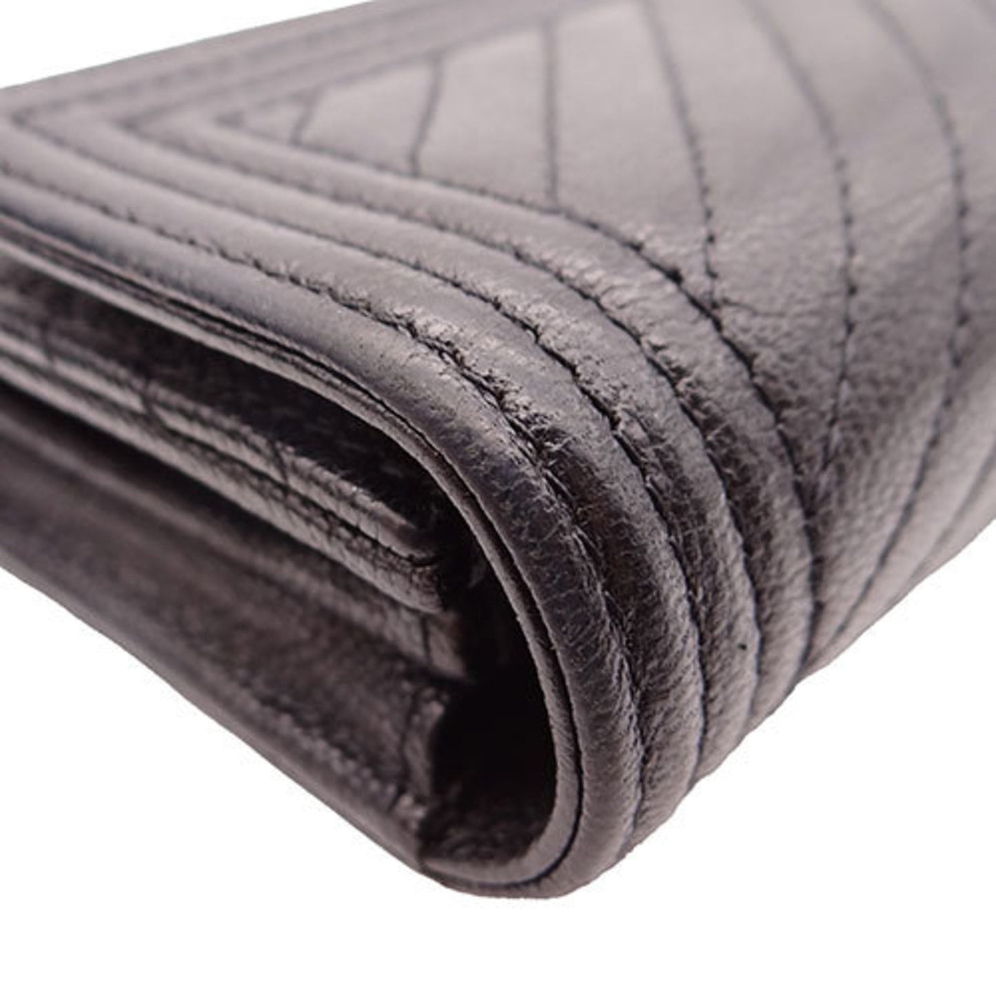 The Chanel Boy long wallet (bi-fold) is a sophisticated accessory for women, crafted from sleek black leather. Its elegant design combines practicality with a timeless style.