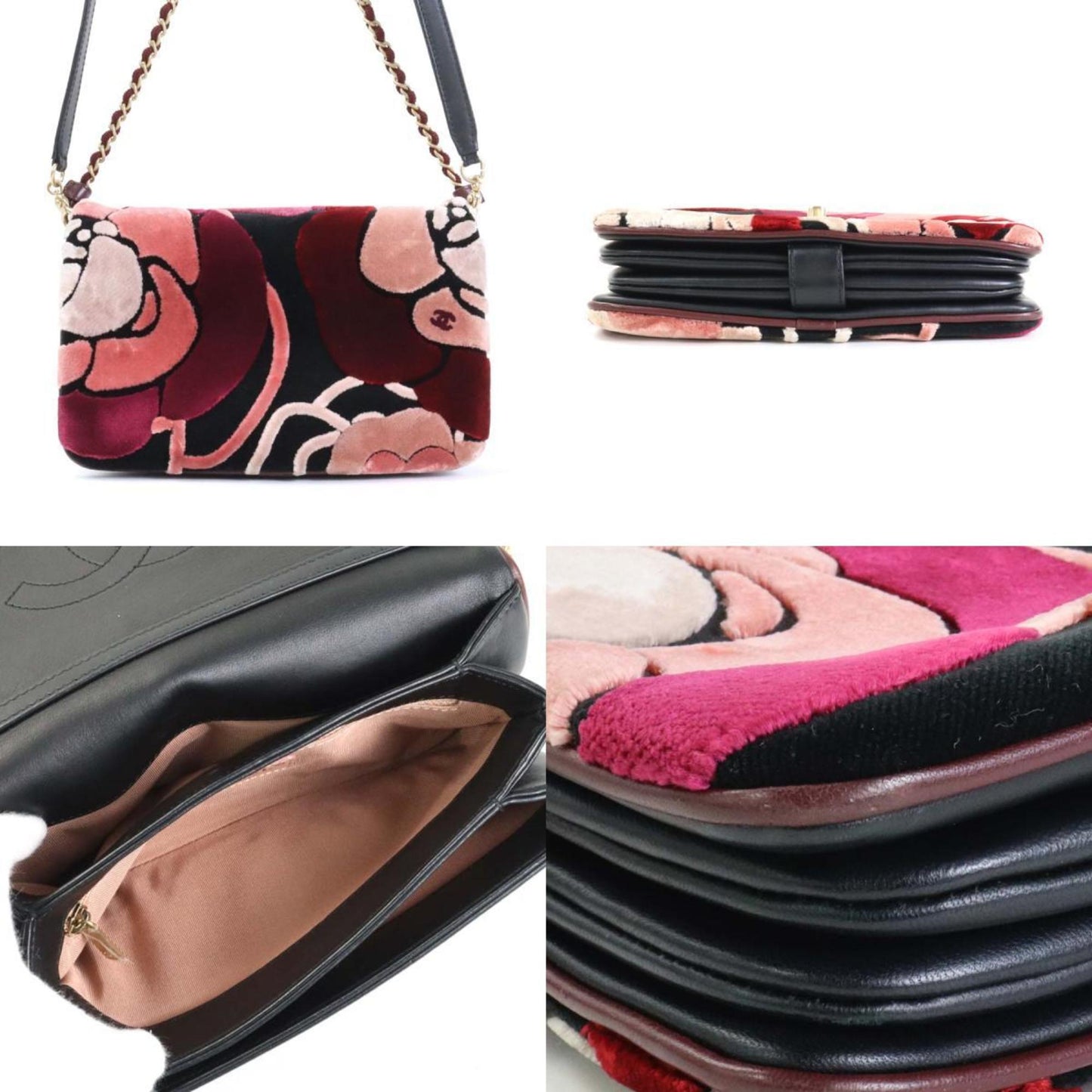 The Chanel Camellia Shoulder Bag is a stunning and versatile accessory designed for women. Crafted from luxurious velvet leather in a striking black and multi-color combination, it exudes sophistication and charm. The gold hardware adds an extra touch of elegance, making it a standout piece for various occasions.