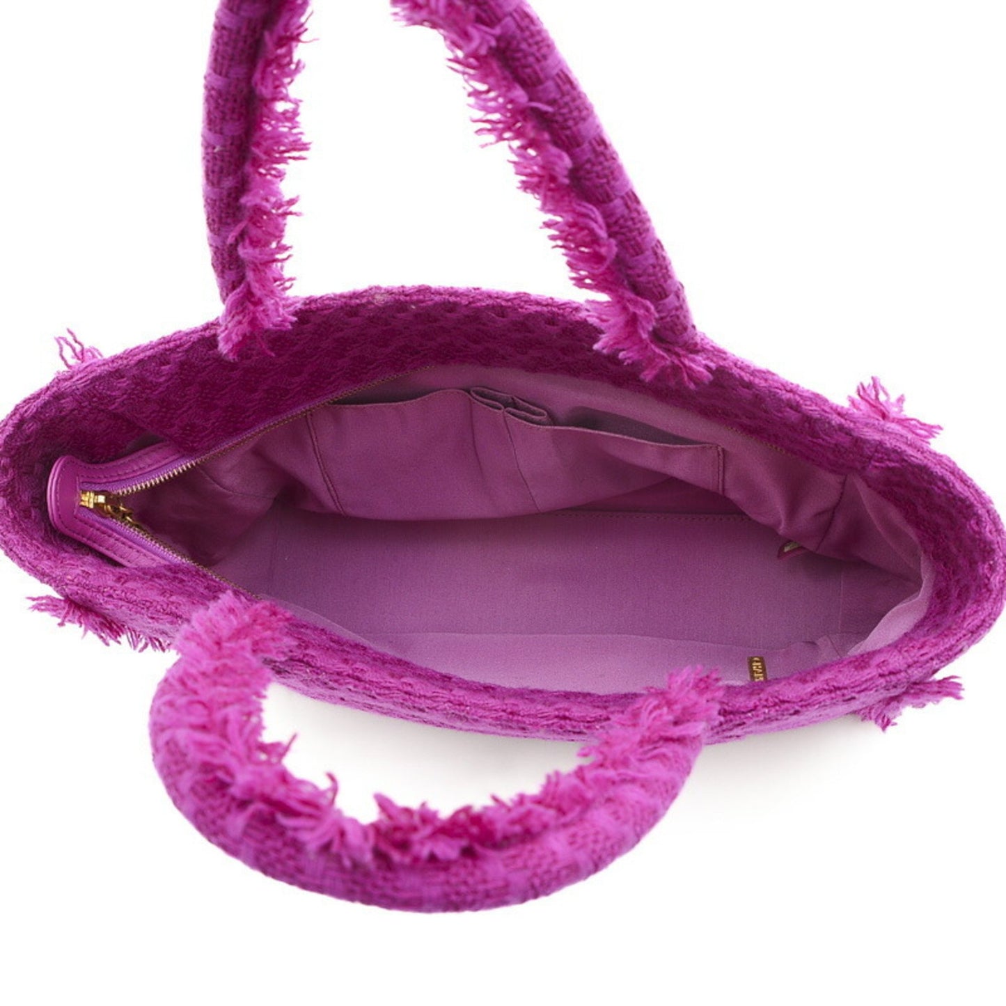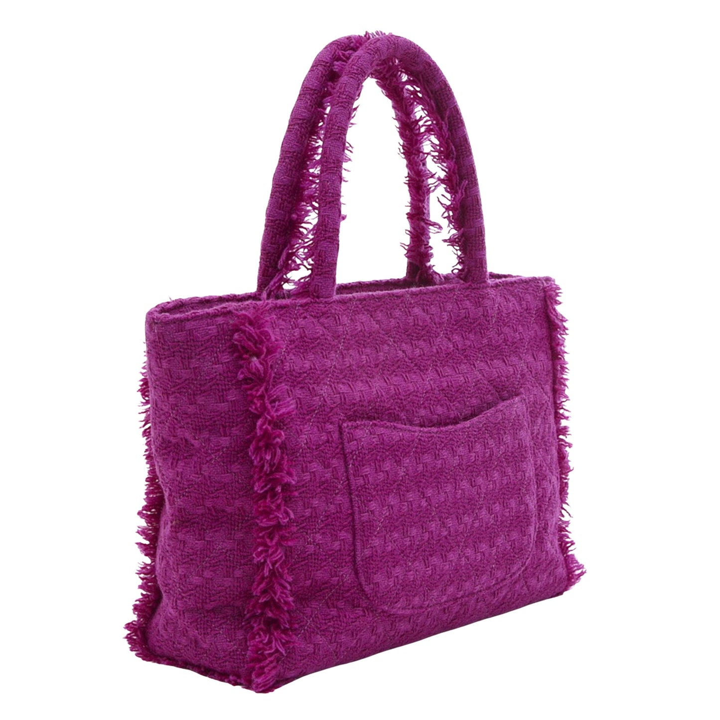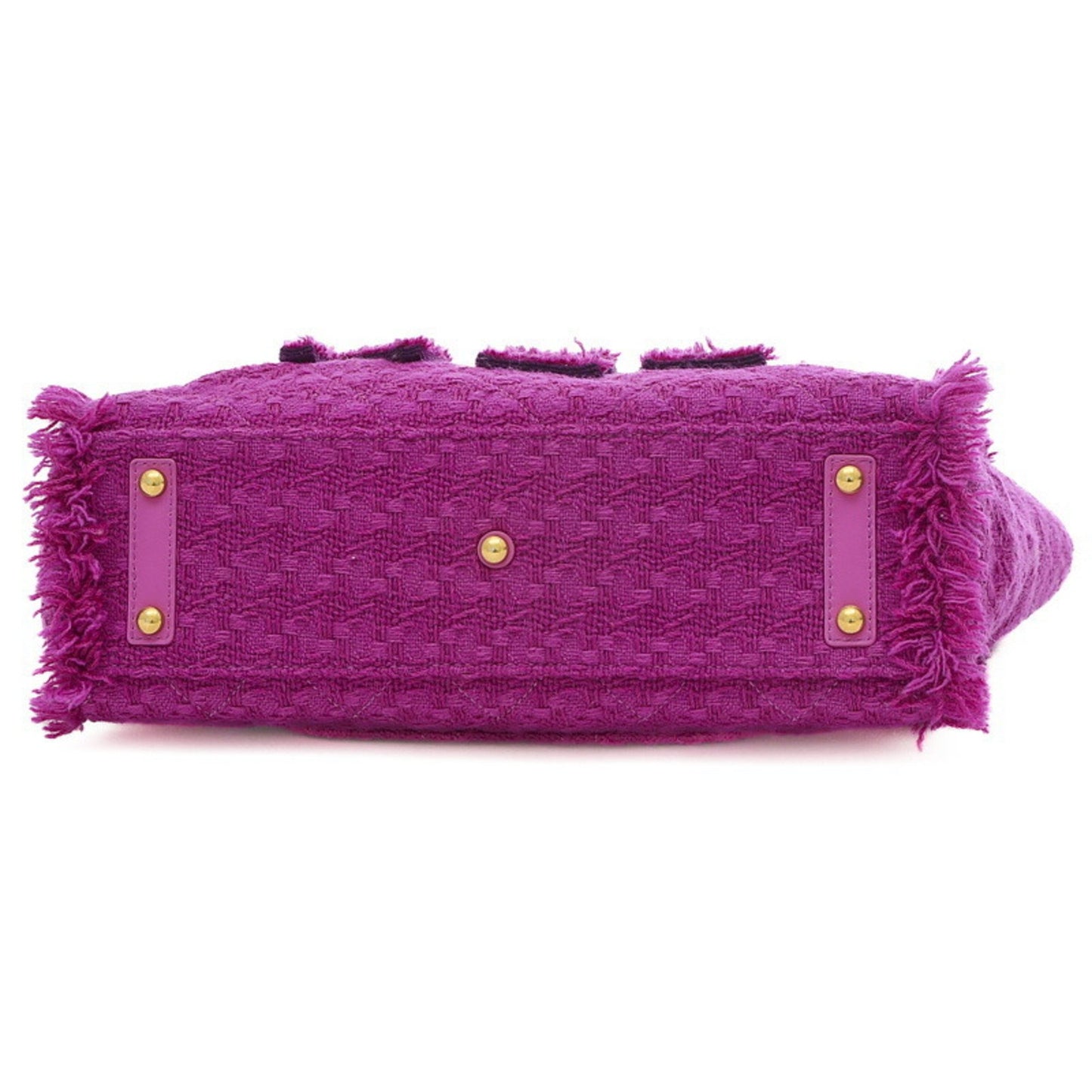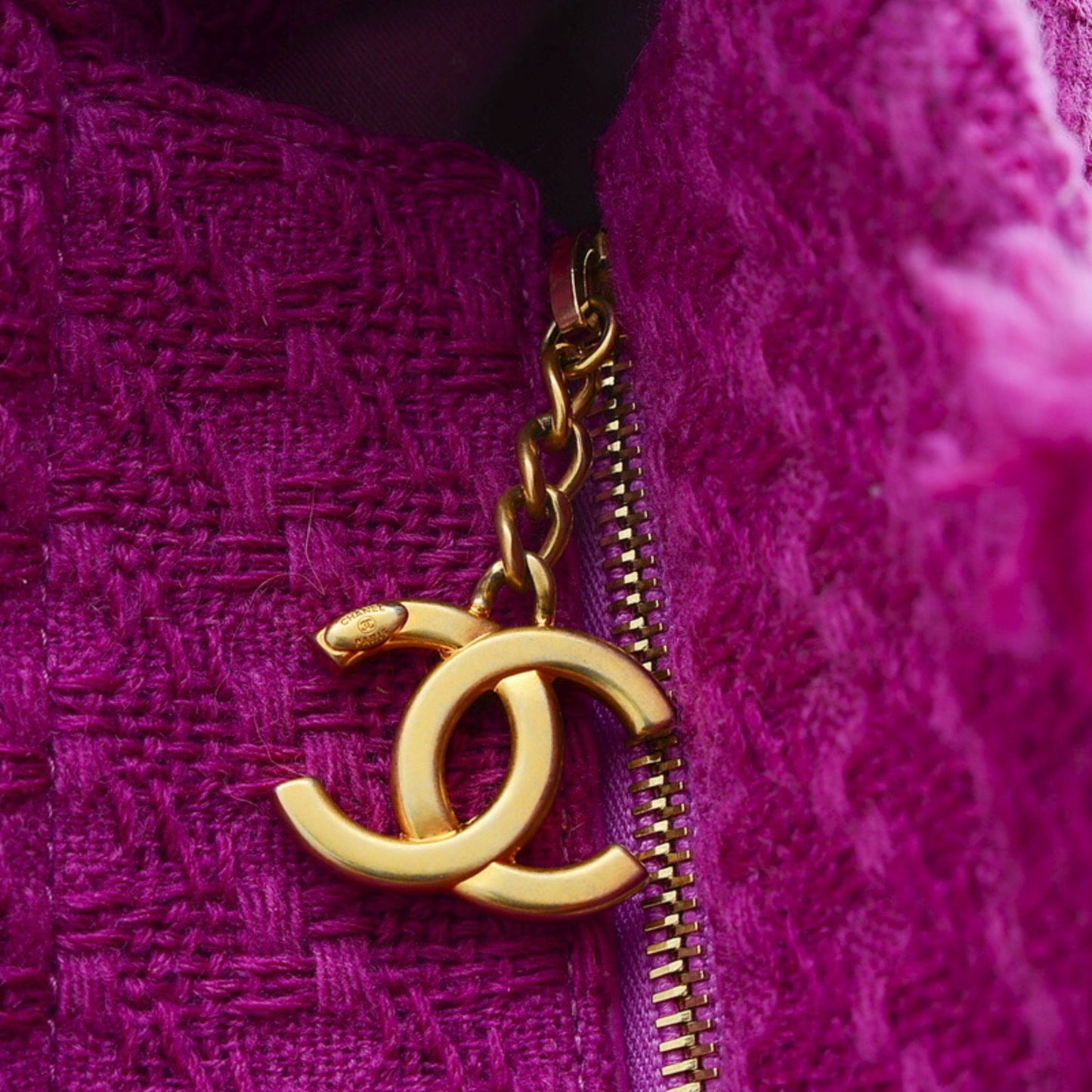 The Chanel Giant Logo handbag and tote bag is a stunning accessory, crafted from luxurious purple tweed. The bold design and high-quality material make it a standout addition to any wardrobe.
