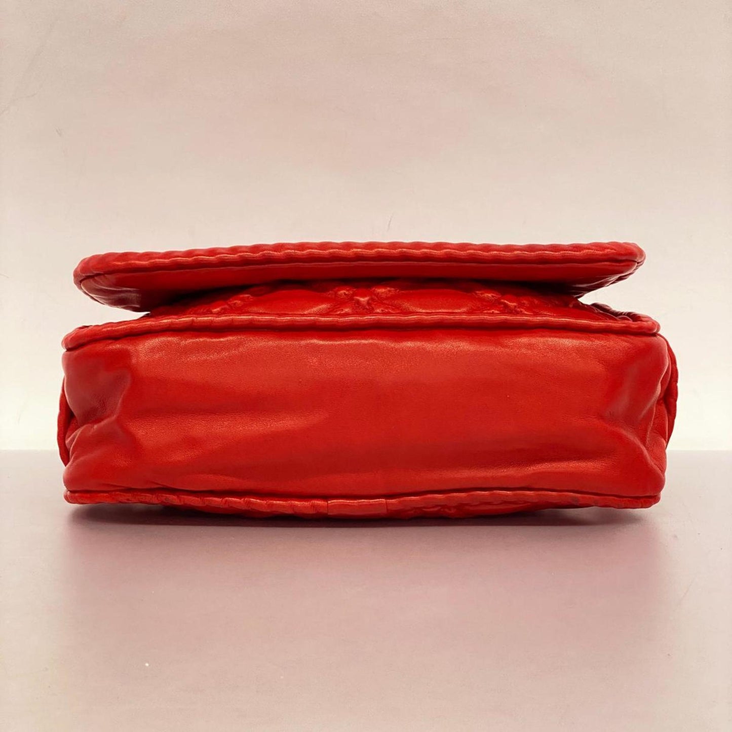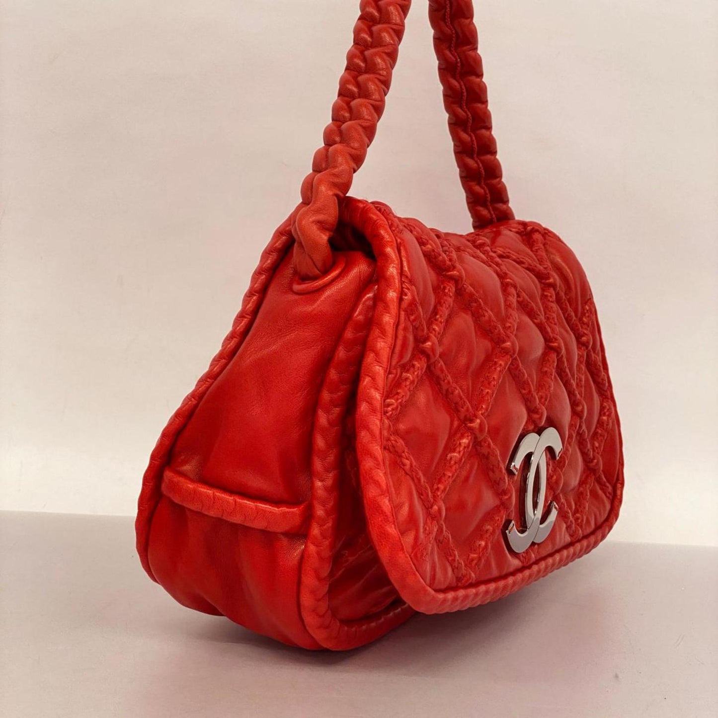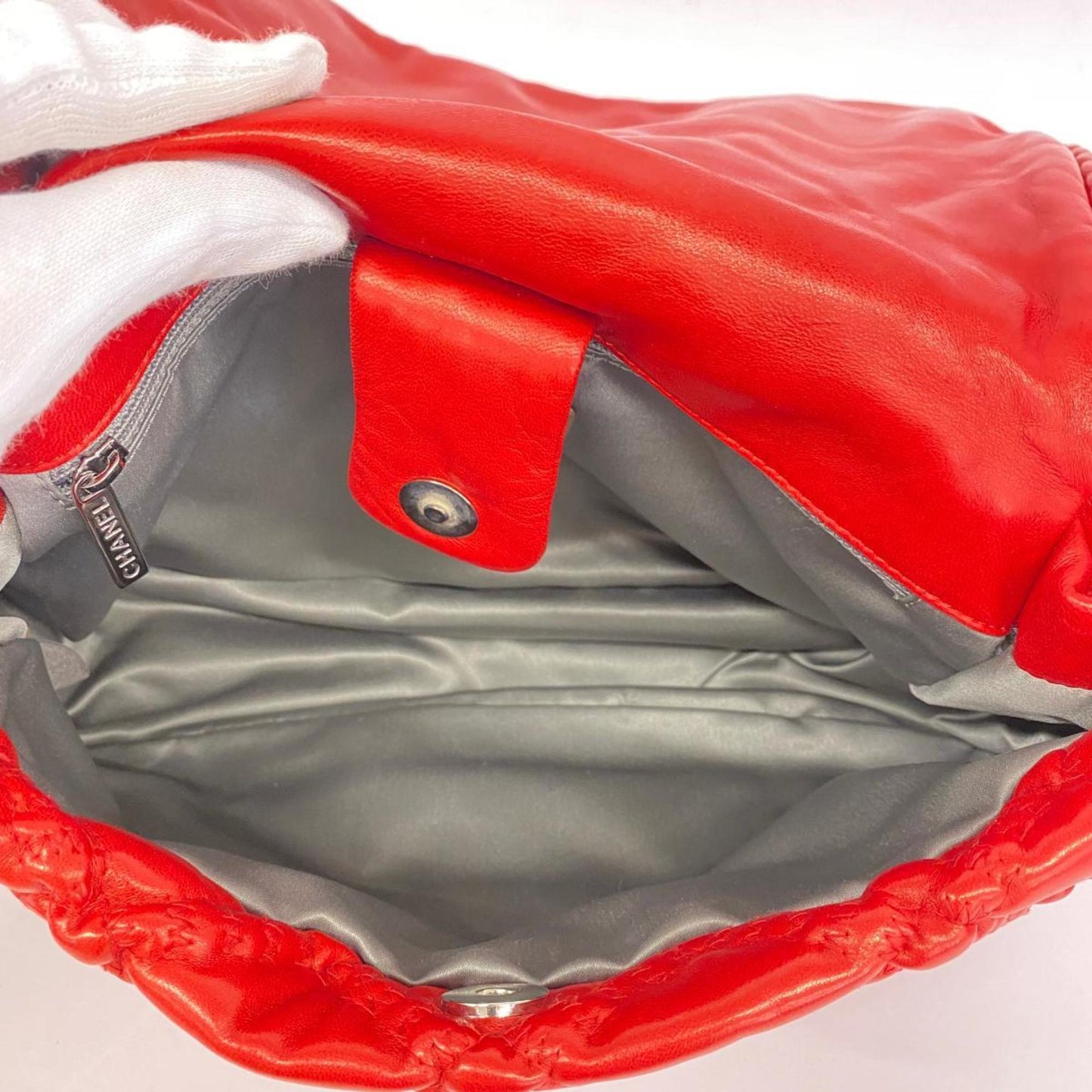 The Chanel Flap Bag shoulder bag is a striking accessory for women, crafted from luxurious red leather with sleek silver hardware. Its vibrant color and elegant design make it a standout piece for any occasion.