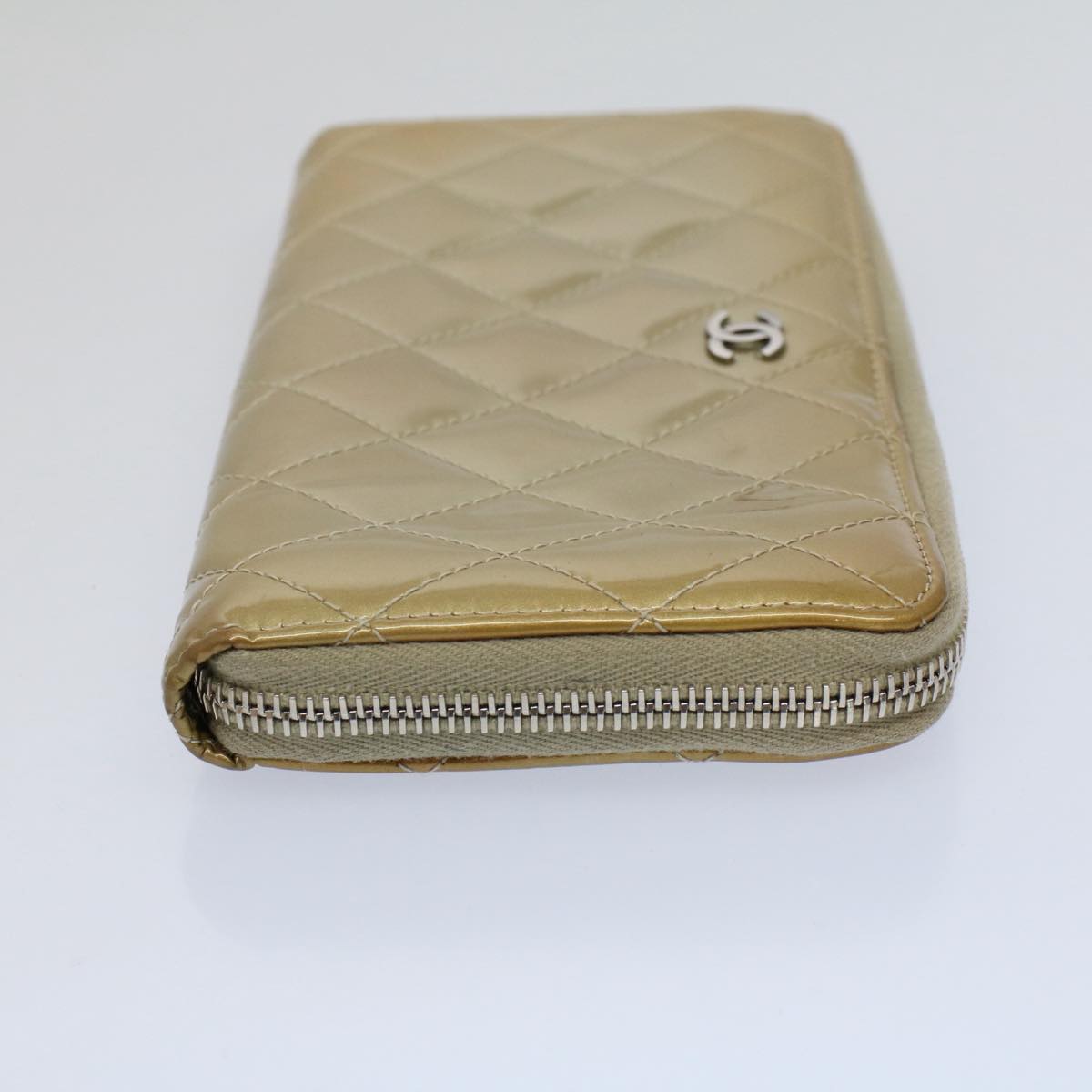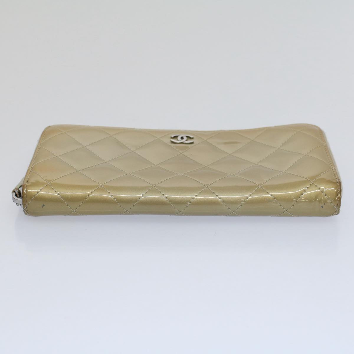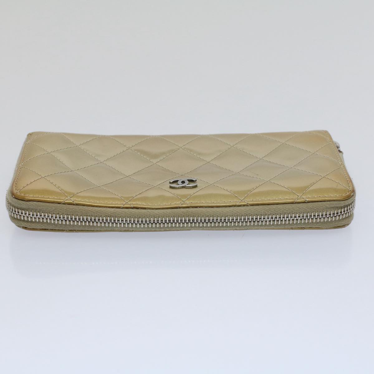 Introducing the Chanel "Matelassé" Long Wallet, a chic accessory that embodies the brand's luxurious design. Crafted from gleaming gold-tone patent leather, this wallet radiates sophistication. Meticulously made in Italy, the current condition of the wallet suggests signs of use.