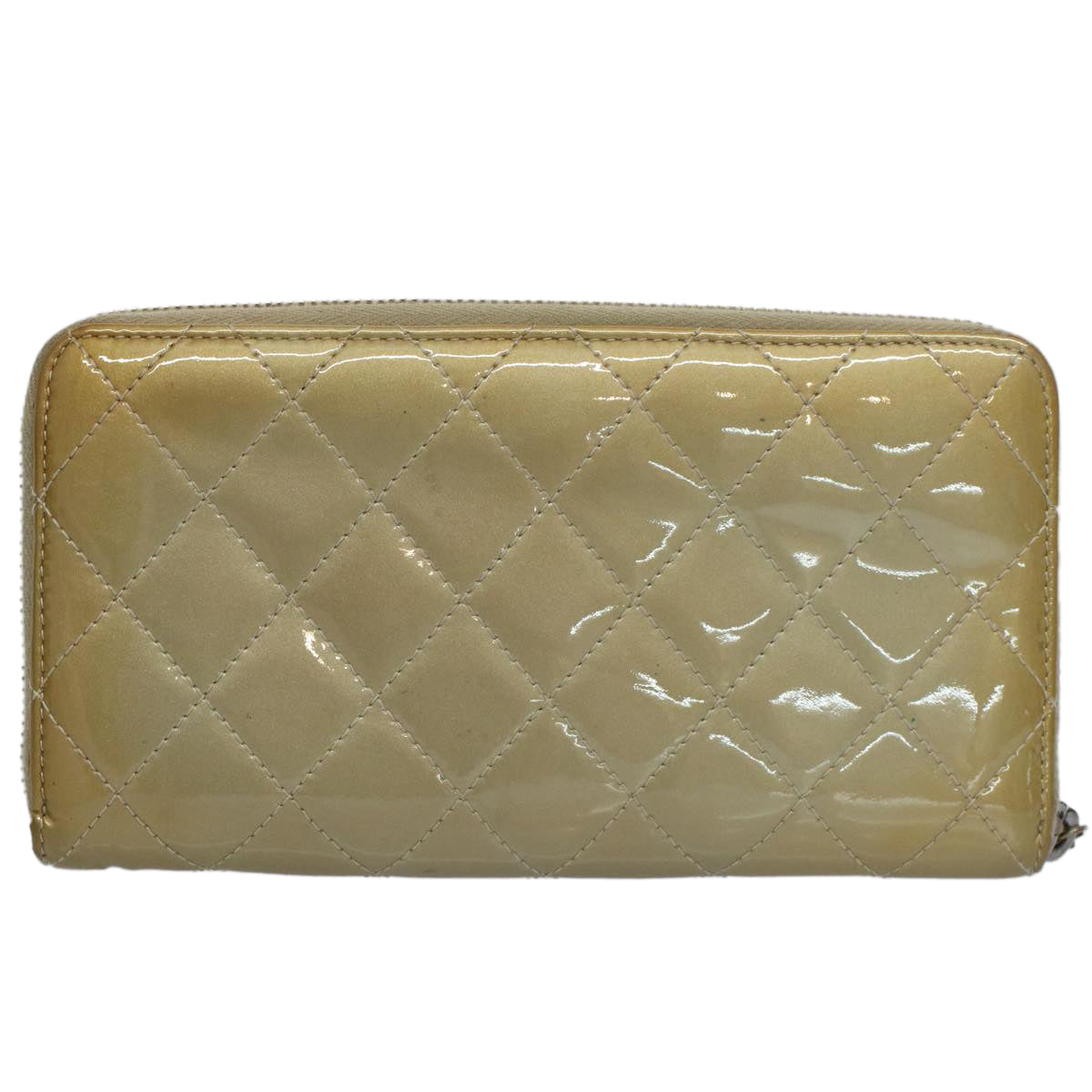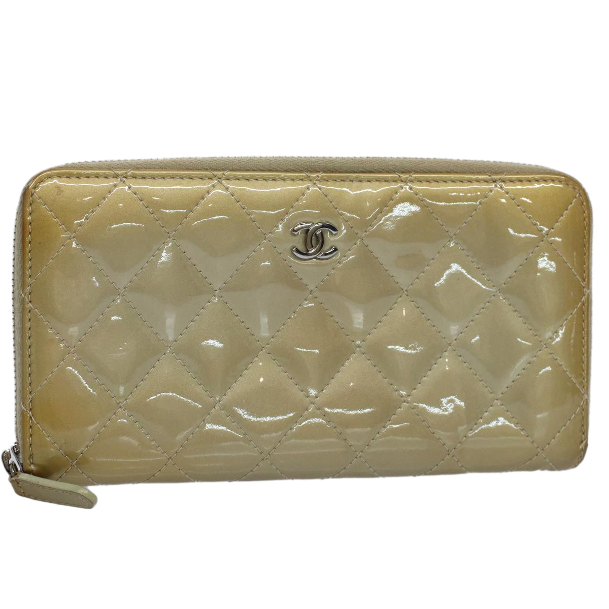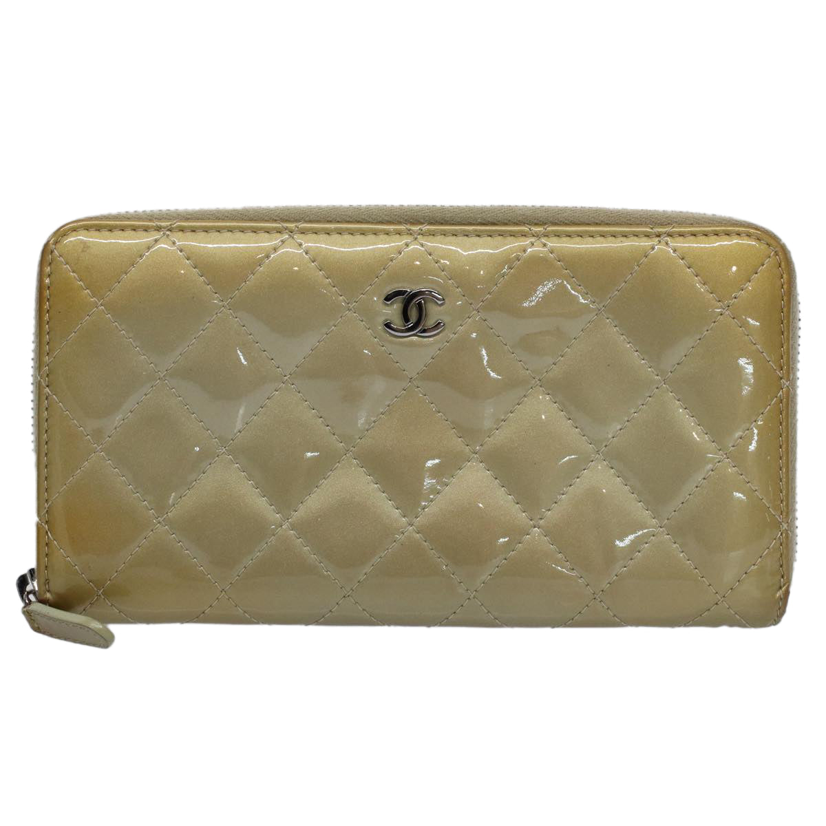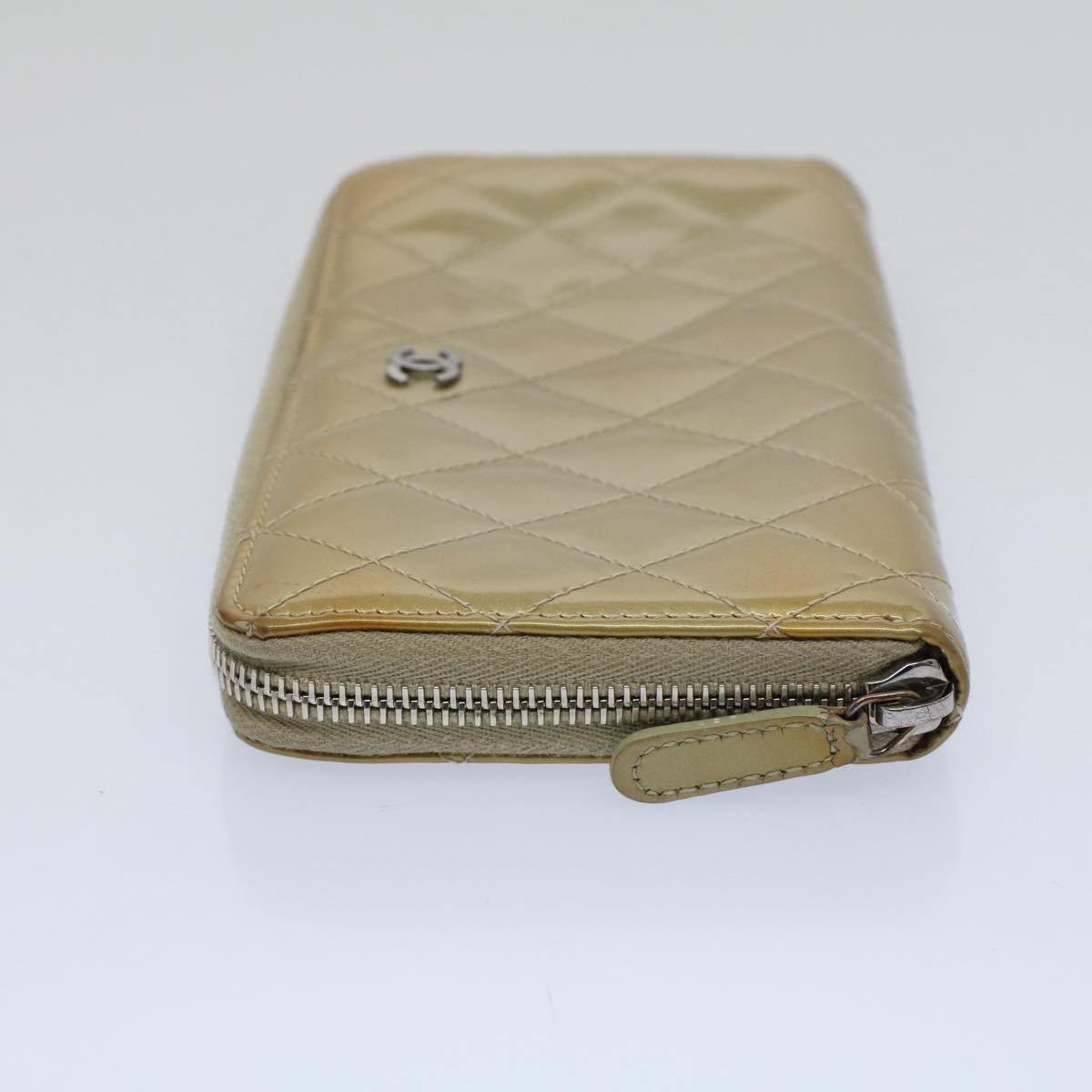 Introducing the Chanel "Matelassé" Long Wallet, a chic accessory that embodies the brand's luxurious design. Crafted from gleaming gold-tone patent leather, this wallet radiates sophistication. Meticulously made in Italy, the current condition of the wallet suggests signs of use.