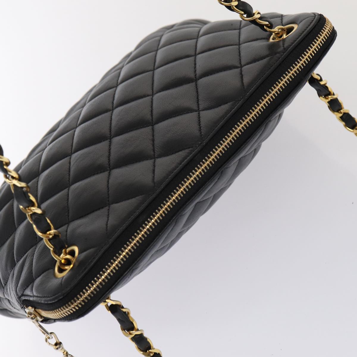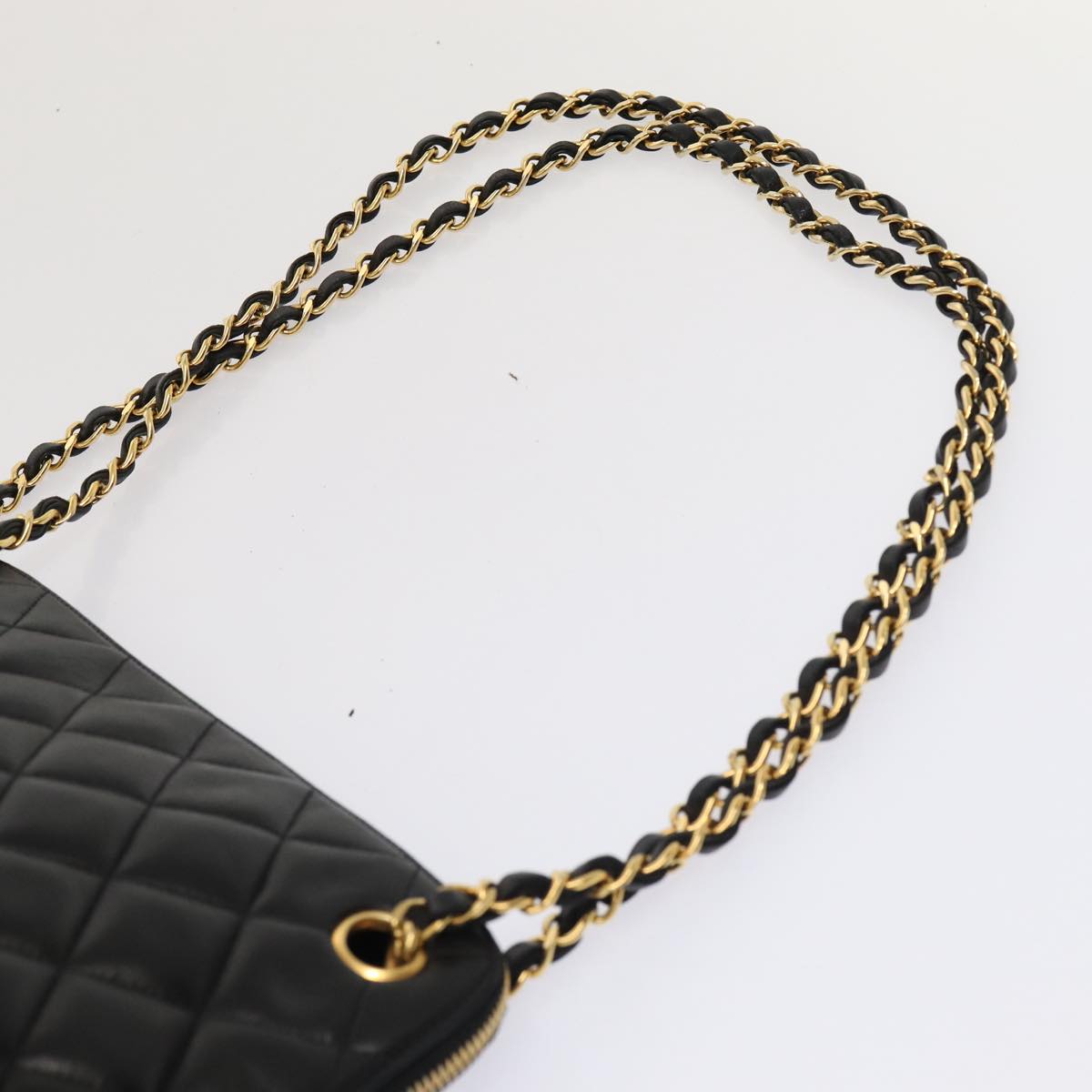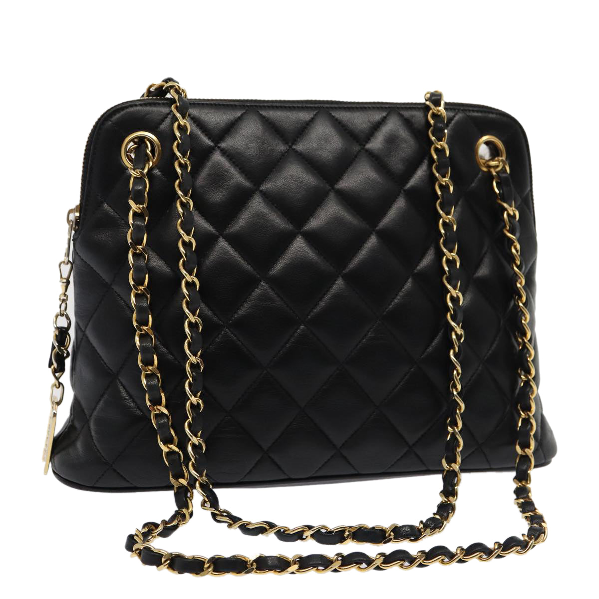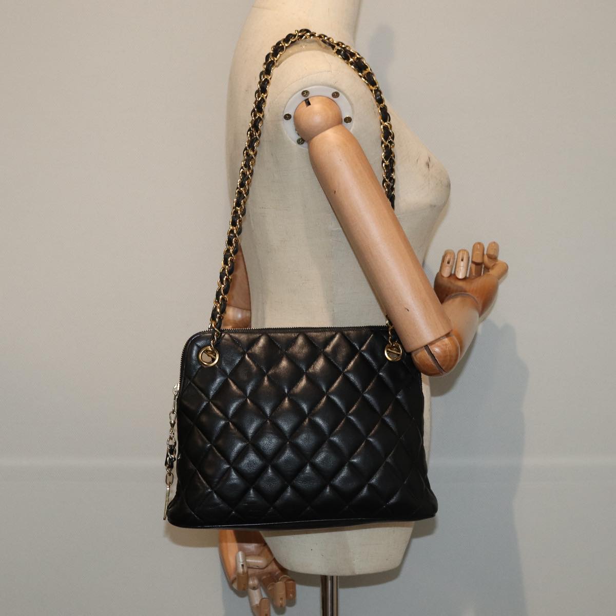 The Chanel "Matelassé" shoulder bag is an elegant accessory, crafted from black lambskin. This sophisticated bag, made in Italy, reflects Chanel's renowned craftsmanship and timeless design.