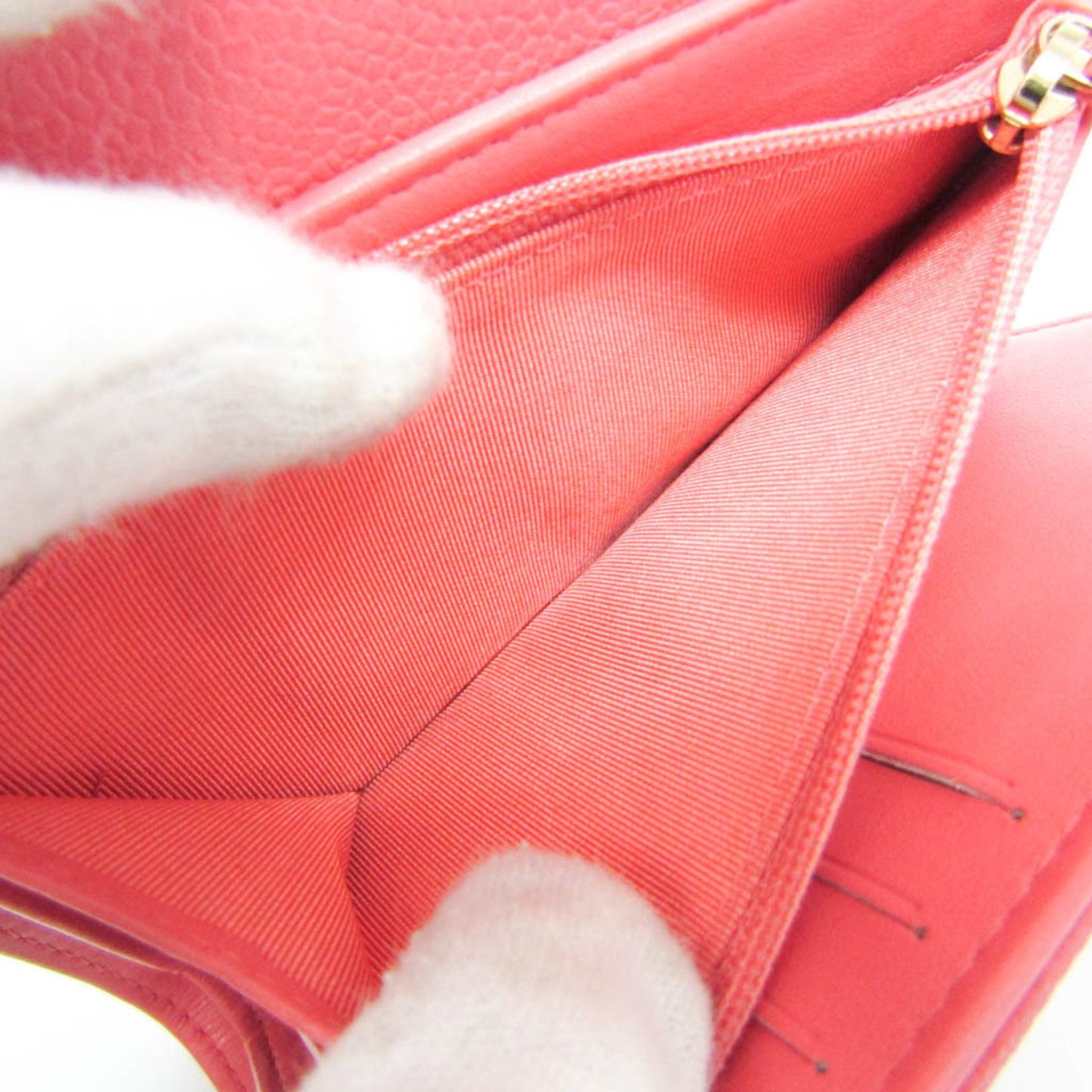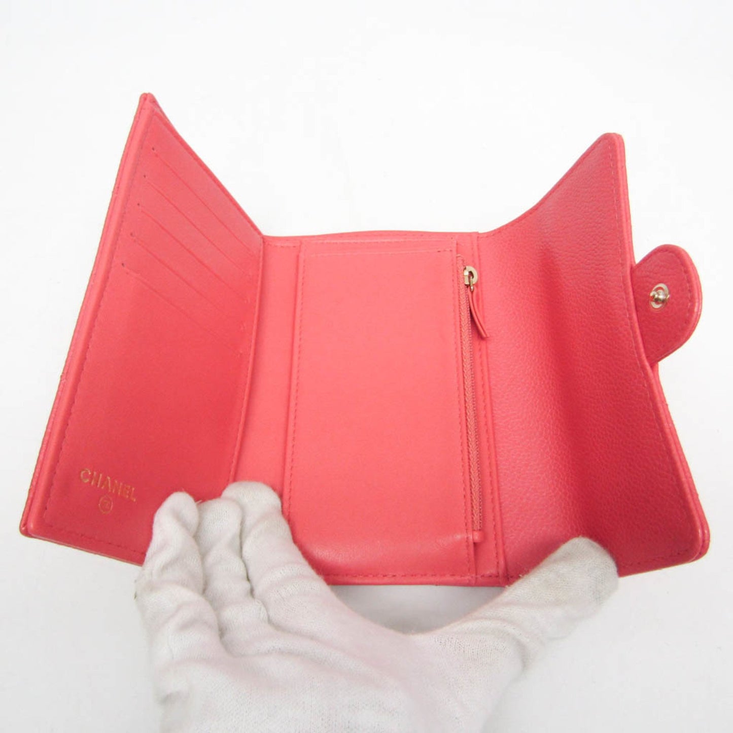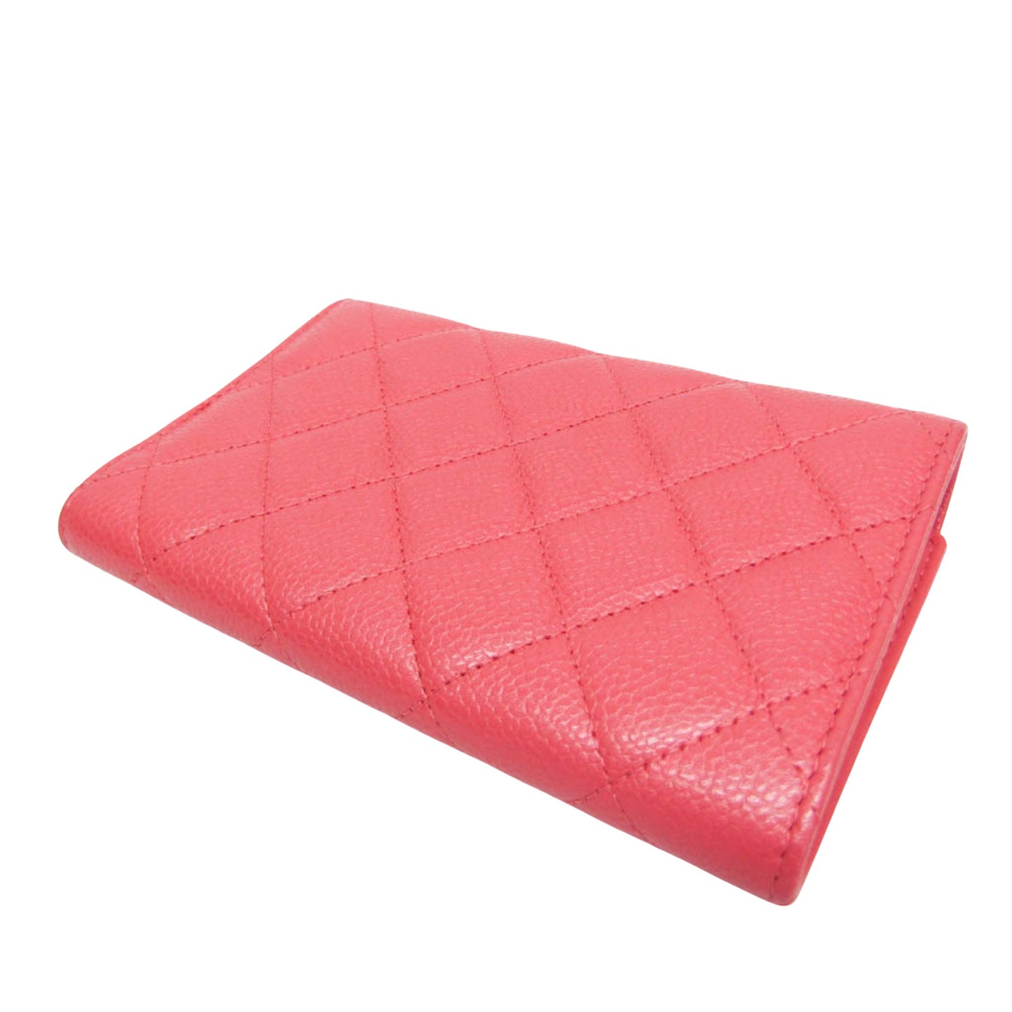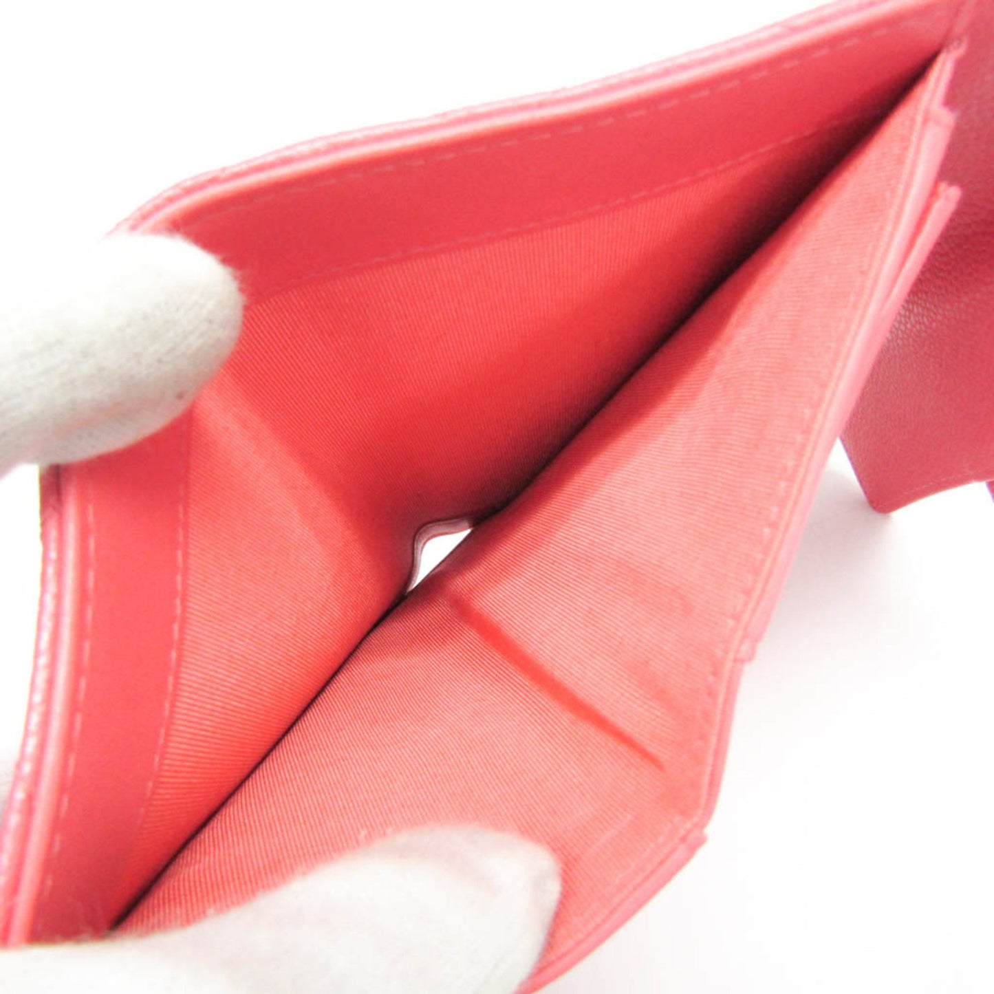 This Chanel Matelassé middle wallet is a chic tri-fold accessory designed for women. Made in Italy from pink caviar leather, it offers a blend of elegance and durability.