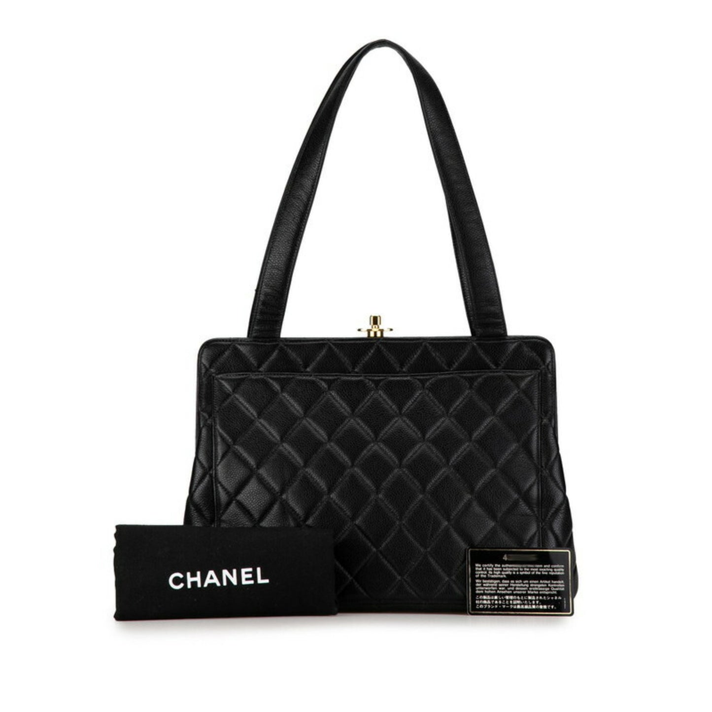 This Chanel Matelassé handbag is a luxurious tote designed for women. Crafted from black caviar leather, it exemplifies Chanel's timeless elegance and craftsmanship.