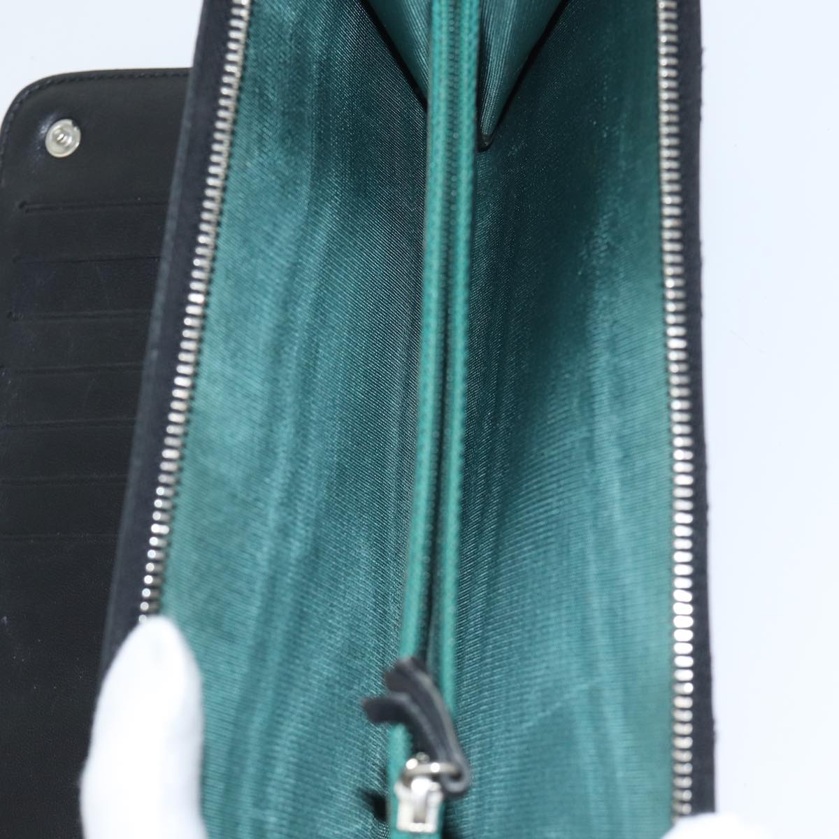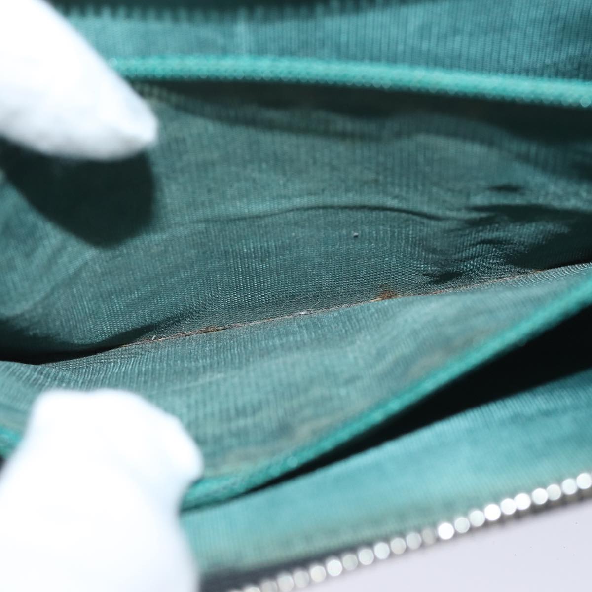 The exterior surface of the item shows rubbing and a slight loss of shape. Metal fittings have scratches. Inside, there is rubbing affecting both the pockets and corners. Additionally, there is a storage odor.