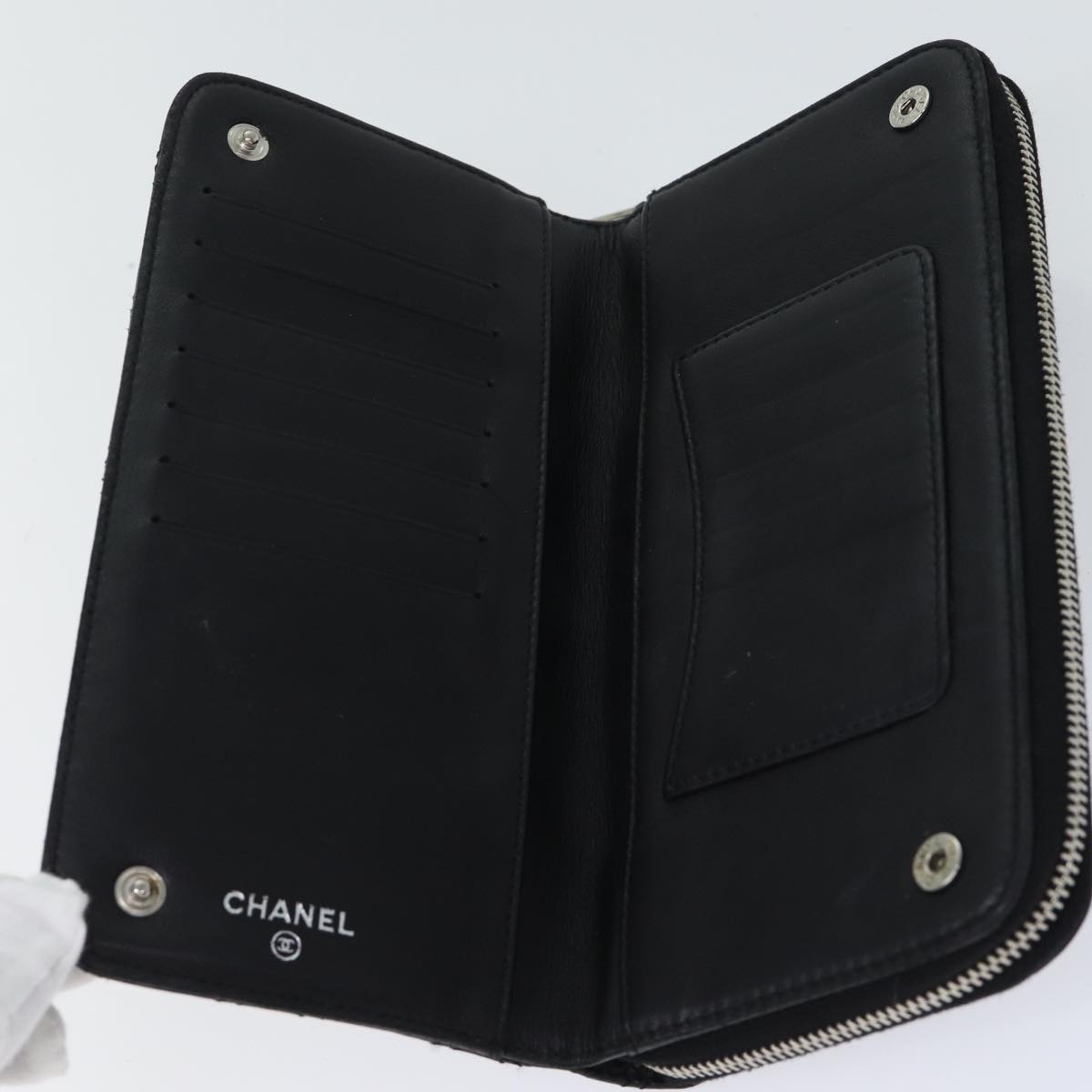 This Chanel Matelassé wallet is both practical and elegant, perfect for organizing your cards, bills and coins. Made from high-quality leather, it feels soft and durable. Its compact design makes it easy to slip into your handbag or pocket.