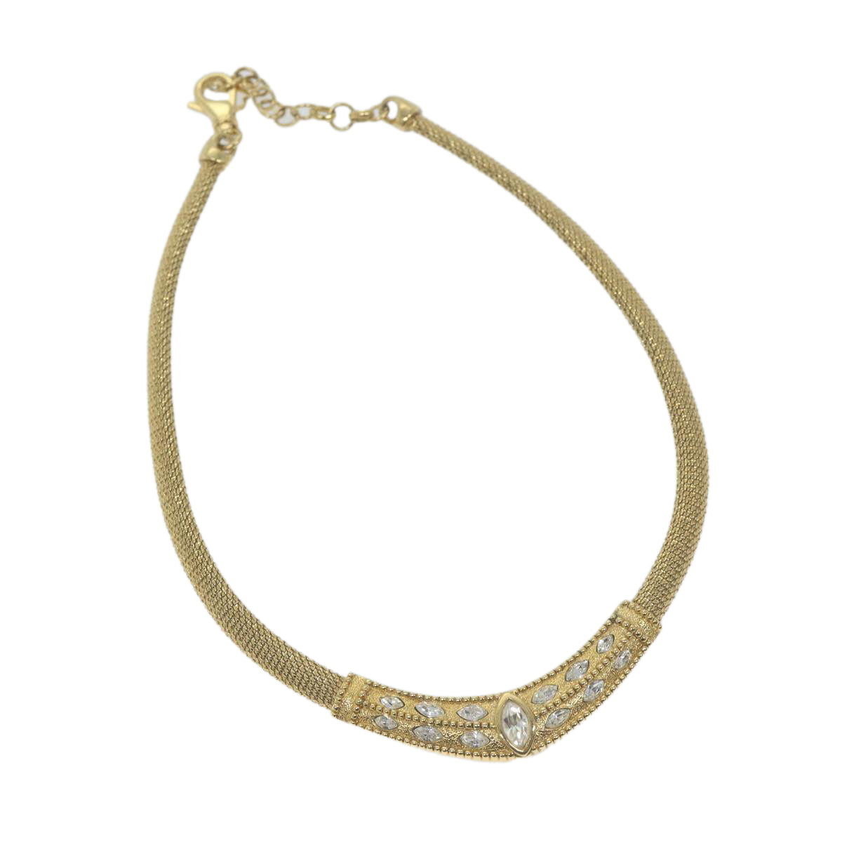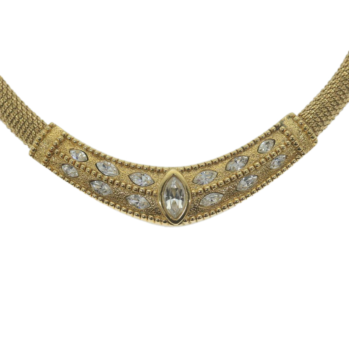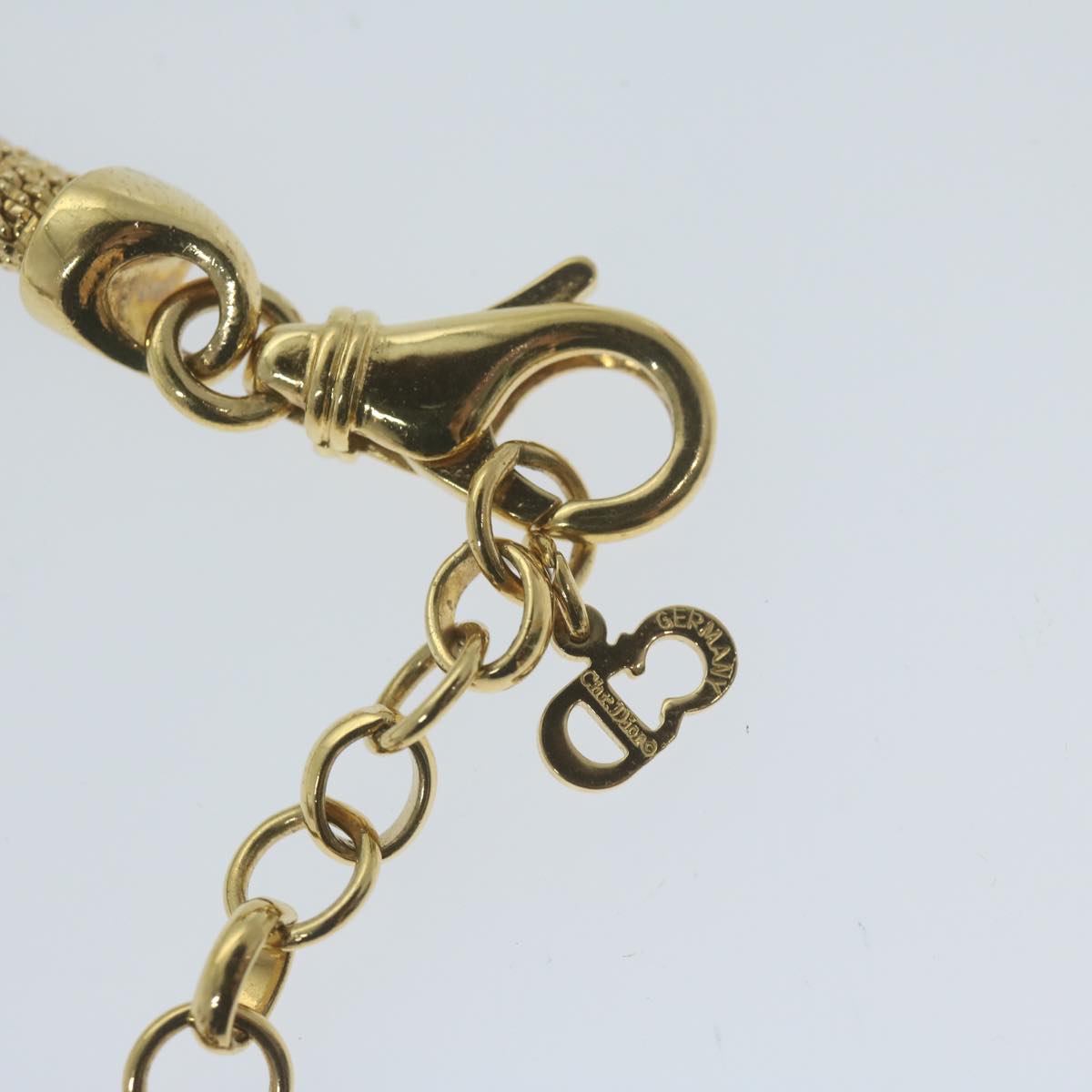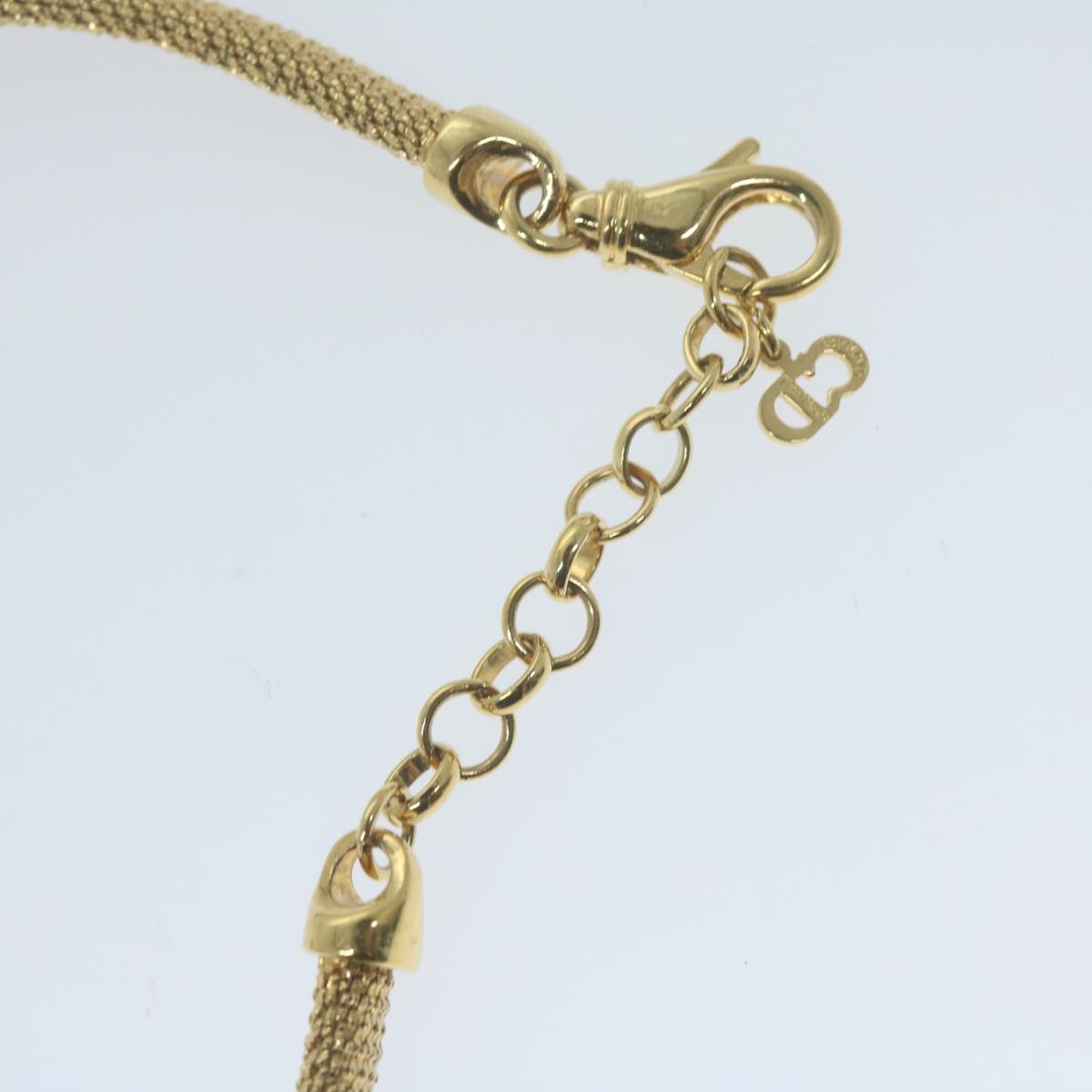 The exterior of the Christian Dior gold necklace exhibits only slight scratches, but overall remains in excellent condition.