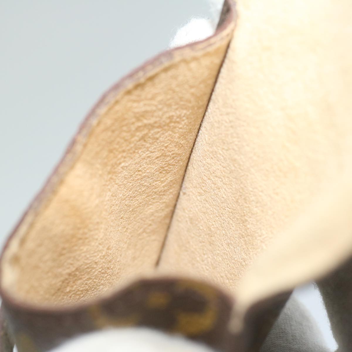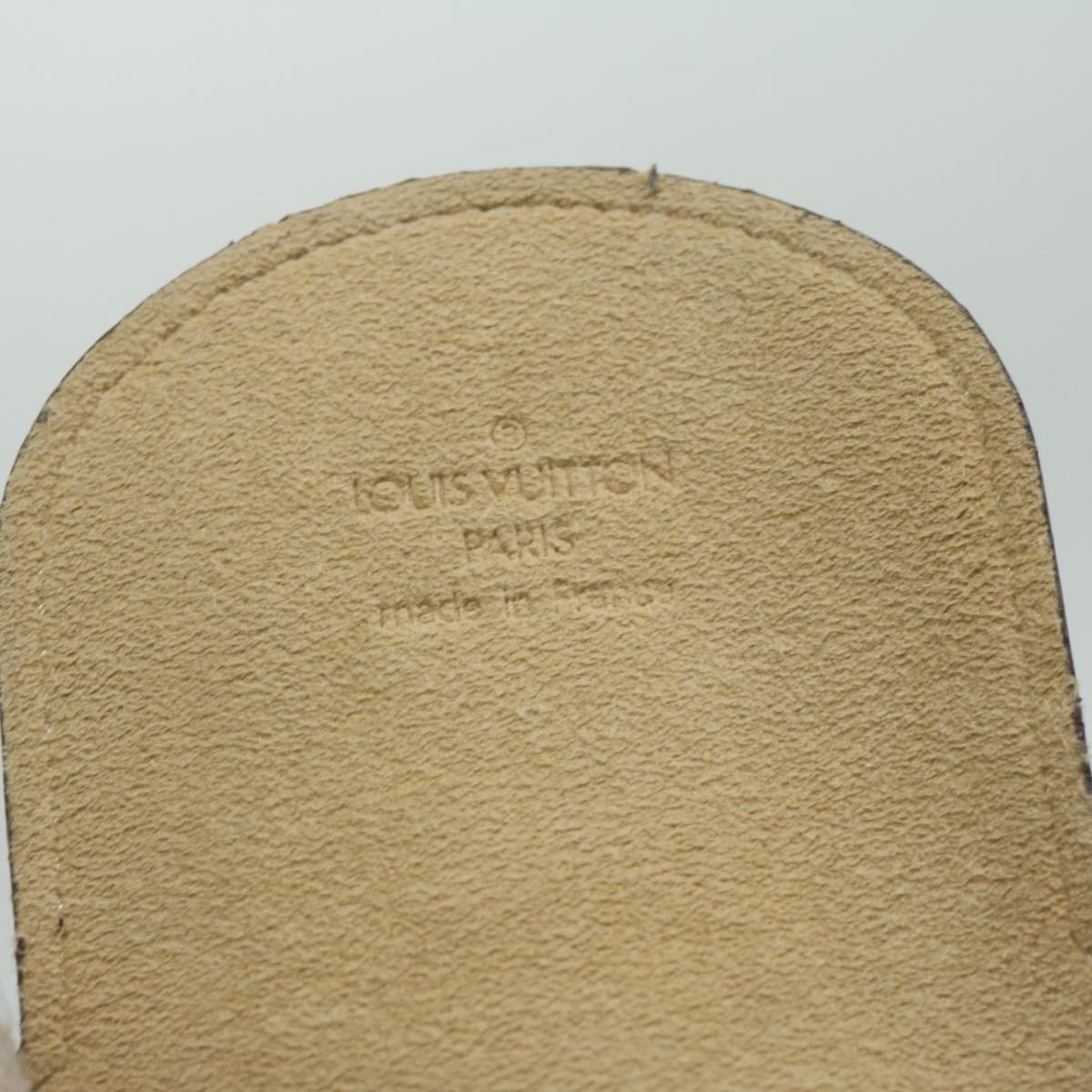 The Louis Vuitton glasses case shows signs of use on the exterior with slight misshaping and rubbing, particularly noticeable on the corners. Inside, there is slight rubbing observed along with a staining, accompanied by a storage scent indicating prolonged keeping.