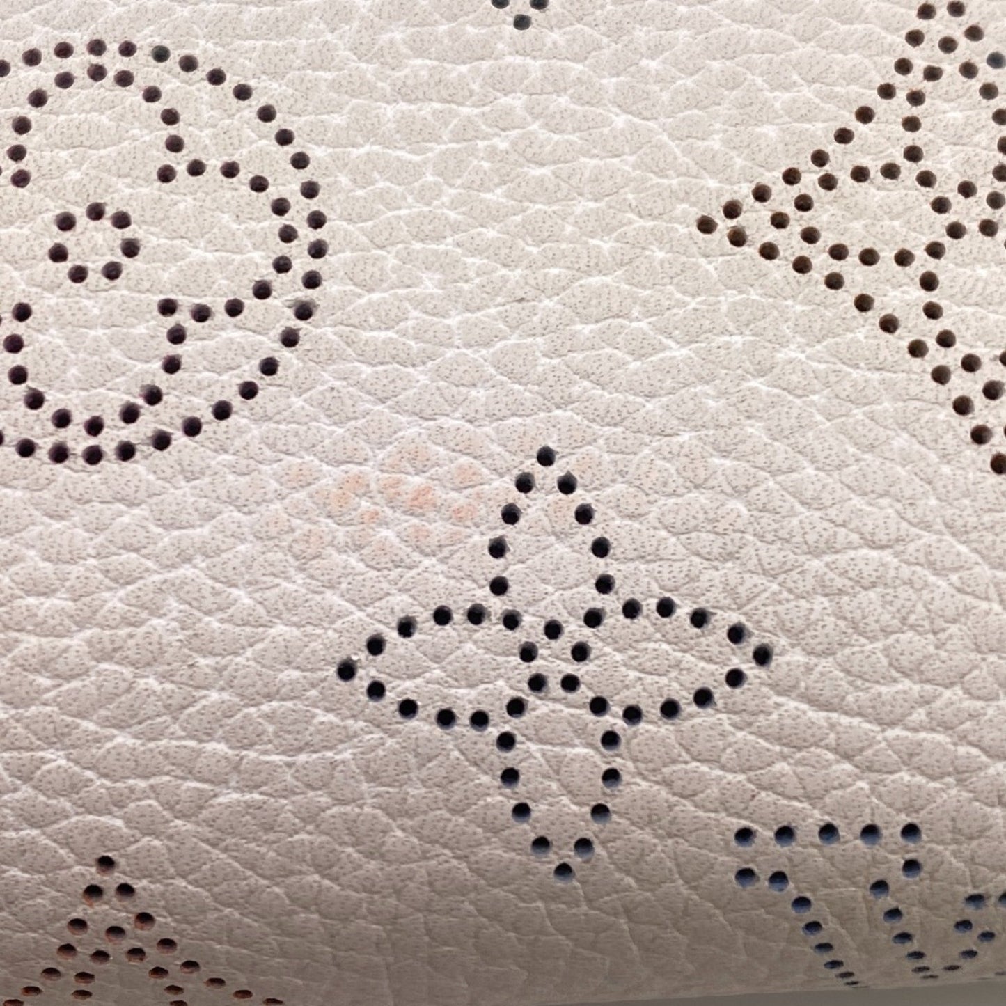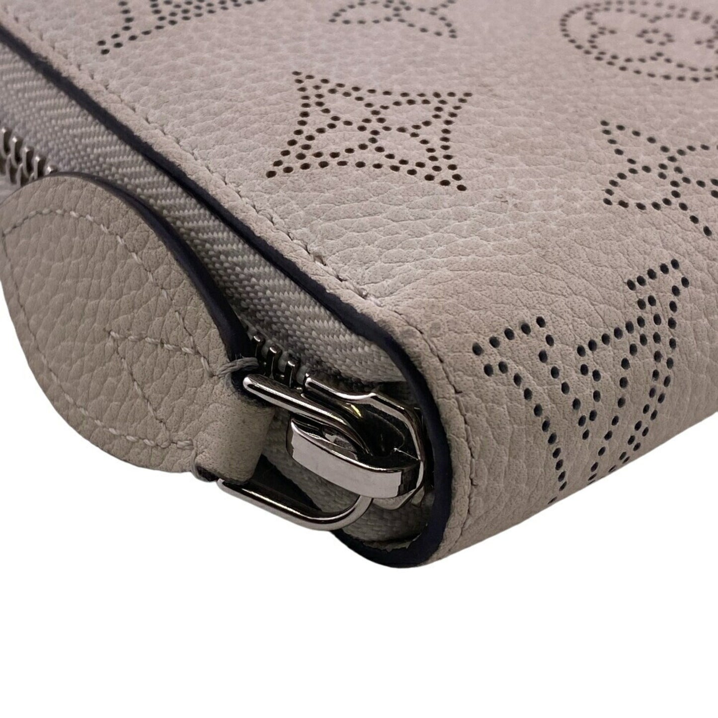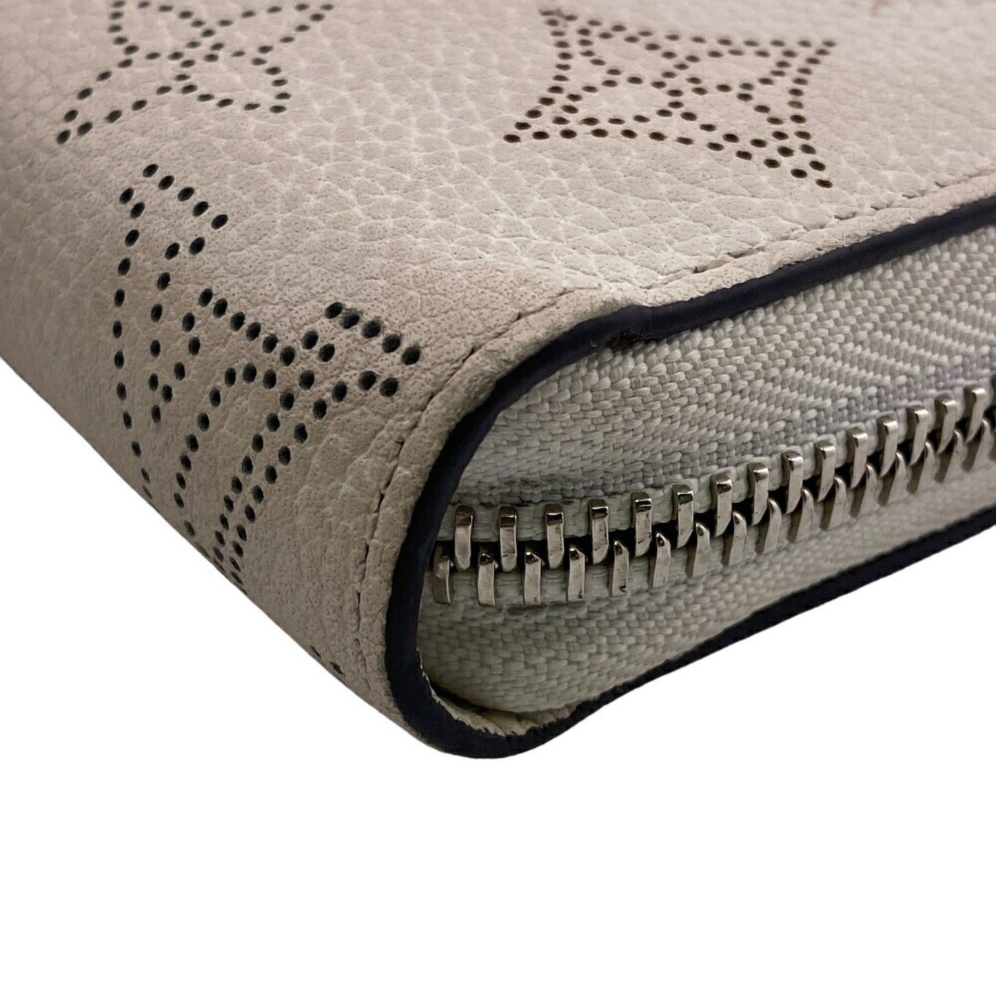 Louis Vuitton's Portefeuille Zippy Mahina is a luxurious long wallet designed for women, crafted from exquisite leather in a sophisticated beige hue. This bi-fold wallet combines elegance with practicality, featuring the iconic LV monogram embossed on the leather. The Zippy Mahina model is renowned for its spacious interior, which includes multiple compartments for cards, bills, and coins, all secured with a durable zipper closure.