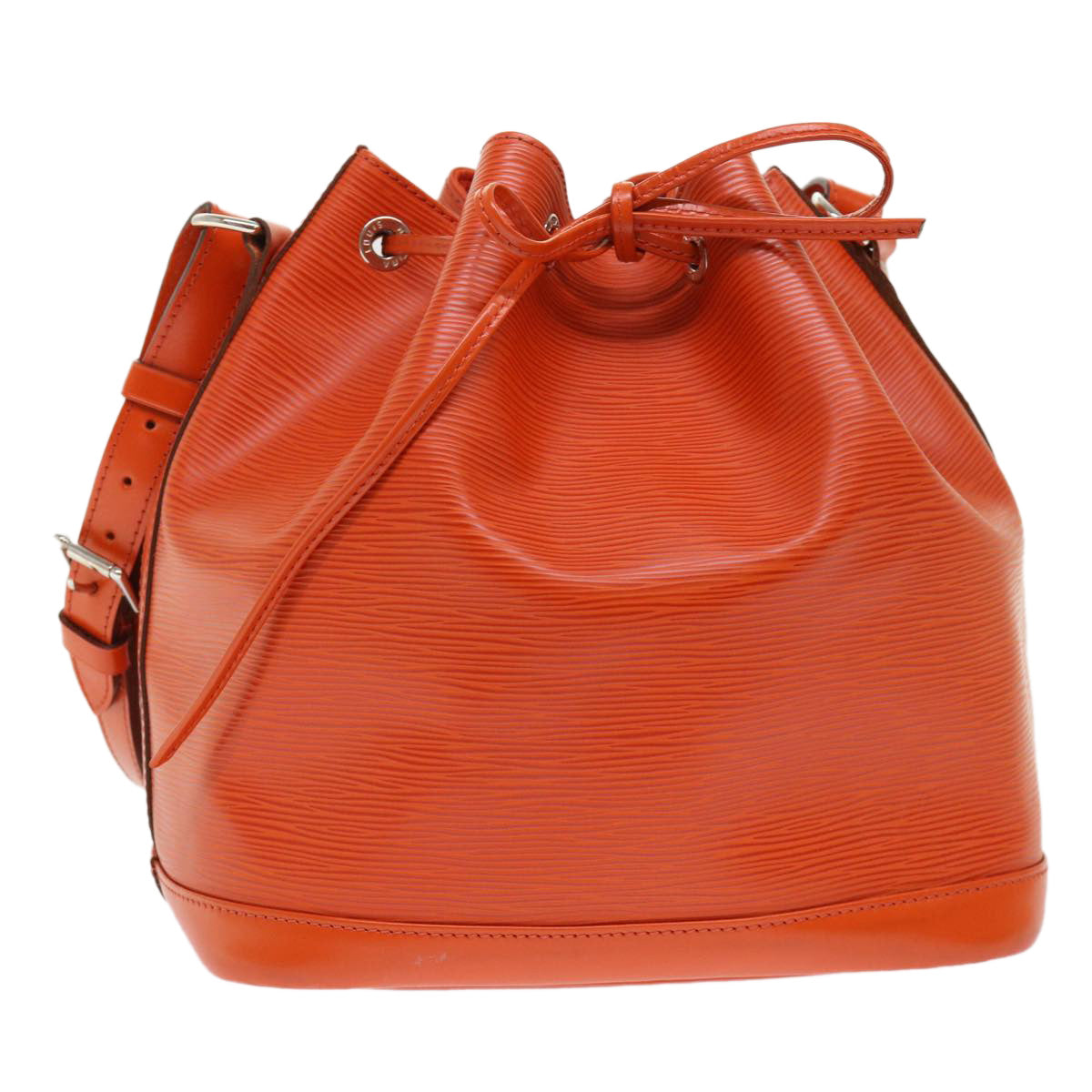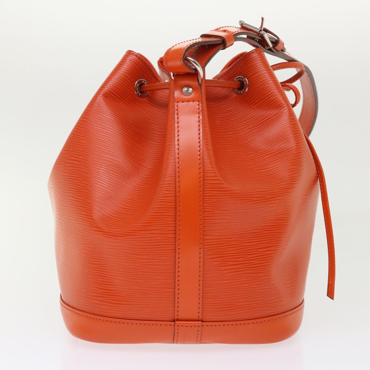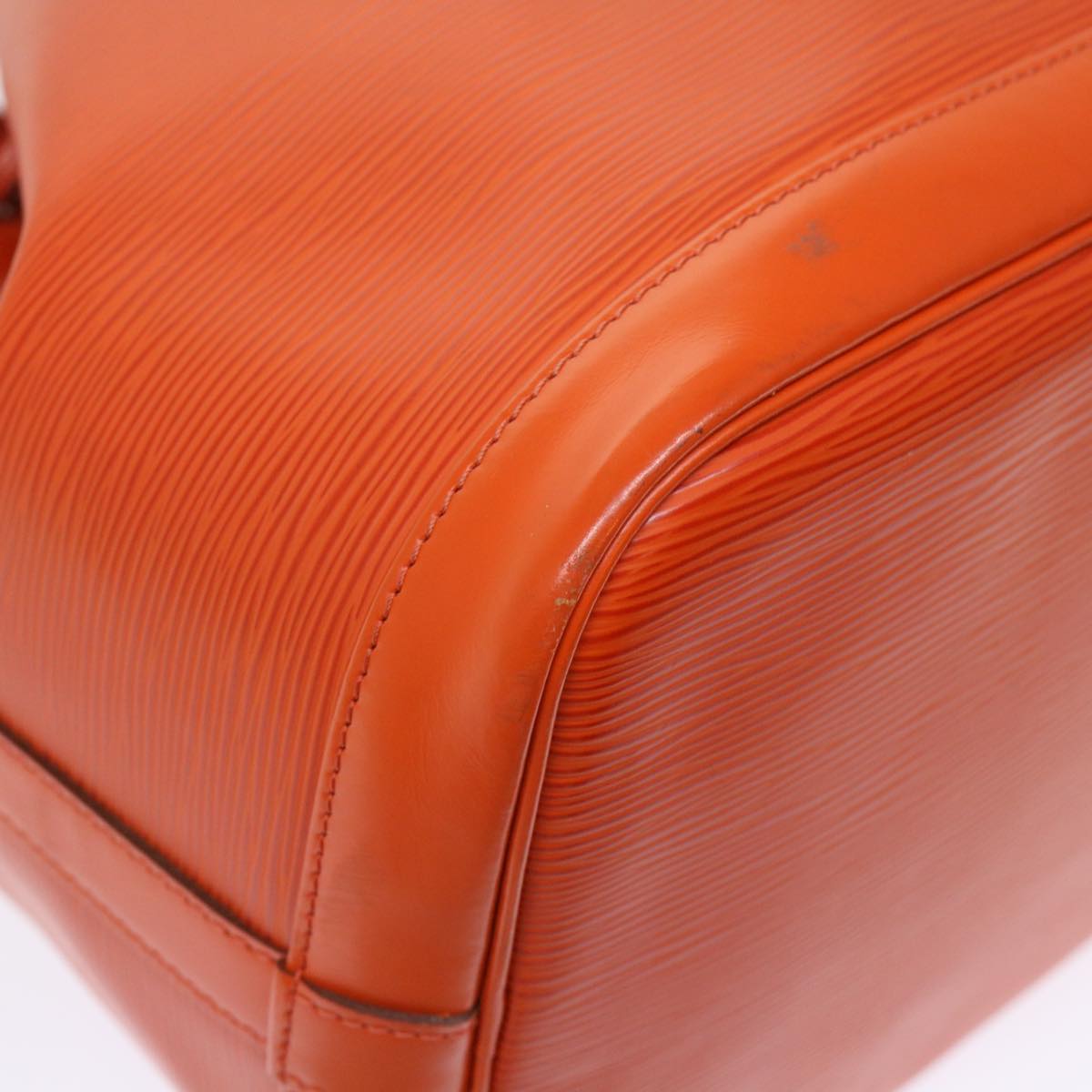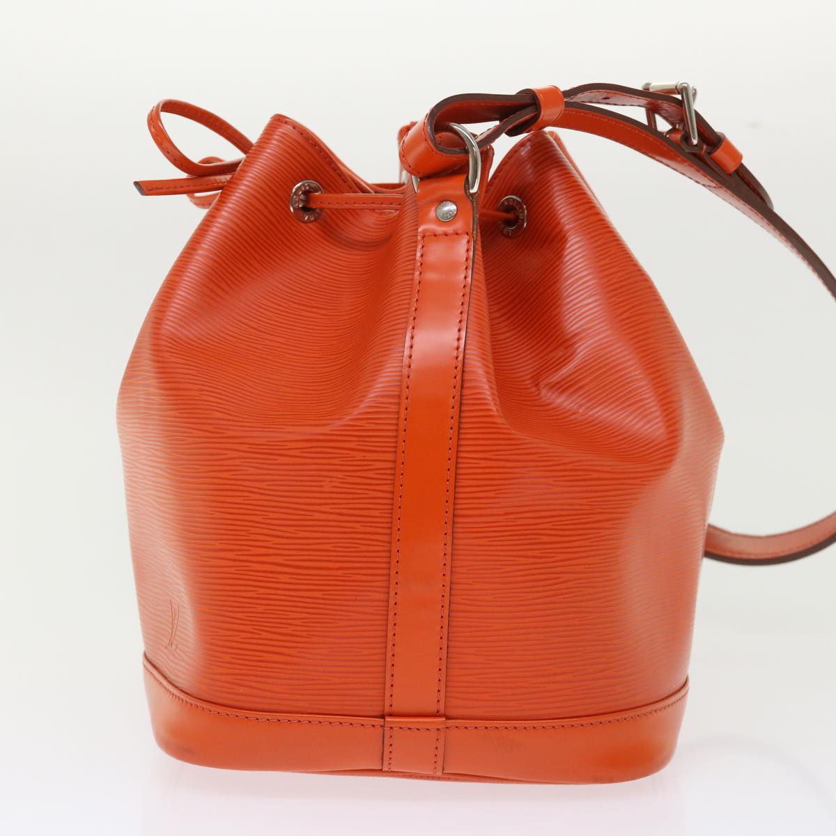 The renowned Louis Vuitton Petit Noé handbag is crafted from orange epi leather, adorned with gold-tone metal accents, and features an adjustable orange leather shoulder strap for both handheld and shoulder carrying. It is closed using a leather drawstring and boasts an interior lined with orange suede. This iconic handbag combines style and practicality, making it a versatile accessory for various occasions.