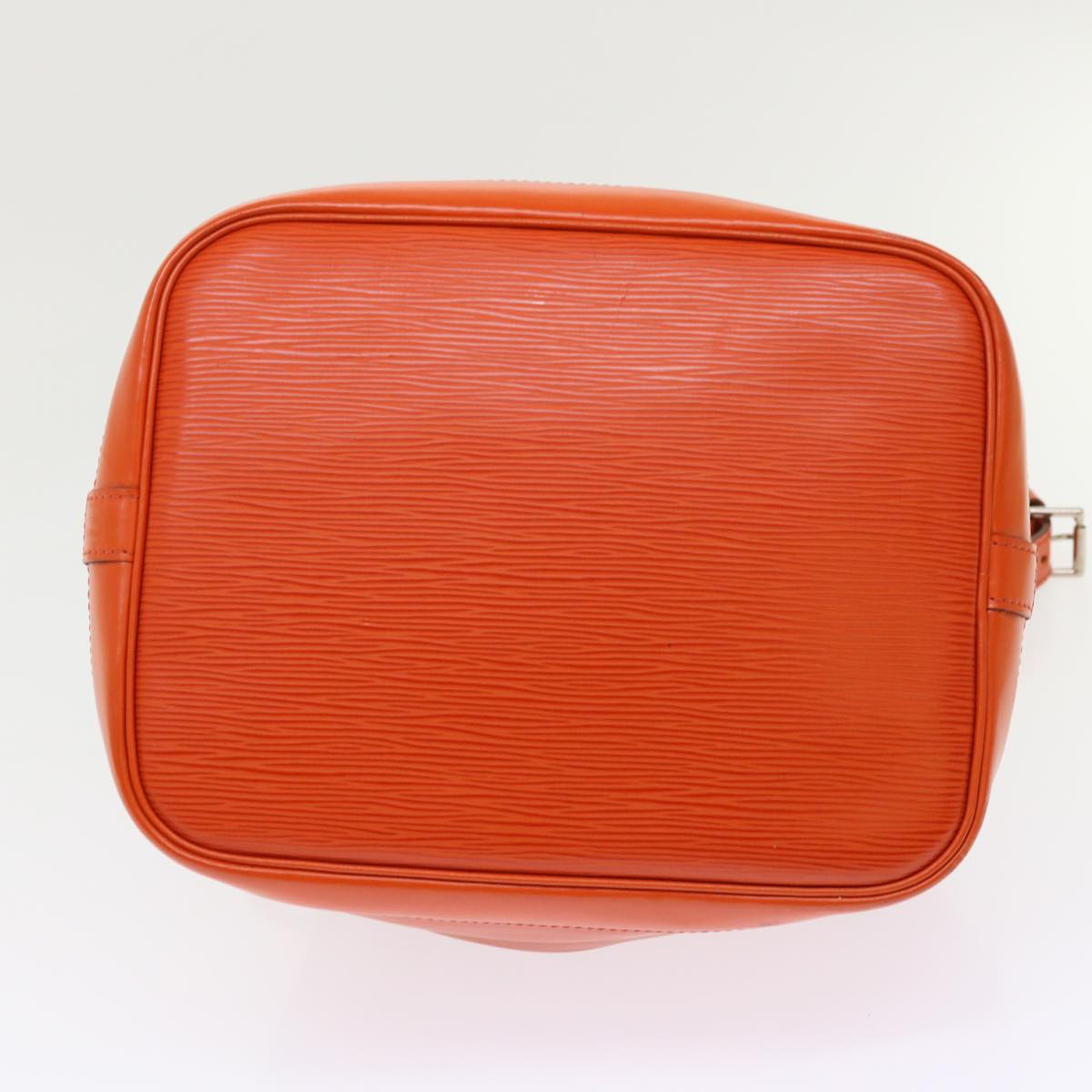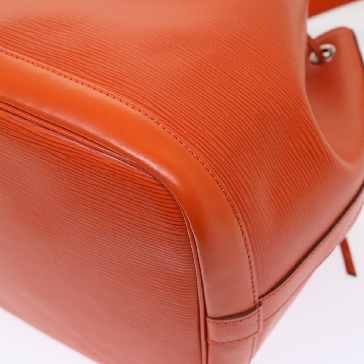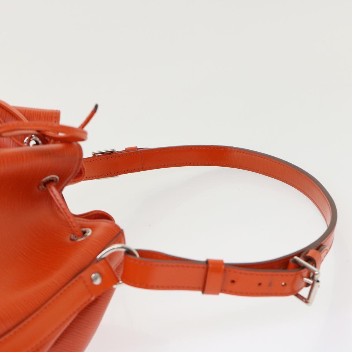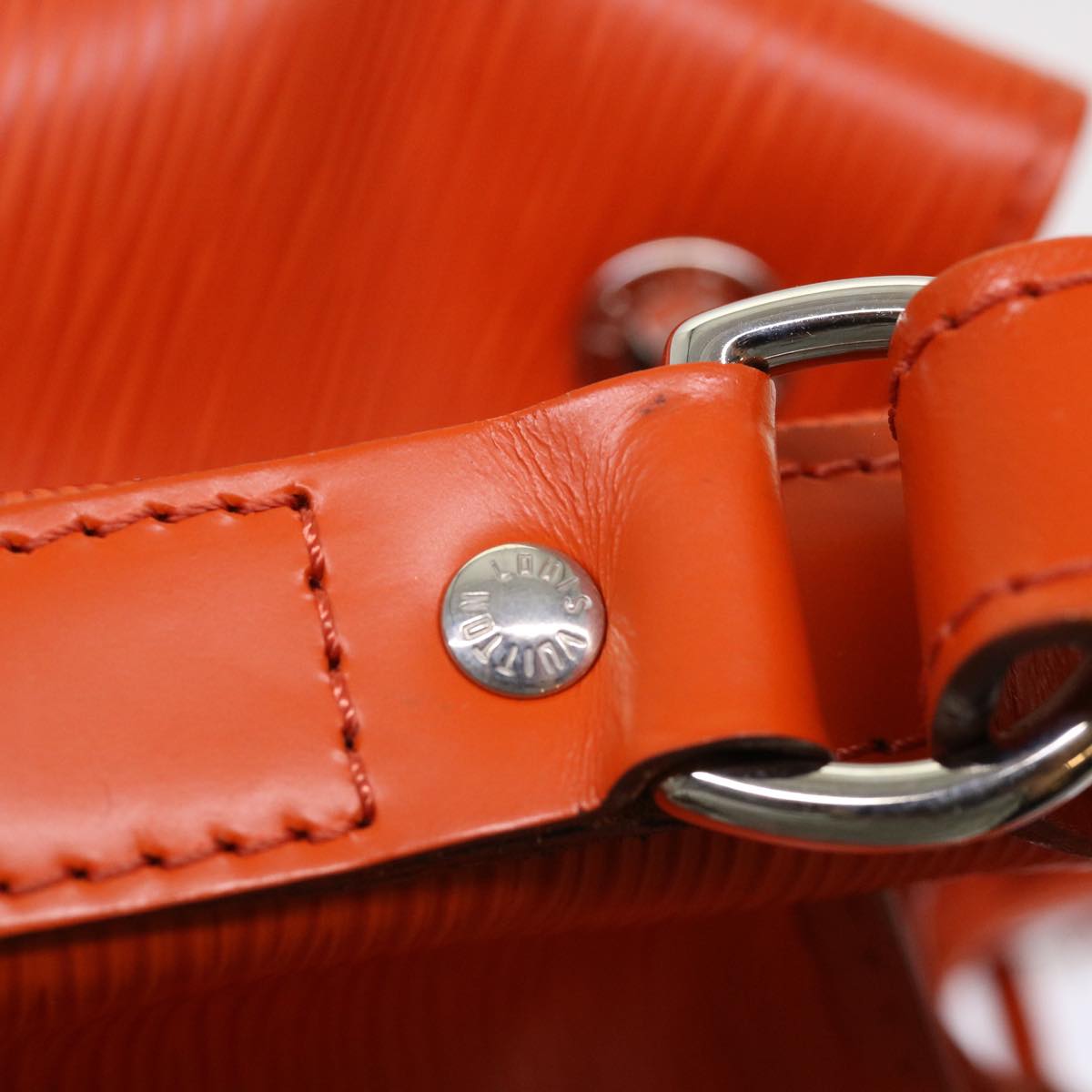 The renowned Louis Vuitton Petit Noé handbag is crafted from orange epi leather, adorned with gold-tone metal accents, and features an adjustable orange leather shoulder strap for both handheld and shoulder carrying. It is closed using a leather drawstring and boasts an interior lined with orange suede. This iconic handbag combines style and practicality, making it a versatile accessory for various occasions.