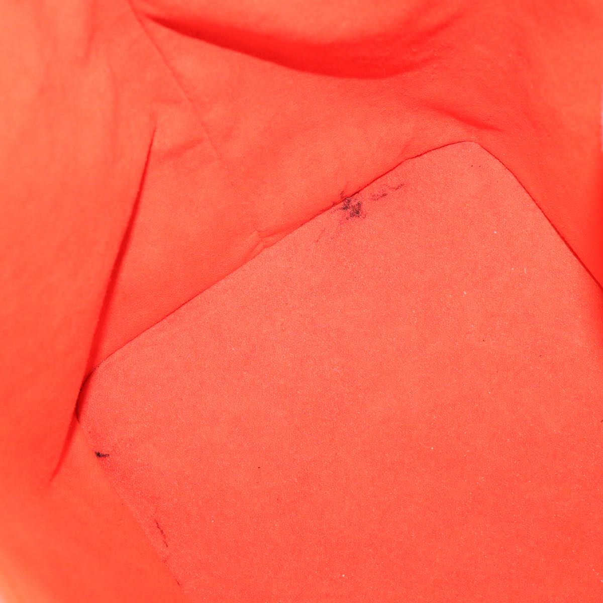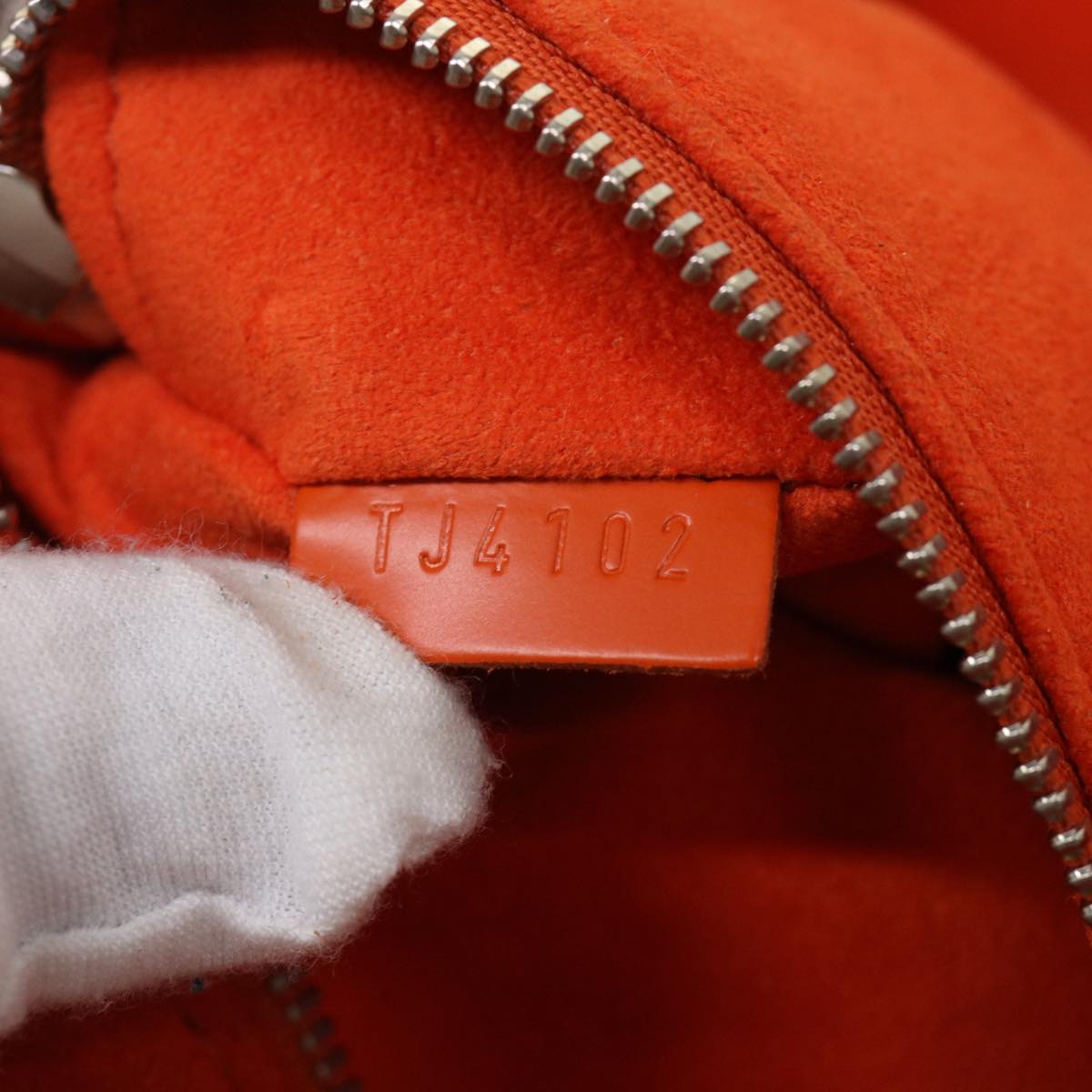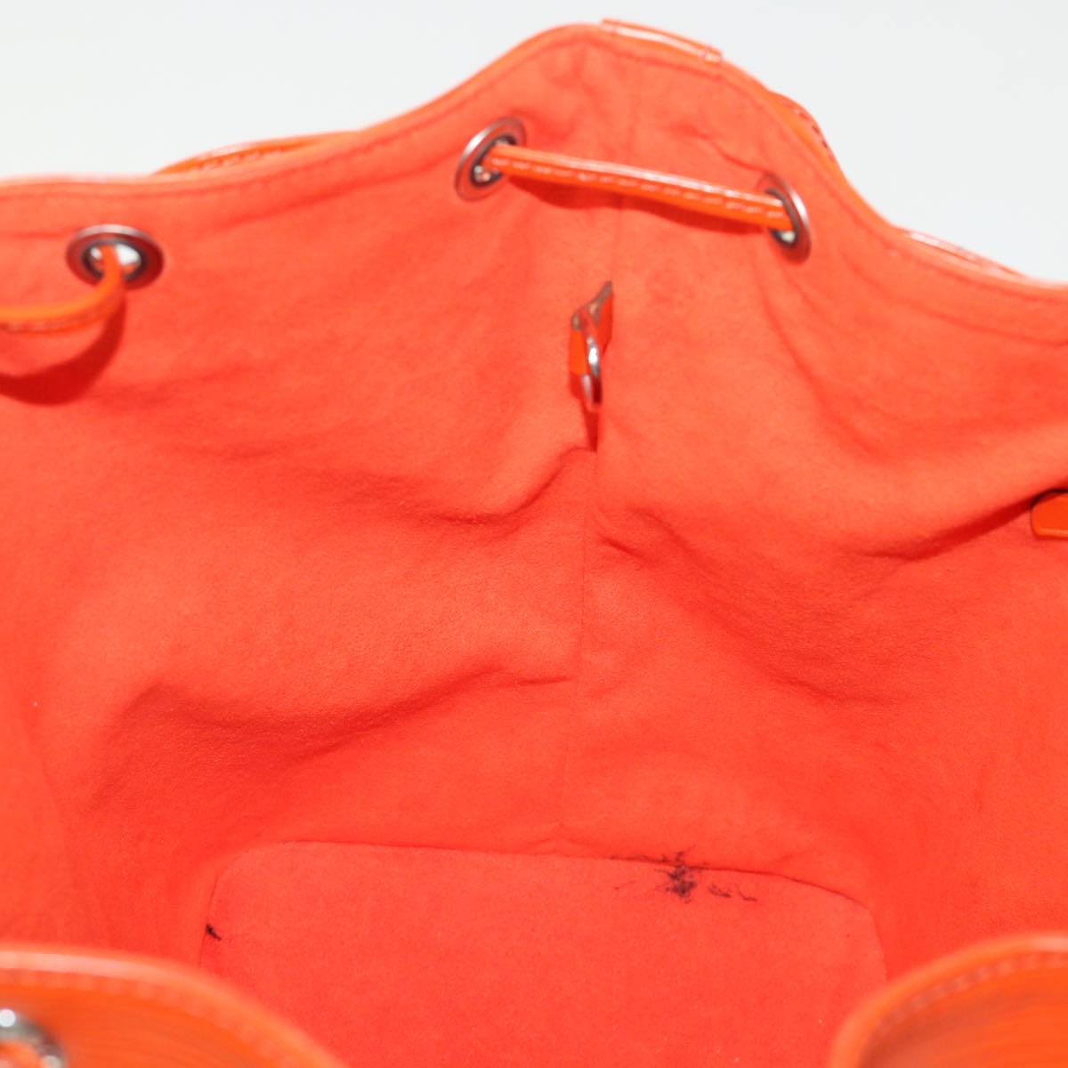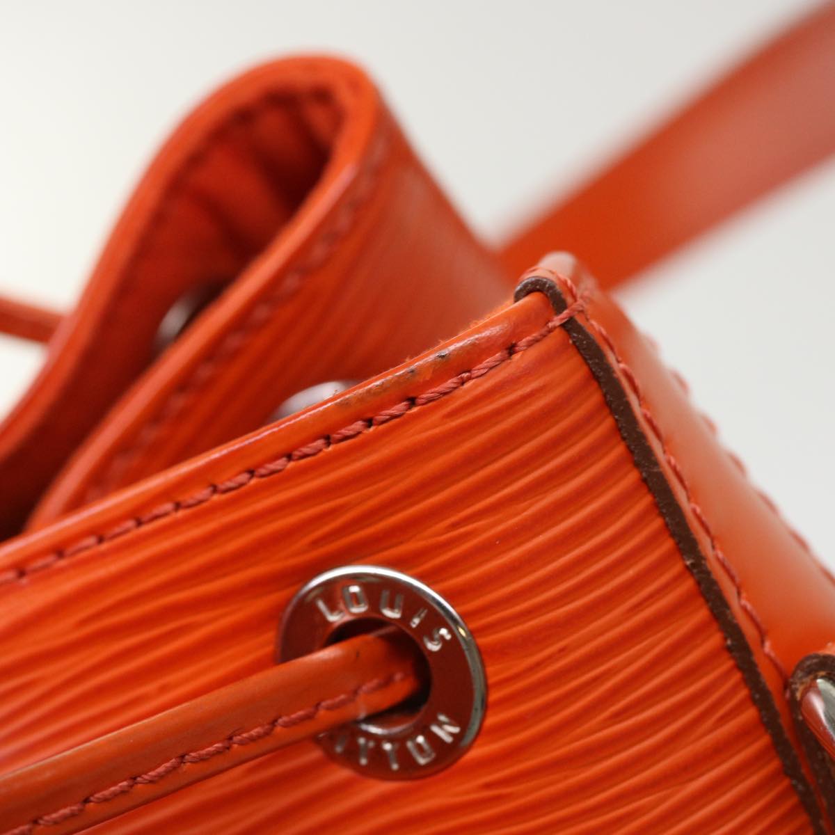 The renowned Louis Vuitton Petit Noé handbag is crafted from orange epi leather, adorned with gold-tone metal accents, and features an adjustable orange leather shoulder strap for both handheld and shoulder carrying. It is closed using a leather drawstring and boasts an interior lined with orange suede. This iconic handbag combines style and practicality, making it a versatile accessory for various occasions.