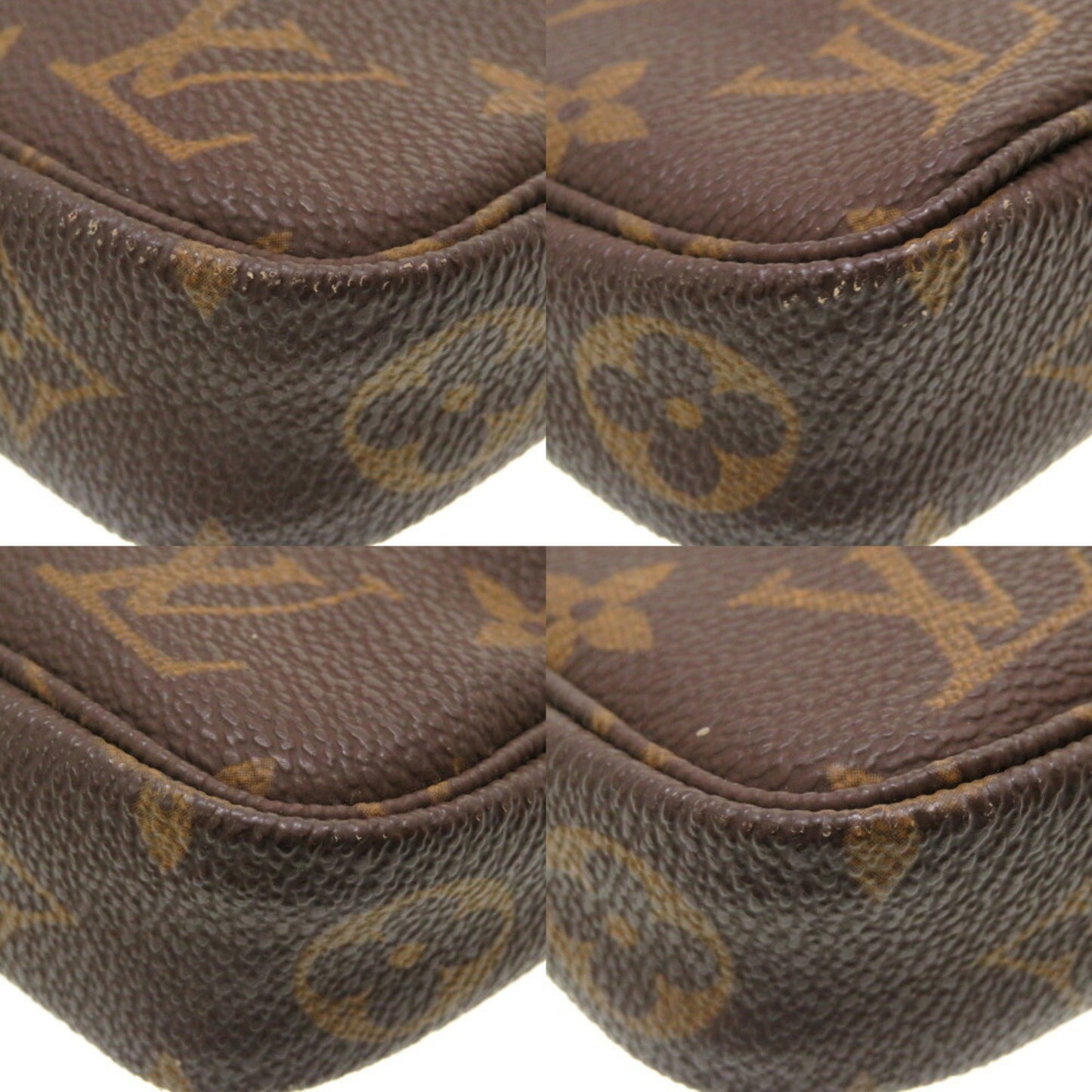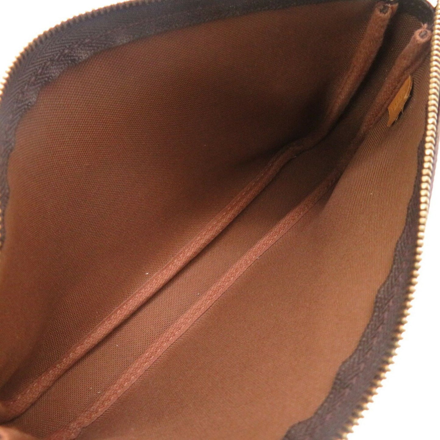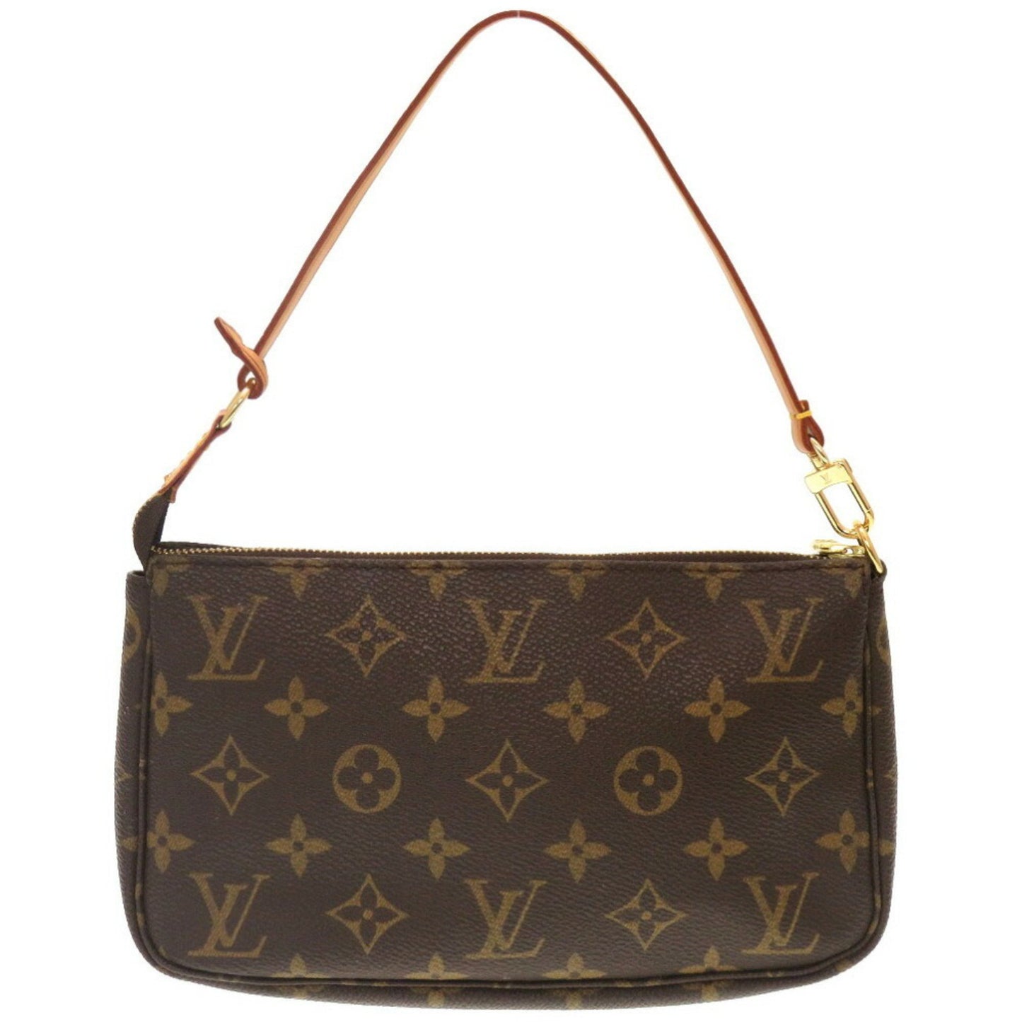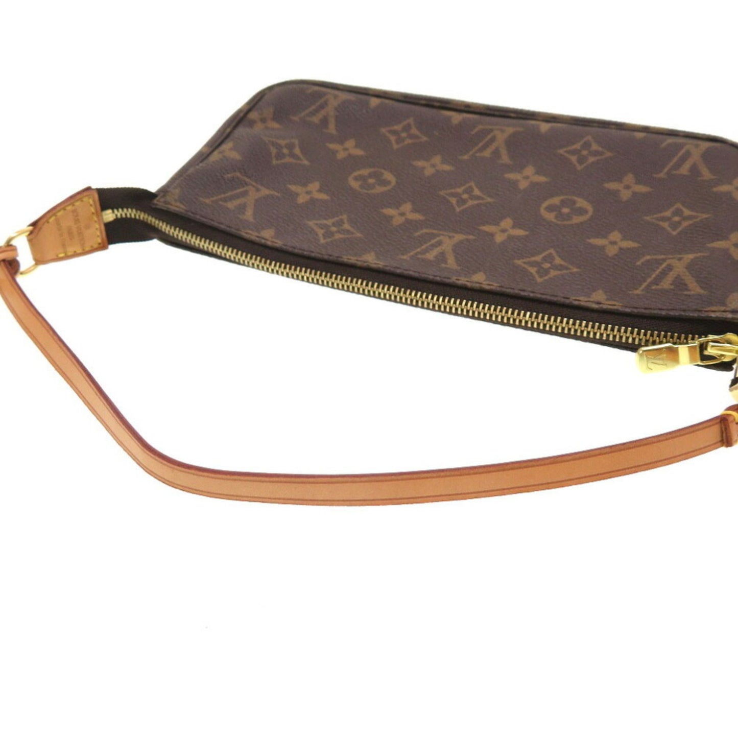 Louis Vuitton's Pochette Accessoire, an elegant clutch from the iconic brand, features the classic Monogram design in a rich brown hue, accented by gold hardware. Designed for women.