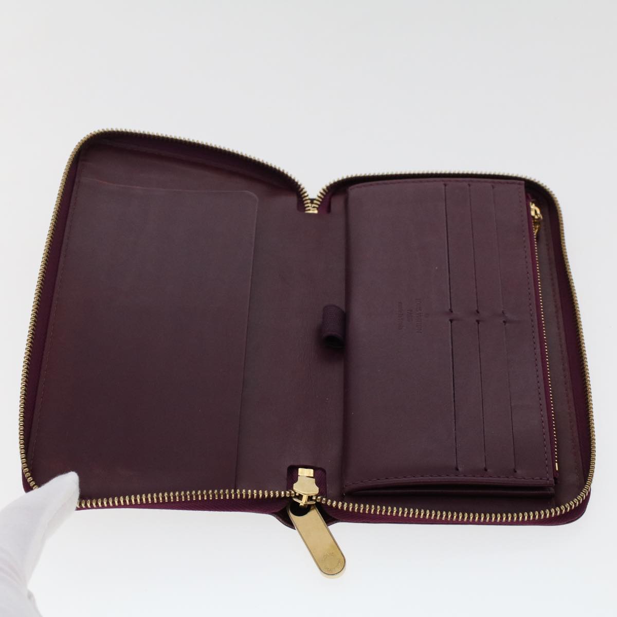Here's a zipped wallet from Louis Vuitton. Renowned for its emblematic motif, this wallet is made from grained cowhide with a metallic silver finish, and features three spacious compartments, as well as additional pockets and card slots, providing ample storage capacity.