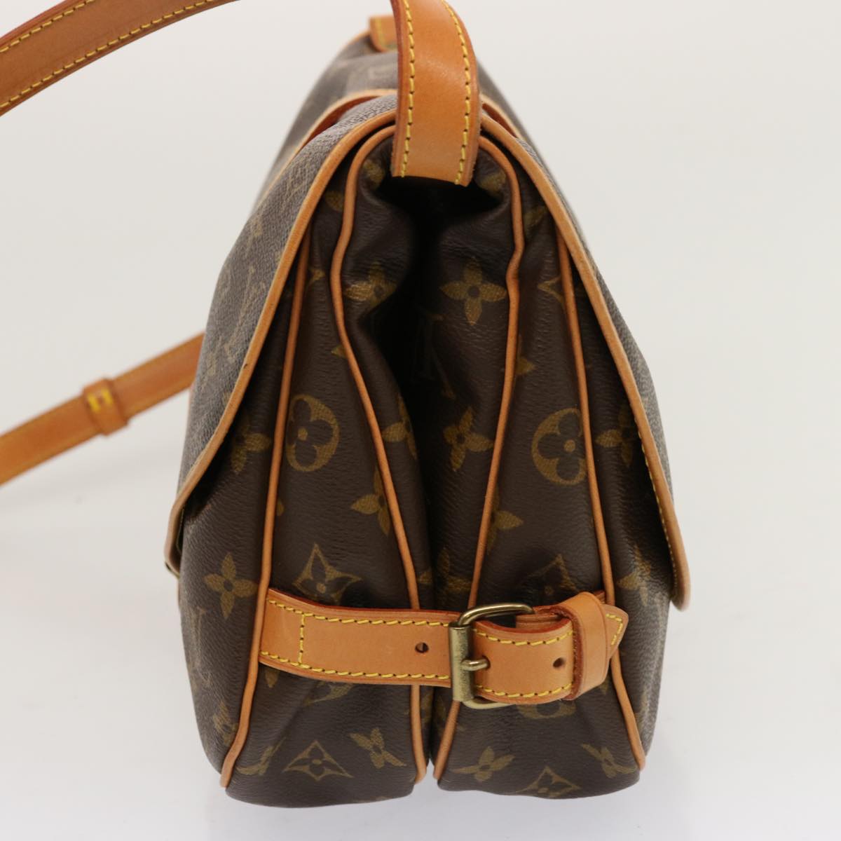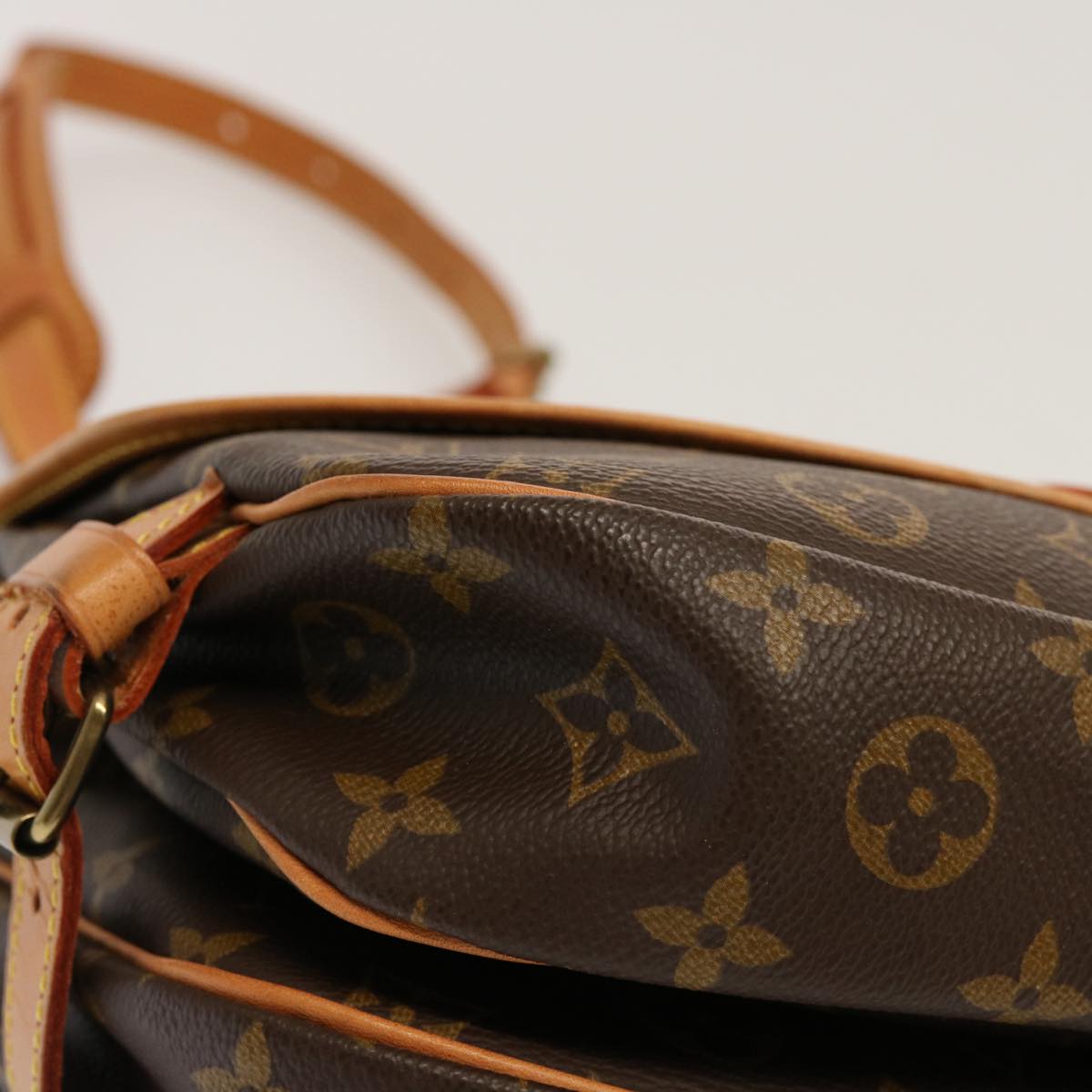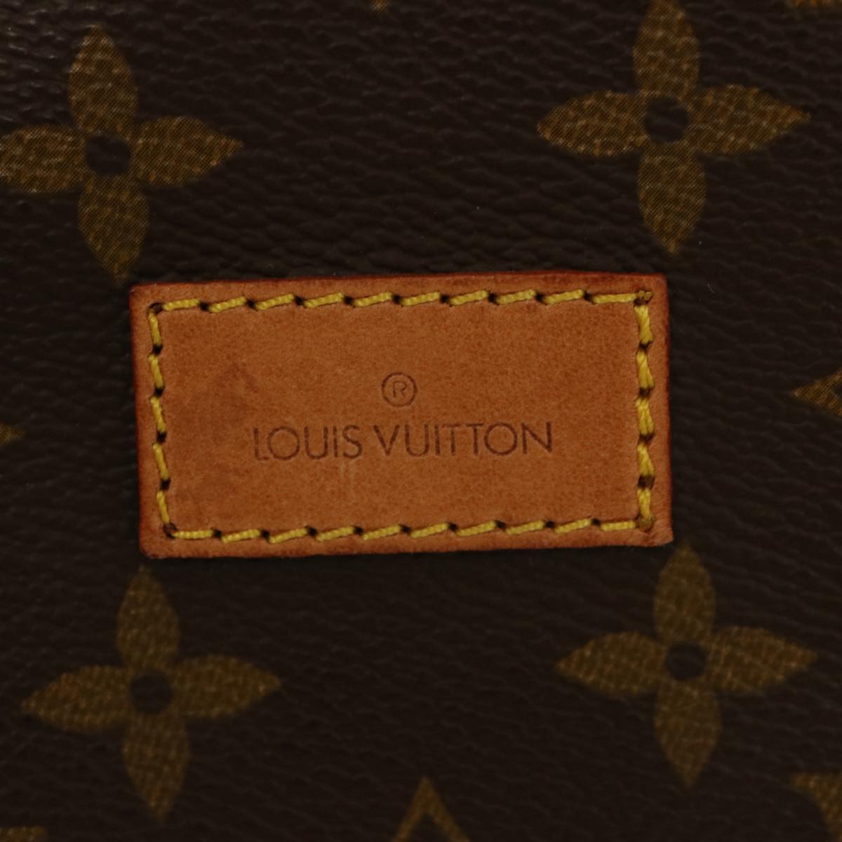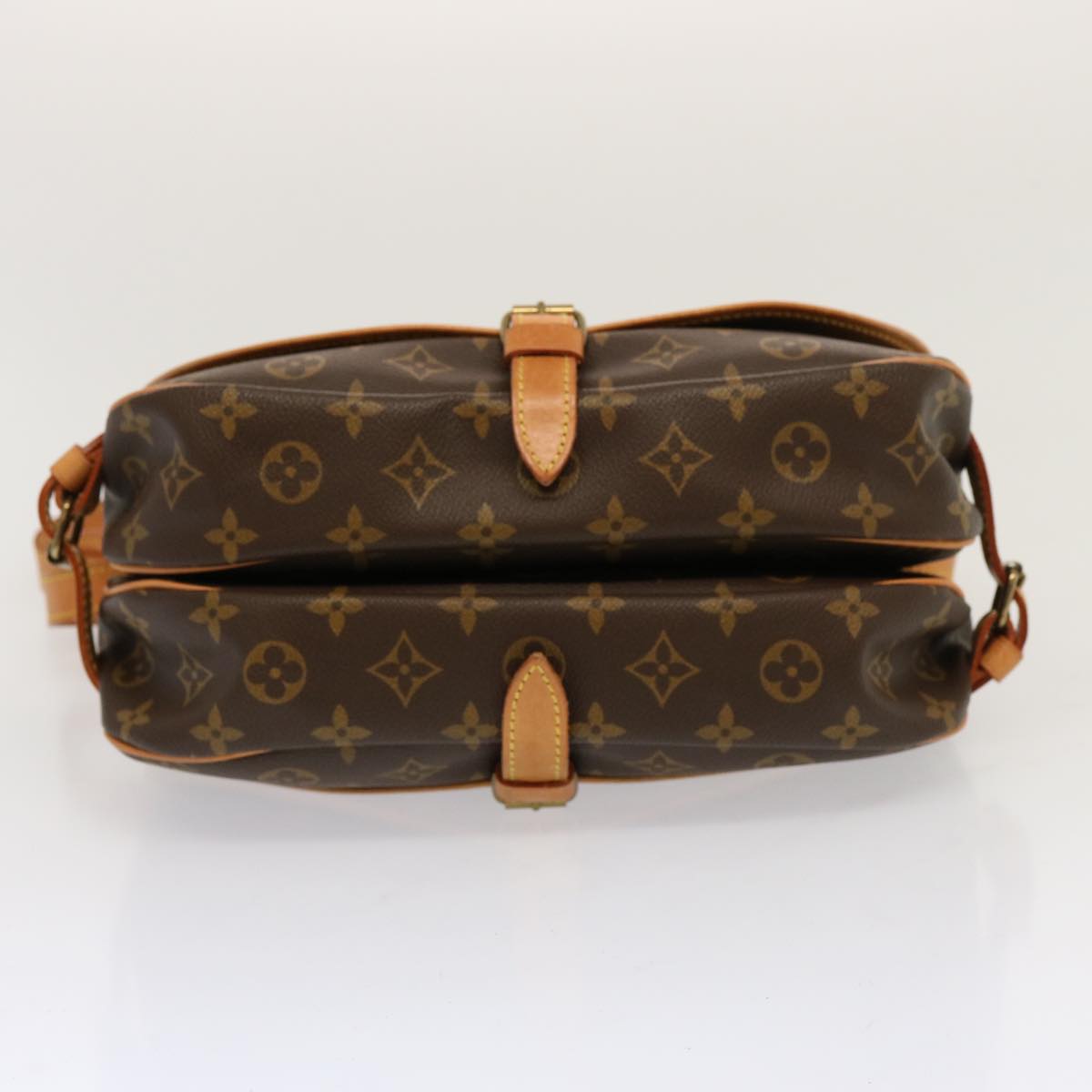 The Louis Vuitton Saumur bag was introduced in 1970. This brown bag is made from Louis Vuitton's iconic coated canvas and adorned with natural cowhide leather trim. The bag features a flap closure, two front pockets, a large back pocket, and an adjustable leather shoulder strap for comfortable carrying. The interior and its pockets provide you with ample space to organize your belongings.