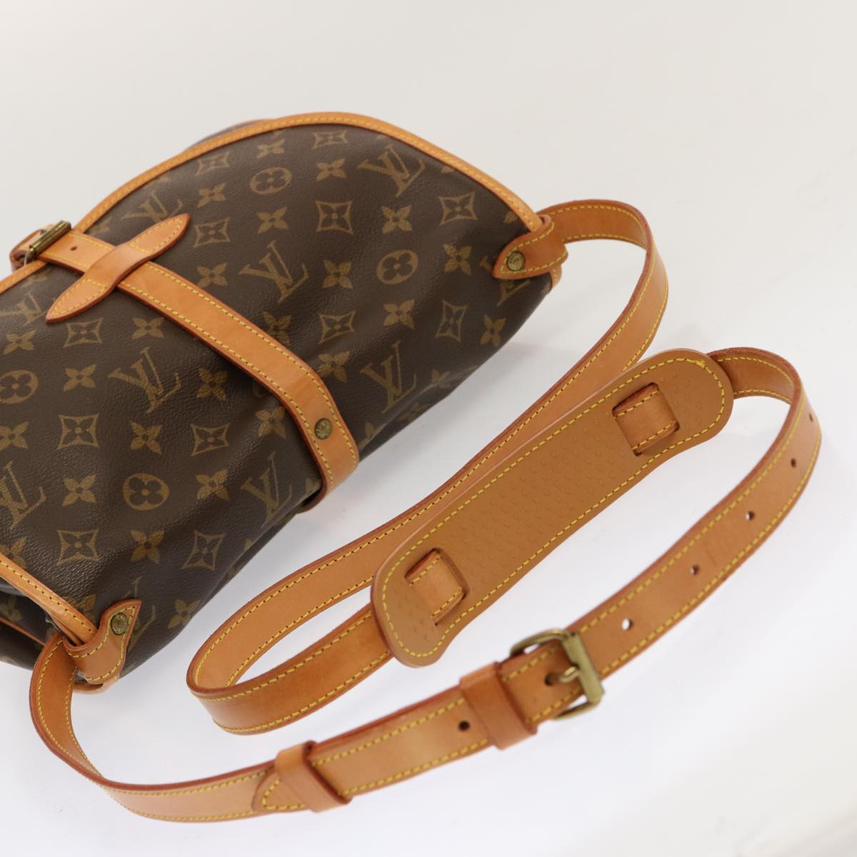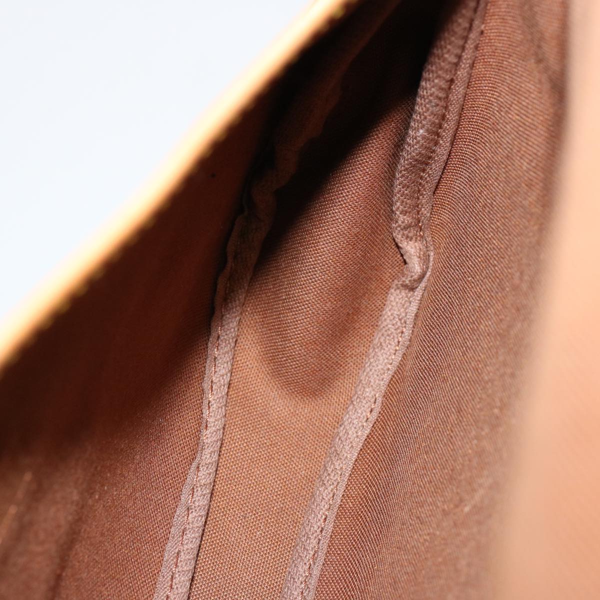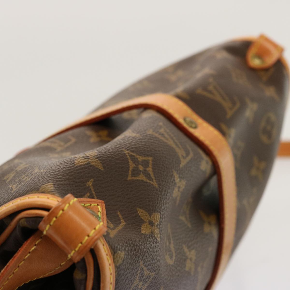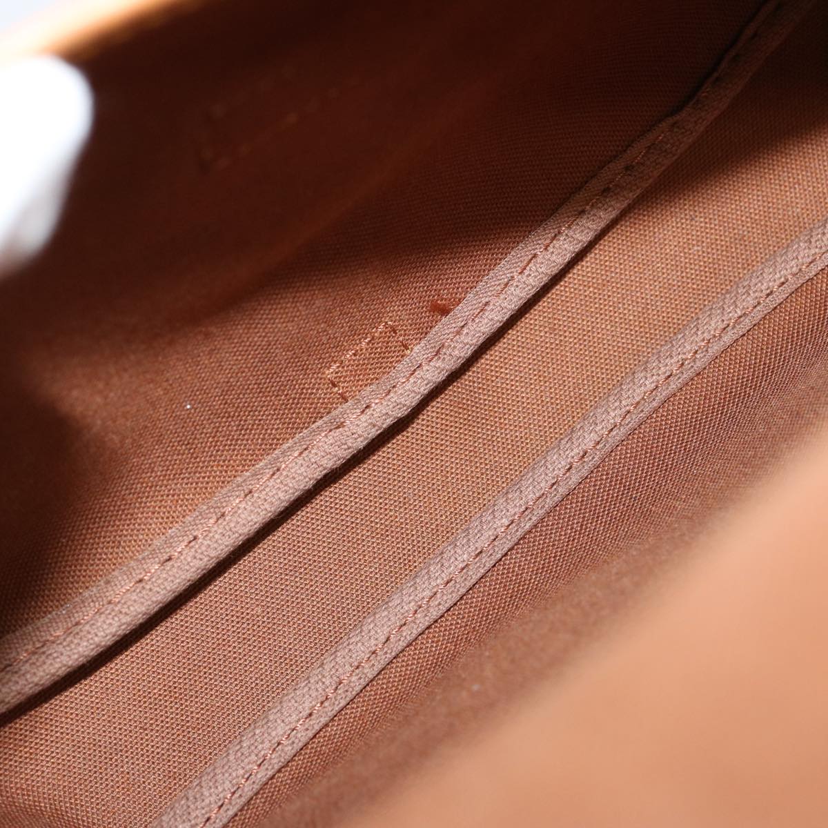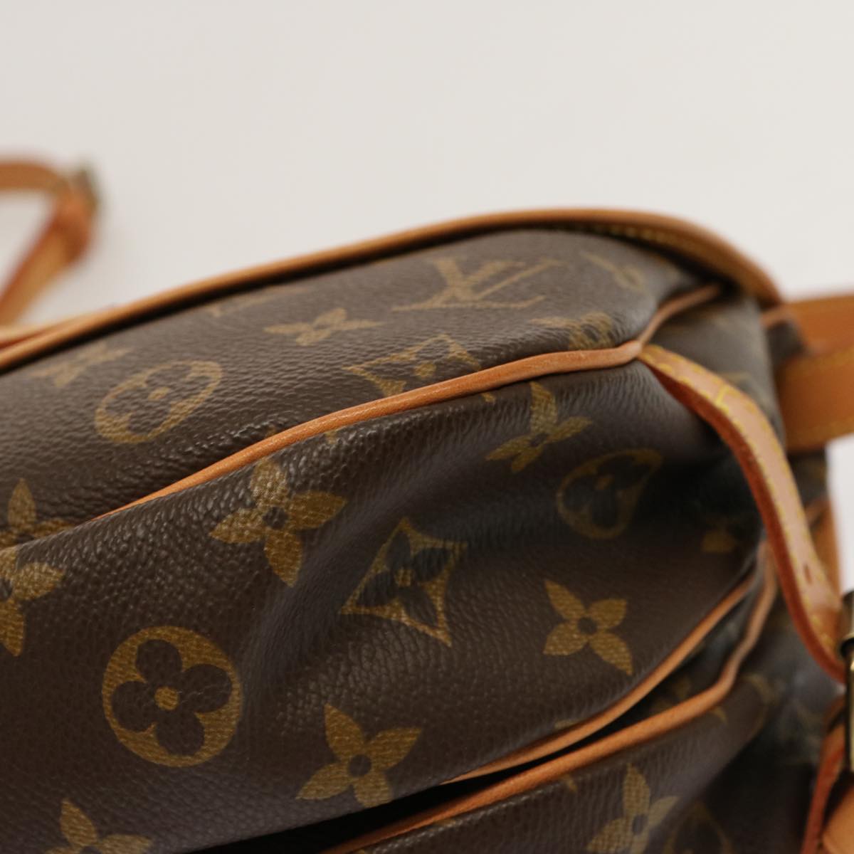 The Louis Vuitton Saumur bag was introduced in 1970. This brown bag is made from Louis Vuitton's iconic coated canvas and adorned with natural cowhide leather trim. The bag features a flap closure, two front pockets, a large back pocket, and an adjustable leather shoulder strap for comfortable carrying. The interior and its pockets provide you with ample space to organize your belongings.