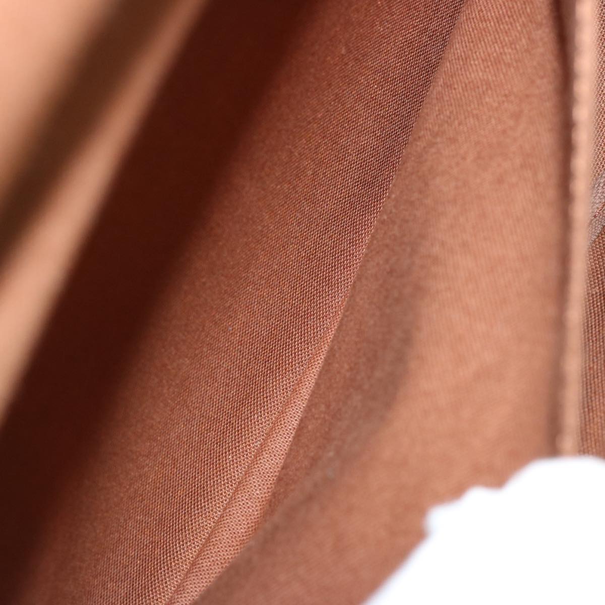 The exterior surface of the item has a slight loss of shape and exhibits rubbing. The shoulder strap shows signs of sunburn, staining, and slight rubbing. Metal fittings have scratches. Inside, there is slight rubbing, also noticed in the pockets and corners. Additionally, there is a storage odor.